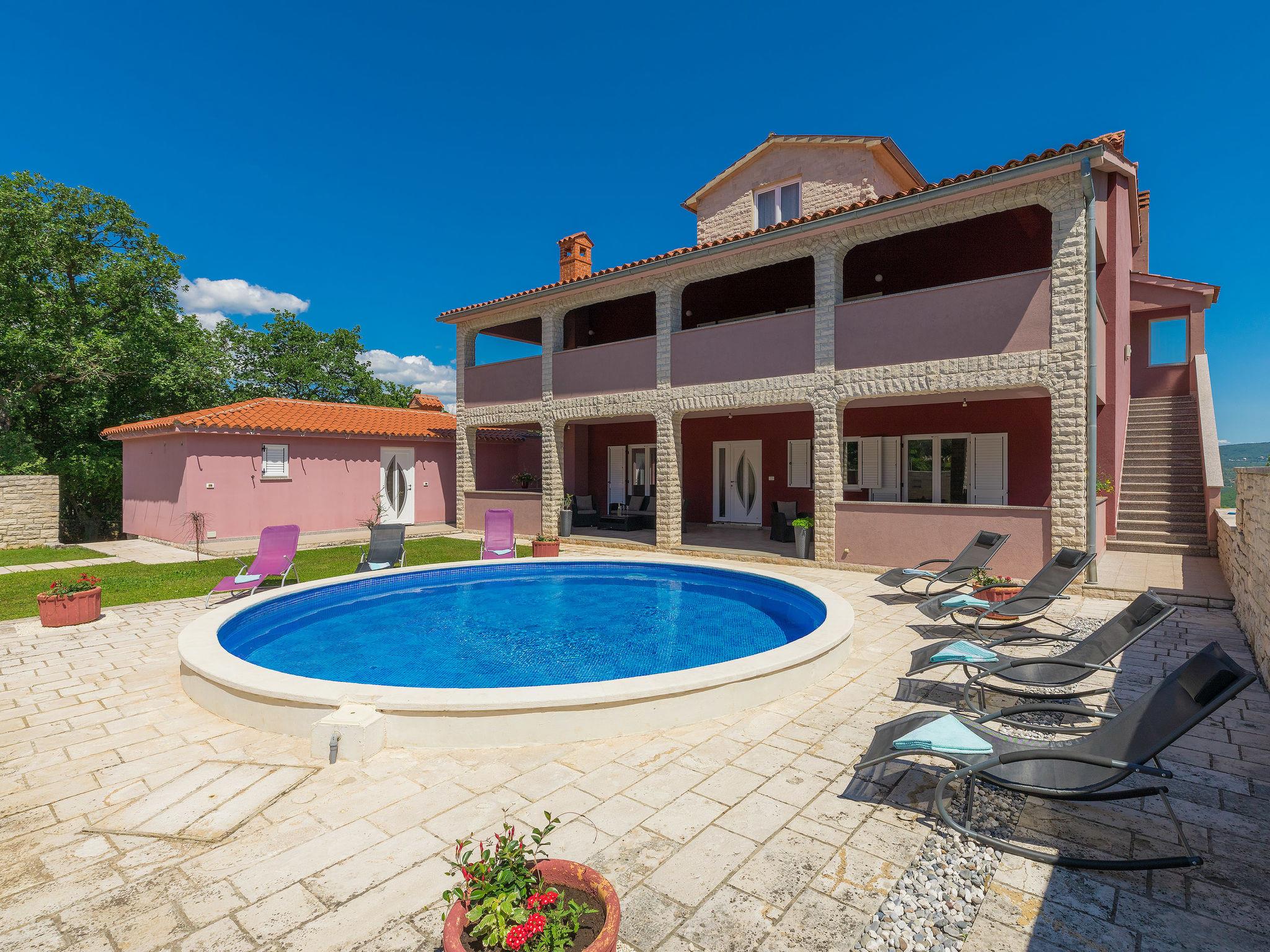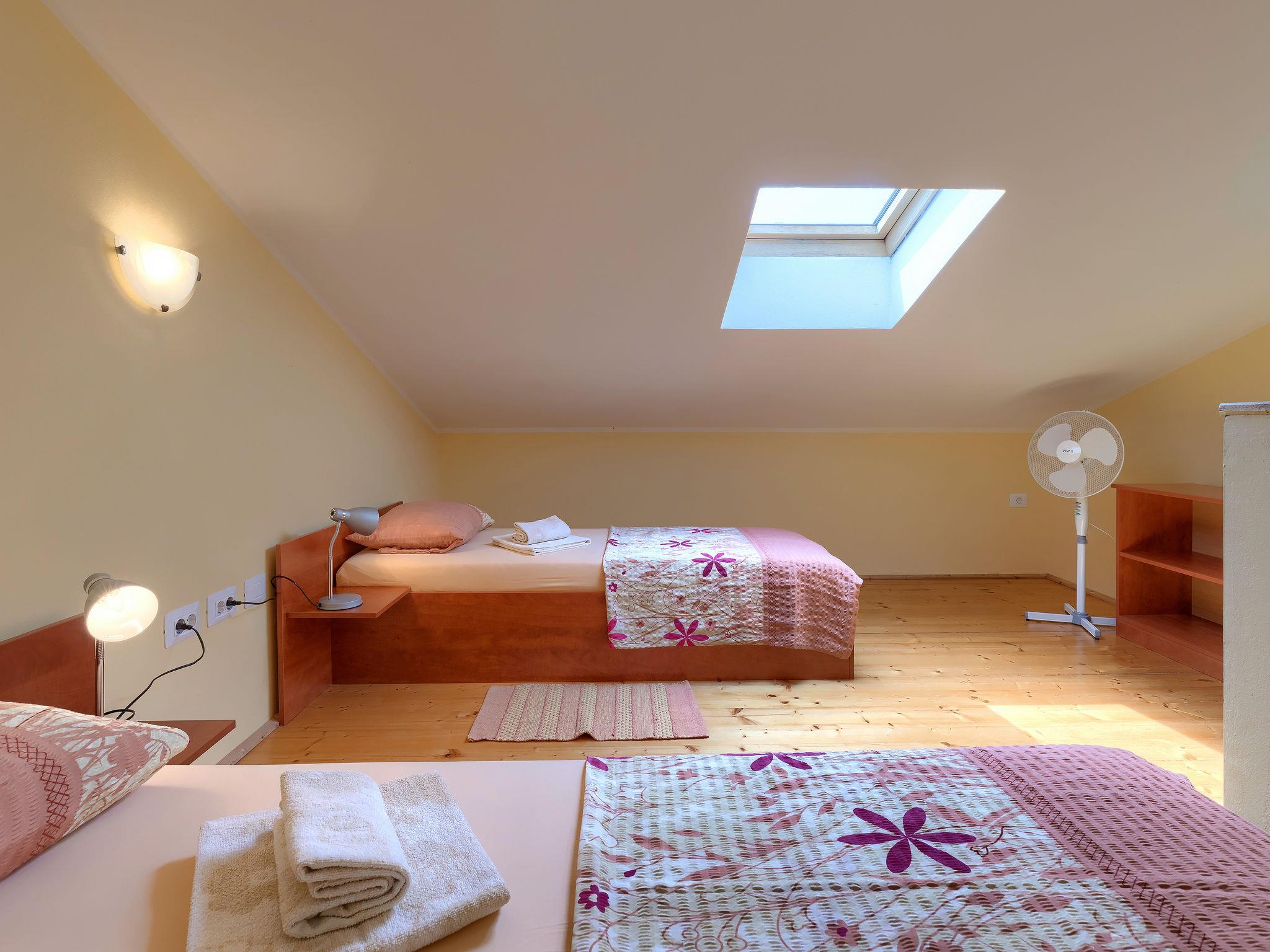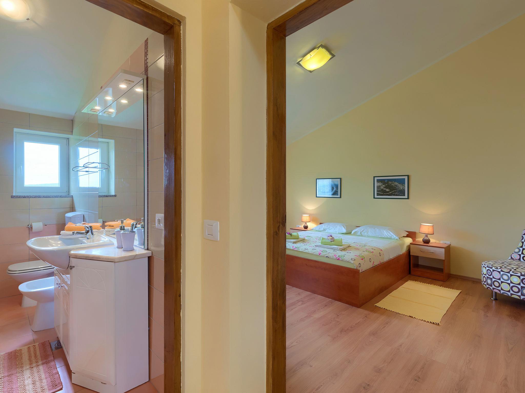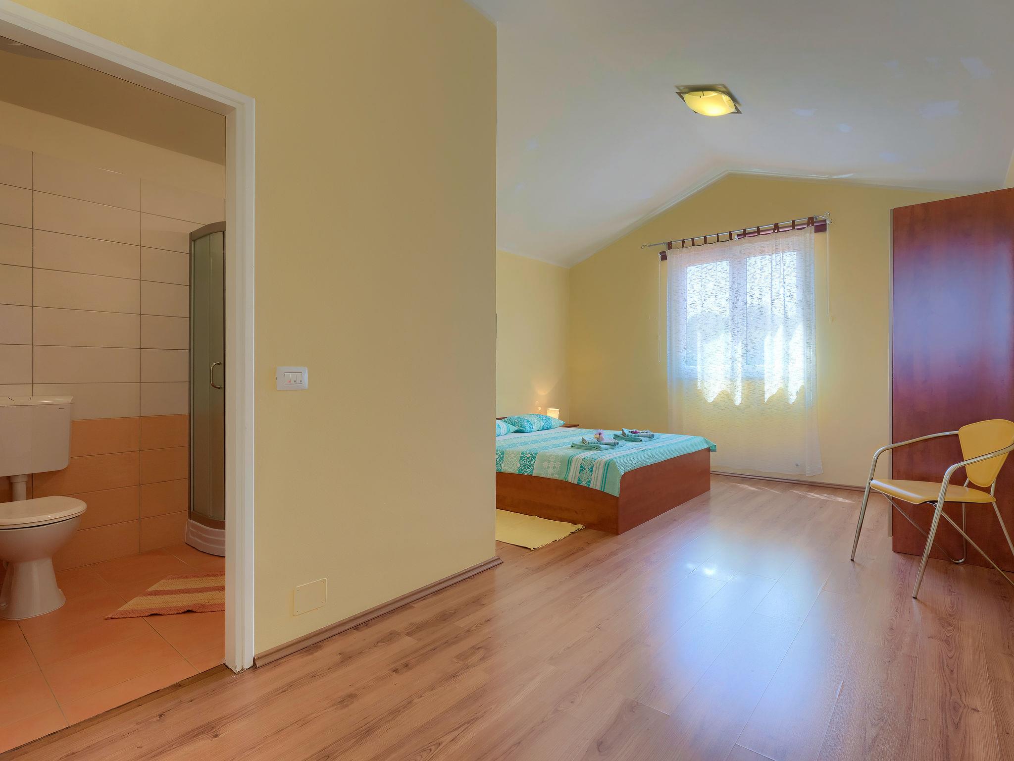 Beautiful semi-detached house "Ljiljana". On the outskirts, 500 m from the centre, in a sunny position, 2 km from the sea, 2 km from the beach. Private: property 1'500 m2 (fenced) with wildlife garden and trees, natural garden, swimming pool round (6 m diameter, depth 120 cm, seasonal availability: 01.May. - 30.Sep.). Terrace, garden furniture, barbecue. In the house: internet access. Parking at the house. Shop, restaurant 500 m, bus stop 7.2 km, shingle beach 2 km, rocky beach 2 km. Part of the house is closed and unoccupied.
