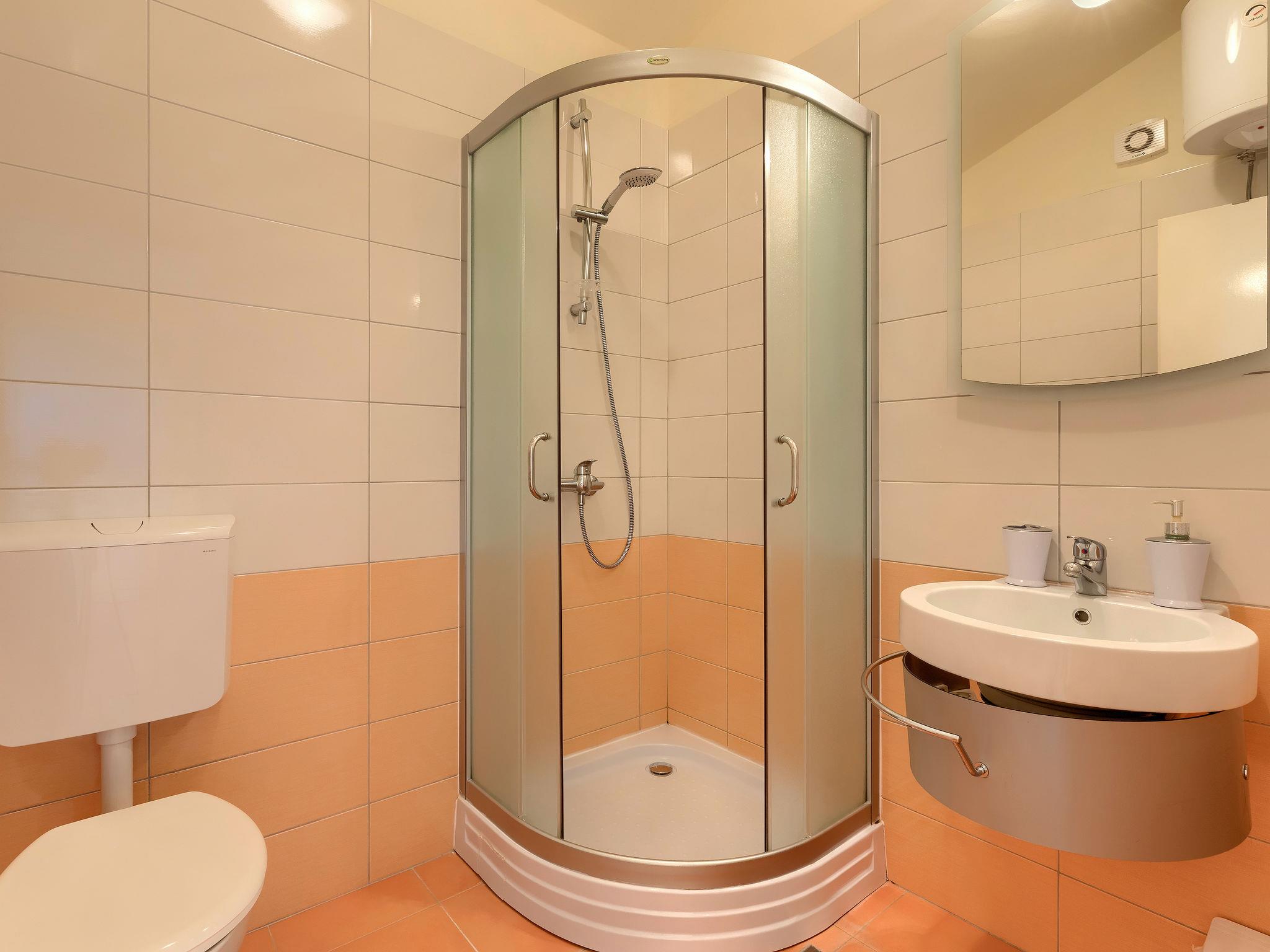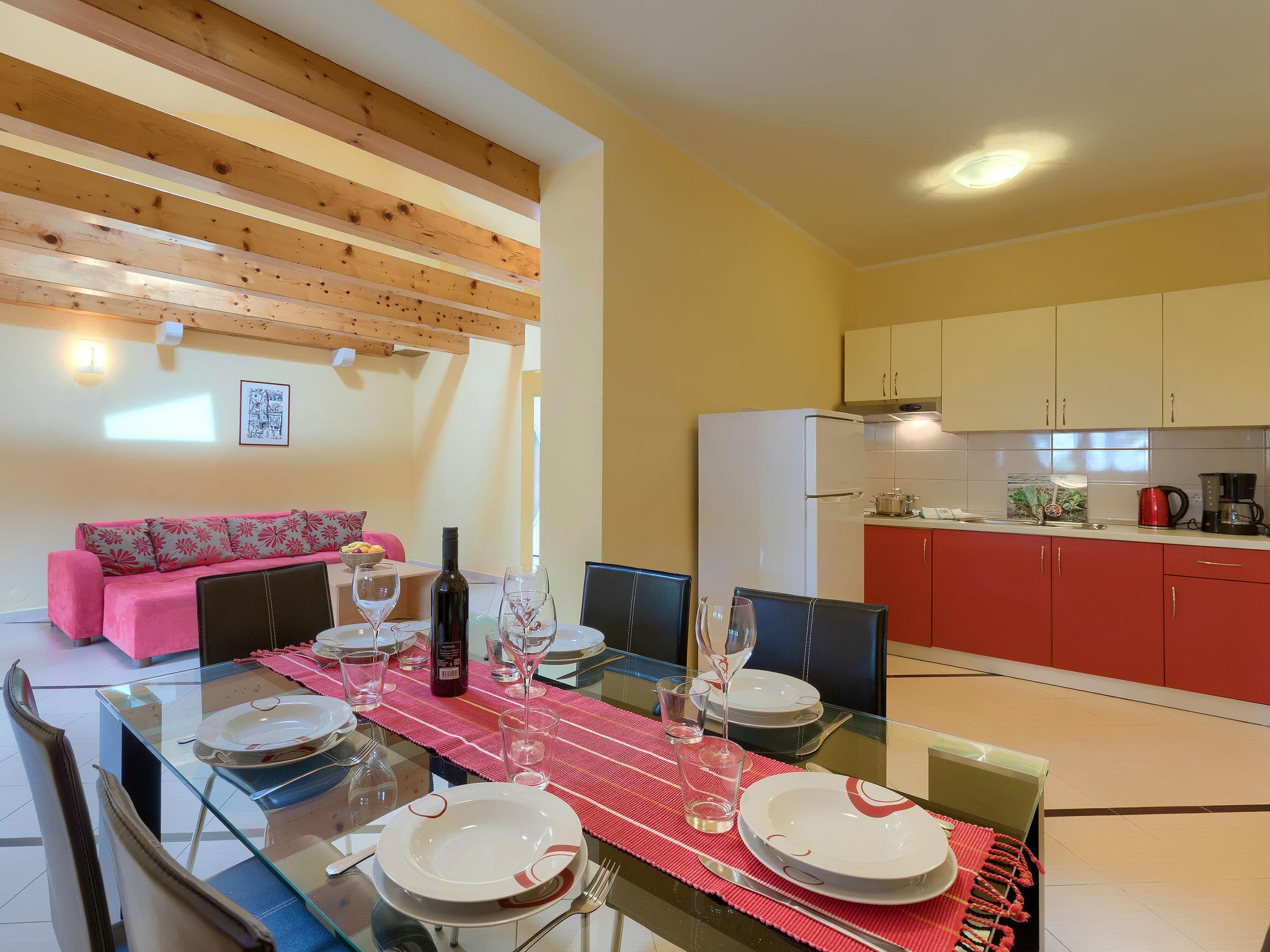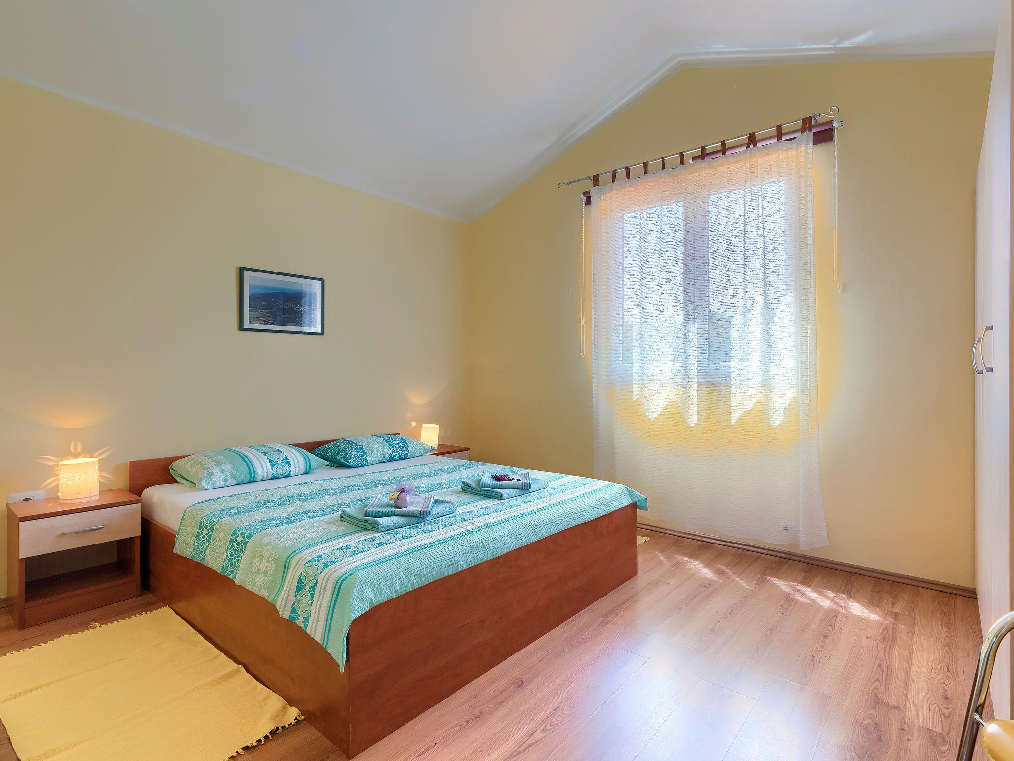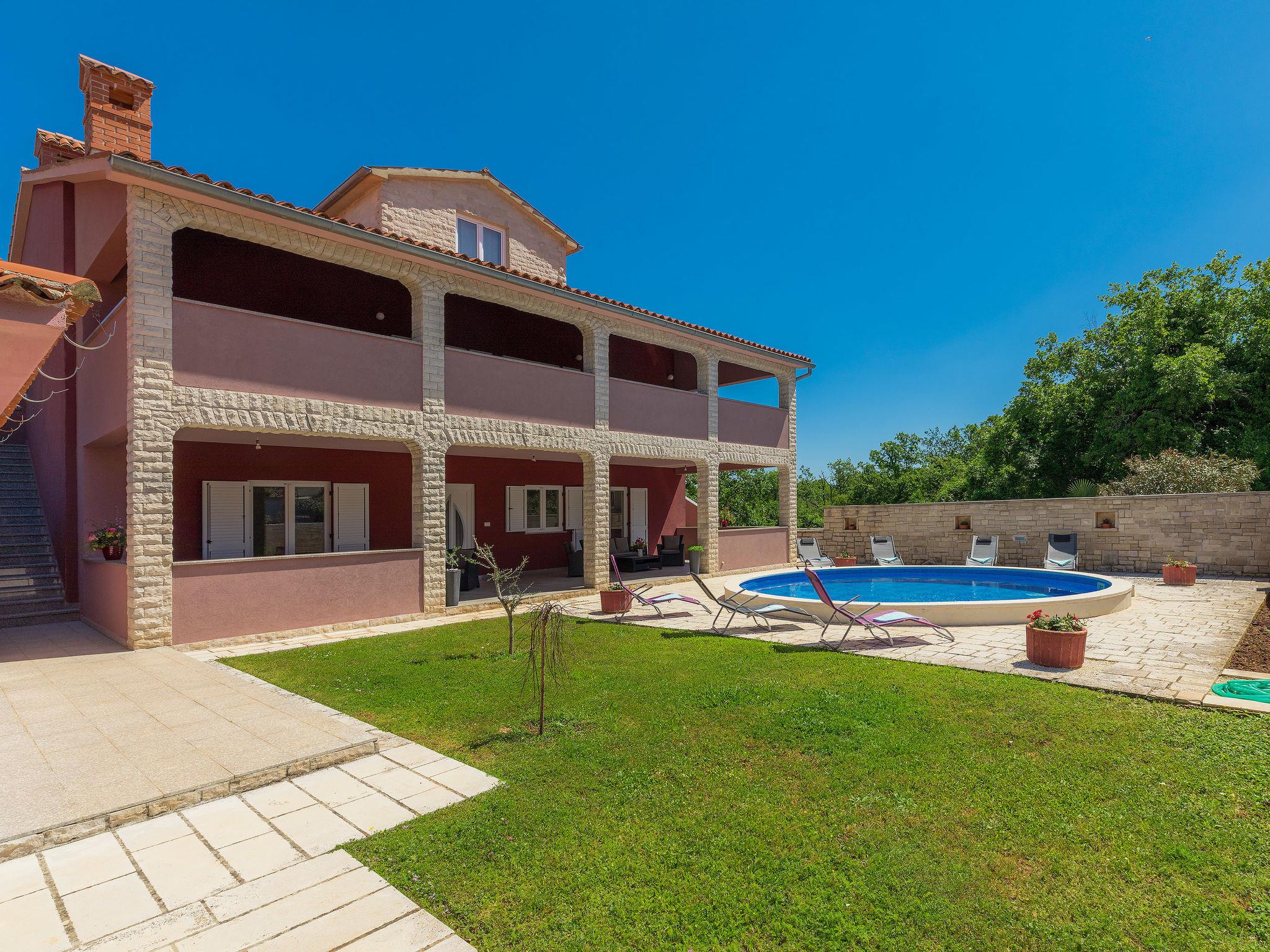 Beautiful semi-detached house "Ljiljana". On the outskirts, 500 m from the centre, in a sunny position, 2 km from the sea, 2 km from the beach. Private: property 1'500 m2 (fenced) with wildlife garden and trees, natural garden, swimming pool round (6 m diameter, depth 120 cm, seasonal availability: 01.May. - 30.Sep.). Terrace, garden furniture, barbecue. In the house: internet access. Parking at the house. Shop, restaurant 500 m, bus stop 7.2 km, shingle beach 2 km, rocky beach 2 km. Part of the house is closed and unoccupied.