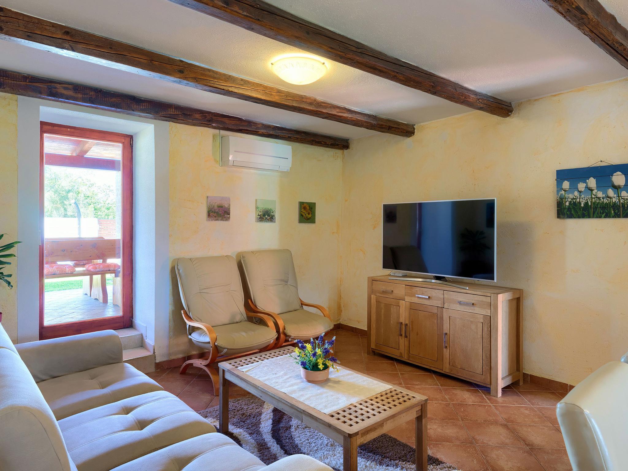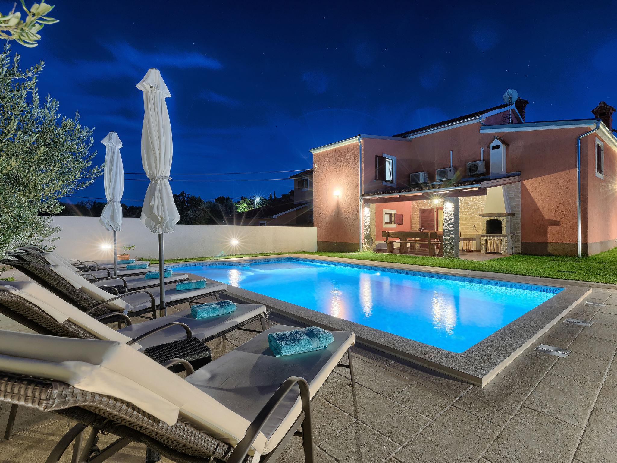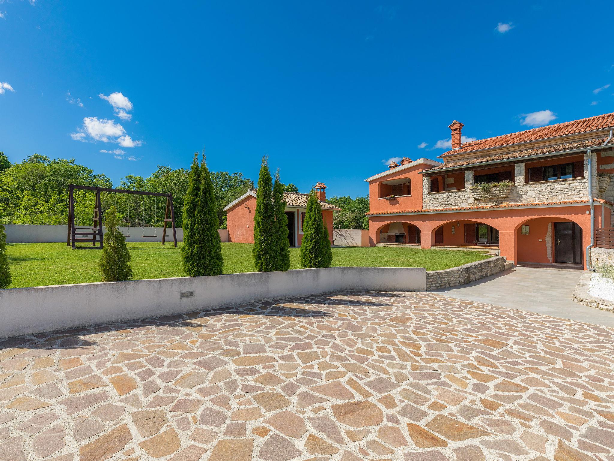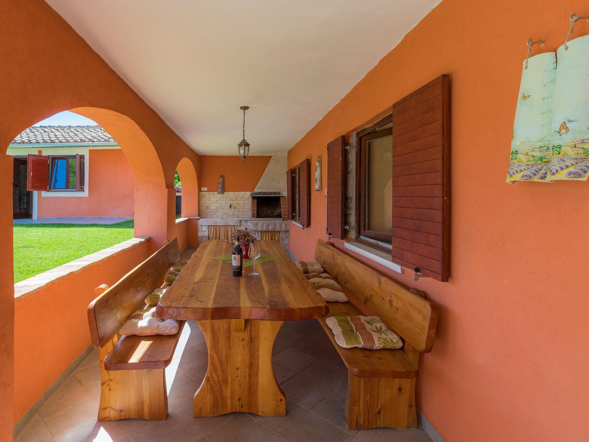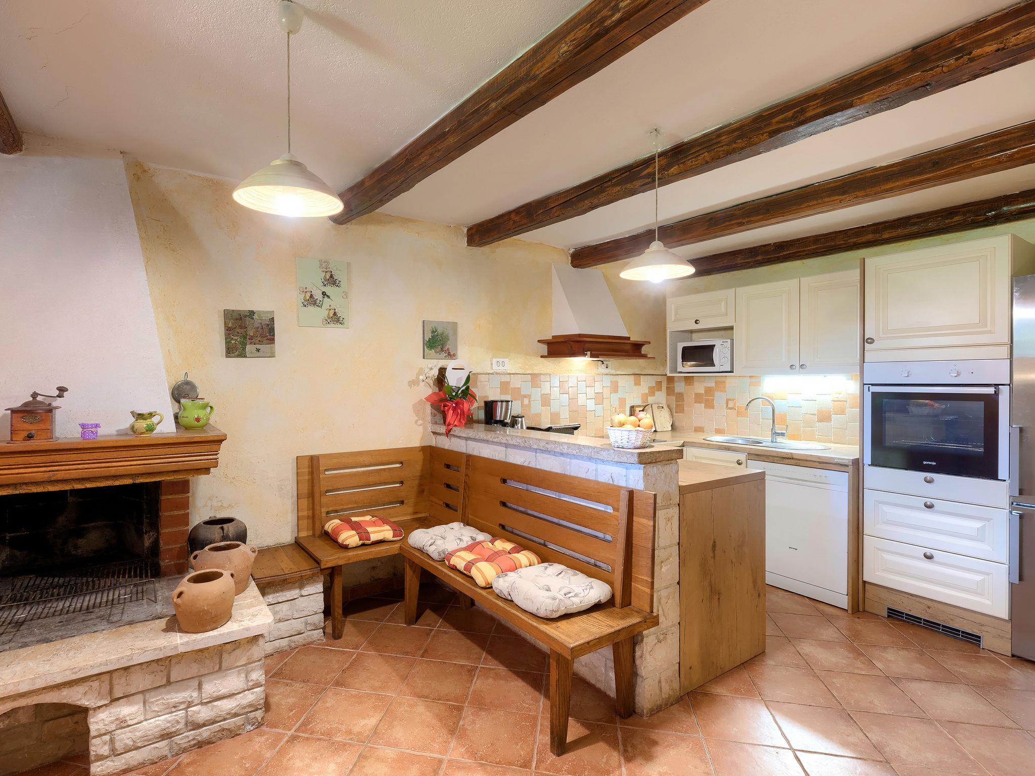 Beautiful semi-detached house "Villa Prisedi", 2 storeys. In a quiet, sunny position, 1.2 km from the sea, 1.2 km from the beach, in the countryside. Private: property 950 m2 (fenced), garden with lawn, swimming pool (33 m2, depth 140 cm, seasonal availability: 11.Apr. - 15.Oct.) with internal staircase and salt-electrolysis pool-cleaning system. Unconventional pool shape. Outdoor shower, table tennis, garden furniture, barbecue (swing). In the house: internet access, washing machine. Motor access to the house (1 km via unmade road). Parking (for 3 cars) at the house on the premises. Shop 1 km, supermarket 16 km, restaurant 1 km, café 2 km, bus stop 10 km, pebble beach 1.2 km, rocky beach 1.2 km, diving center 5 km. Tennis 10 km, riding stable 8 km, walking paths from the house 30 m, cycle lane 80 m. Nearby attractions: adventure park 10 km. The owner does not accept any youth groups. It is necessary to announce 7 days in advance if the heating (extra) is required.