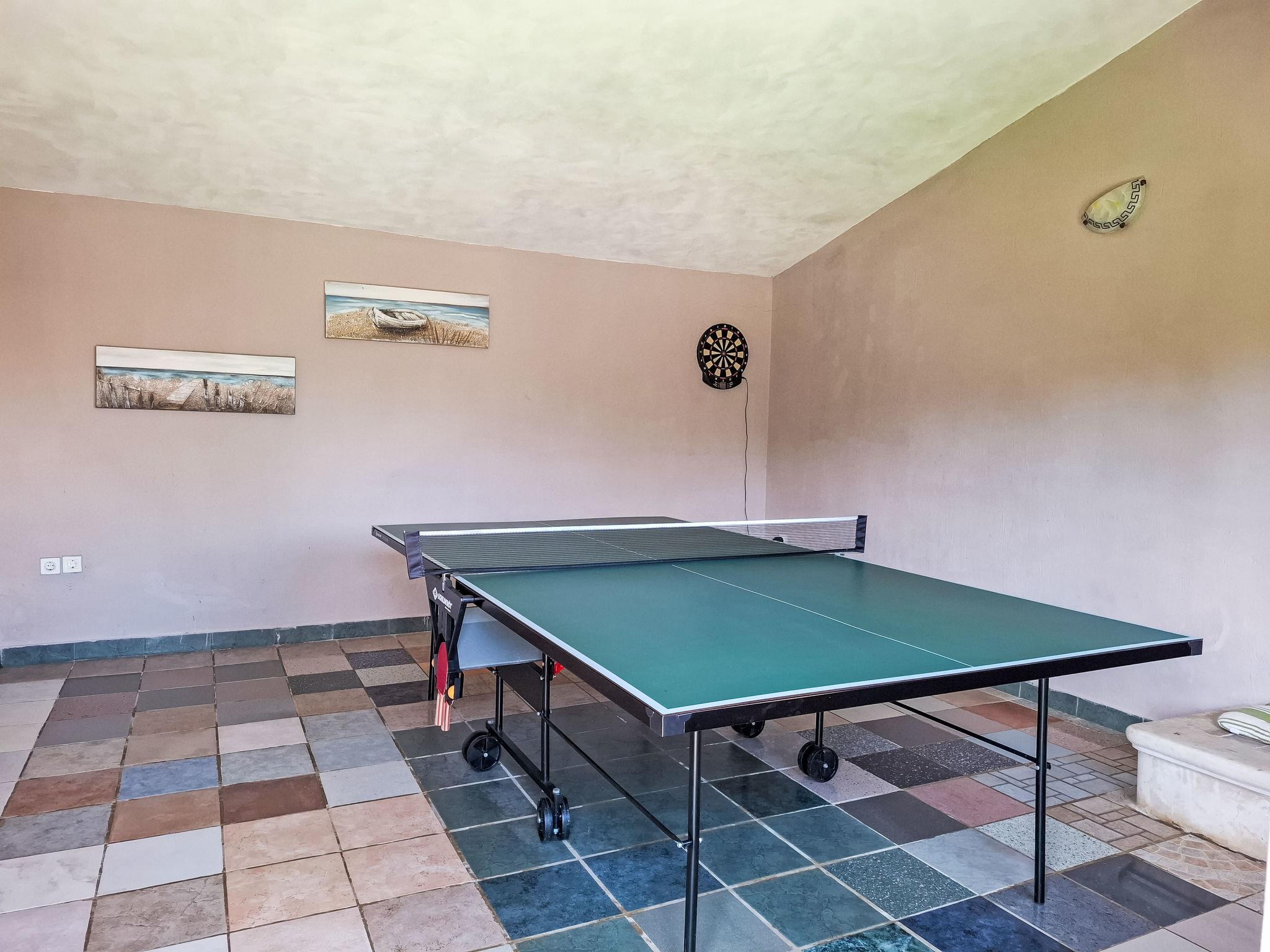 5-room semi-detached house 225 m2 on 2 levels. Beautiful furnishings: living/dining room 35 m2 with open-hearth fireplace (only for decoration), satellite TV (flat screen), air conditioning. Exit to the terrace. Open kitchen (oven, dishwasher, 4 ceramic glass hob hotplates, microwave, freezer, electric coffee machine). Shower/bidet/WC, sep. WC. Upper floor: entrance hall with air conditioning. 2 rooms, each room with 1 double bed (2 x 90 cm, length 200 cm), satellite TV. 1 room with 2 beds (90 cm, length 200 cm), satellite TV. 1 room with 1 double bed (2 x 90 cm, length 200 cm), satellite TV and air conditioning. Exit to the terrace. 2 showers/WC. Forced-air heating. Terrace 20 m2, roofed, 2 terraces 30 m2, roofed. Terrace furniture, barbecue, deck chairs. View of the swimming pool and the garden. Facilities: safe, iron, children's high chair, baby cot, hair dryer. Internet (WiFi, free). Maximum 1 pet/ dog allowed.