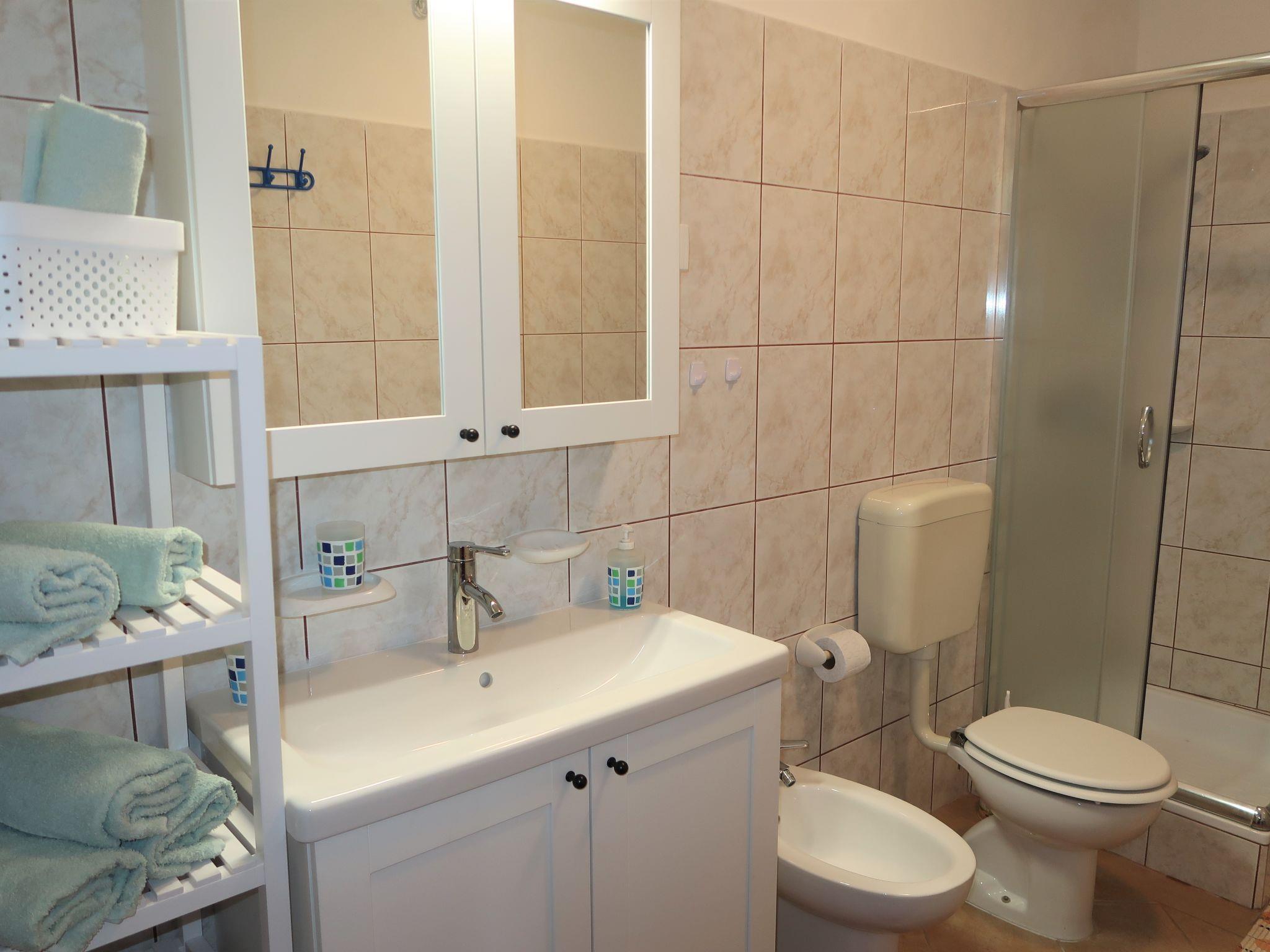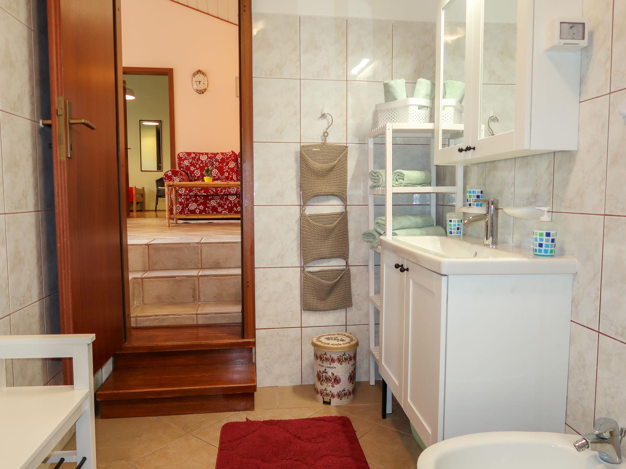 Semi-detached house "Milva". On the outskirts Rakalj, 28 km from the centre of Labin, 3 km from the sea, 3 km from the beach, in a cul-de-sac. For shared use: property 2'000 m2 with lawn and trees. In the house: internet access, washing machine. Parking on the premises. Shop 700 m, bus stop 7.8 km, pebble beach 3 km, rocky beach 3 km. Please note: the owner has a dog. Airfield 25 km from the property.