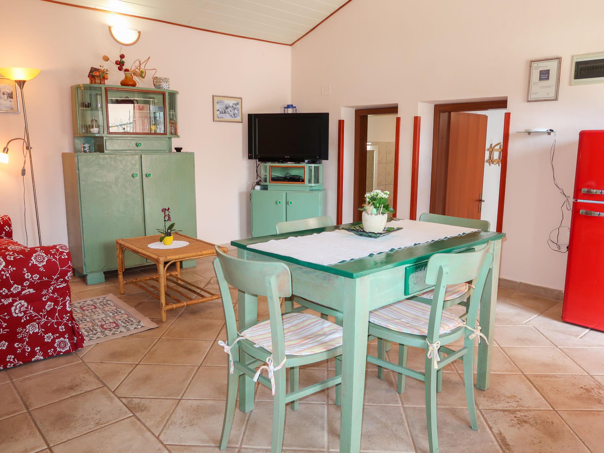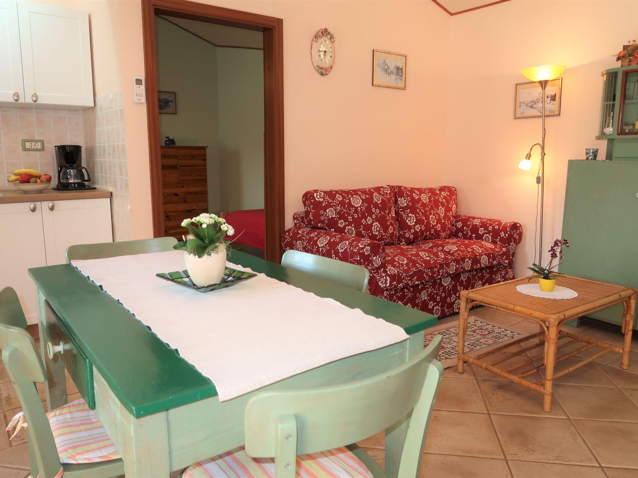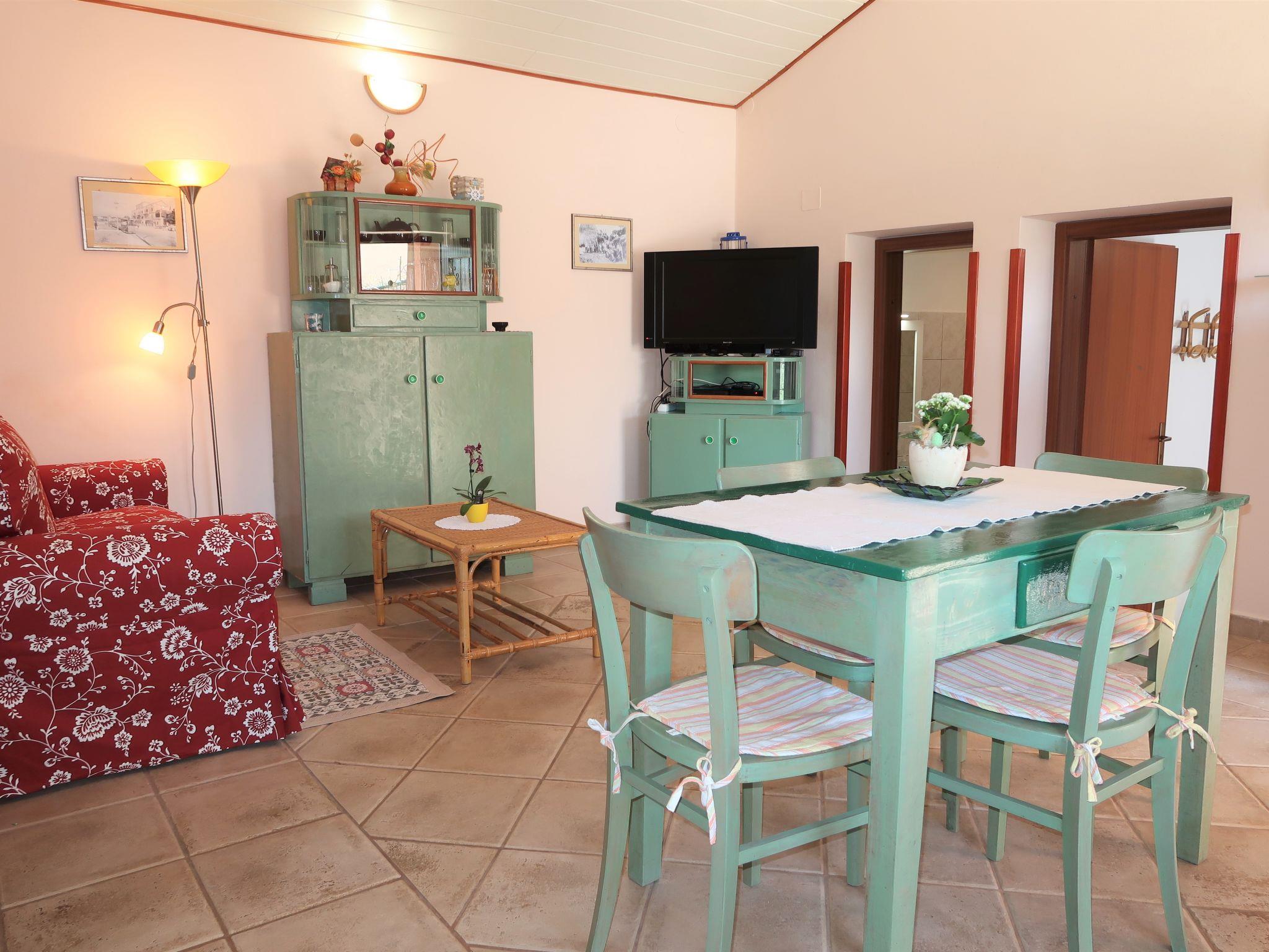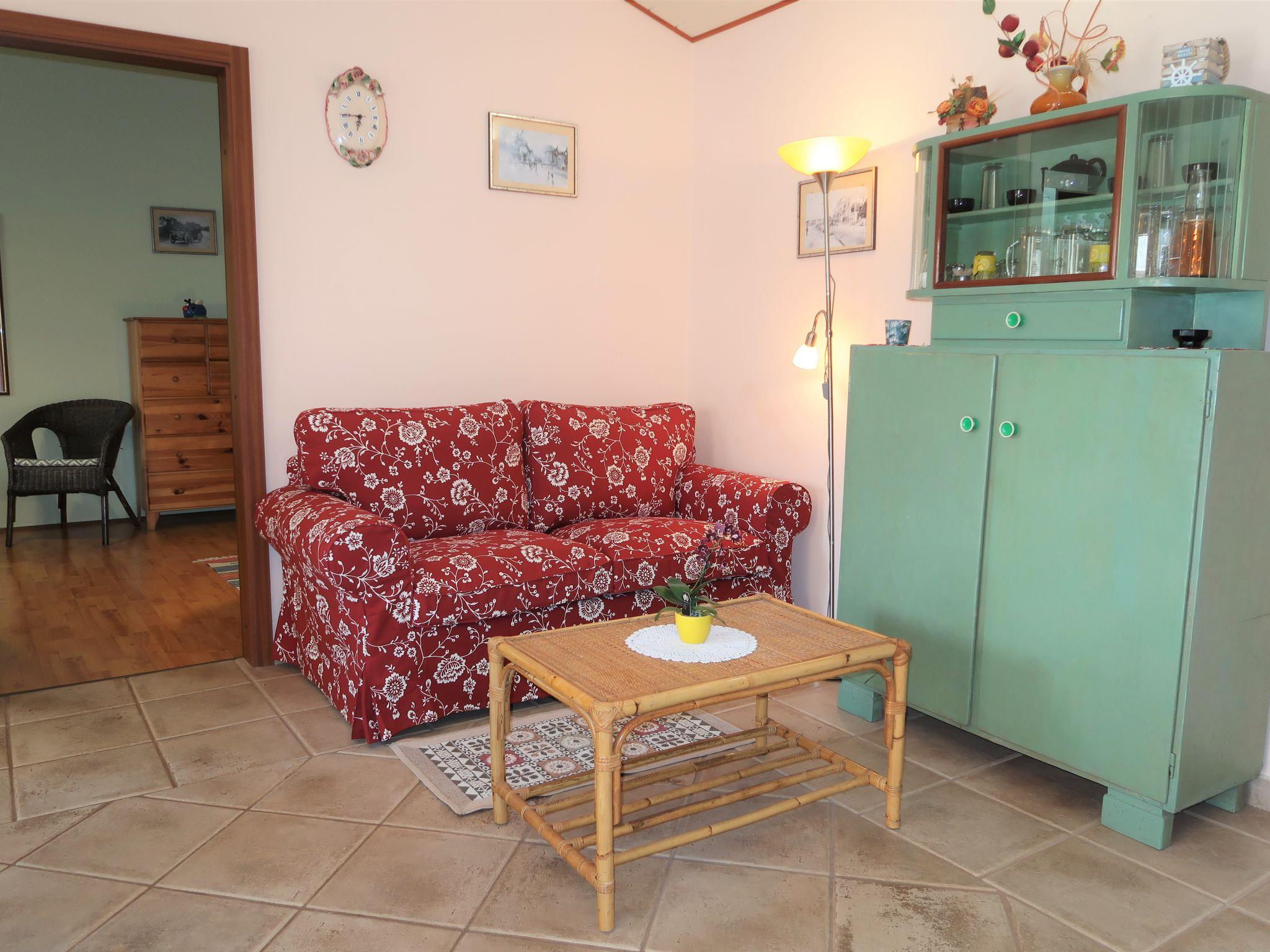3-room semi-detached house 55 m2. Living/dining room with satellite TV and air conditioning. 1 room with 2 beds. 1 room with 1 double bed. Open kitchen (2 hot plates, toaster, kettle, microwave, freezer, electric coffee machine). Shower/bidet/WC. No heating option. Terrace 15 m2 partly roofed. Terrace furniture, barbecue (portable). Facilities: baby cot (extra), hair dryer. Internet (WiFi, free). Please note: non-smoking house. Room with double bed, shower/bidet/WC is 3 steps below the living/dining area, open kitchen and room with 2 beds.