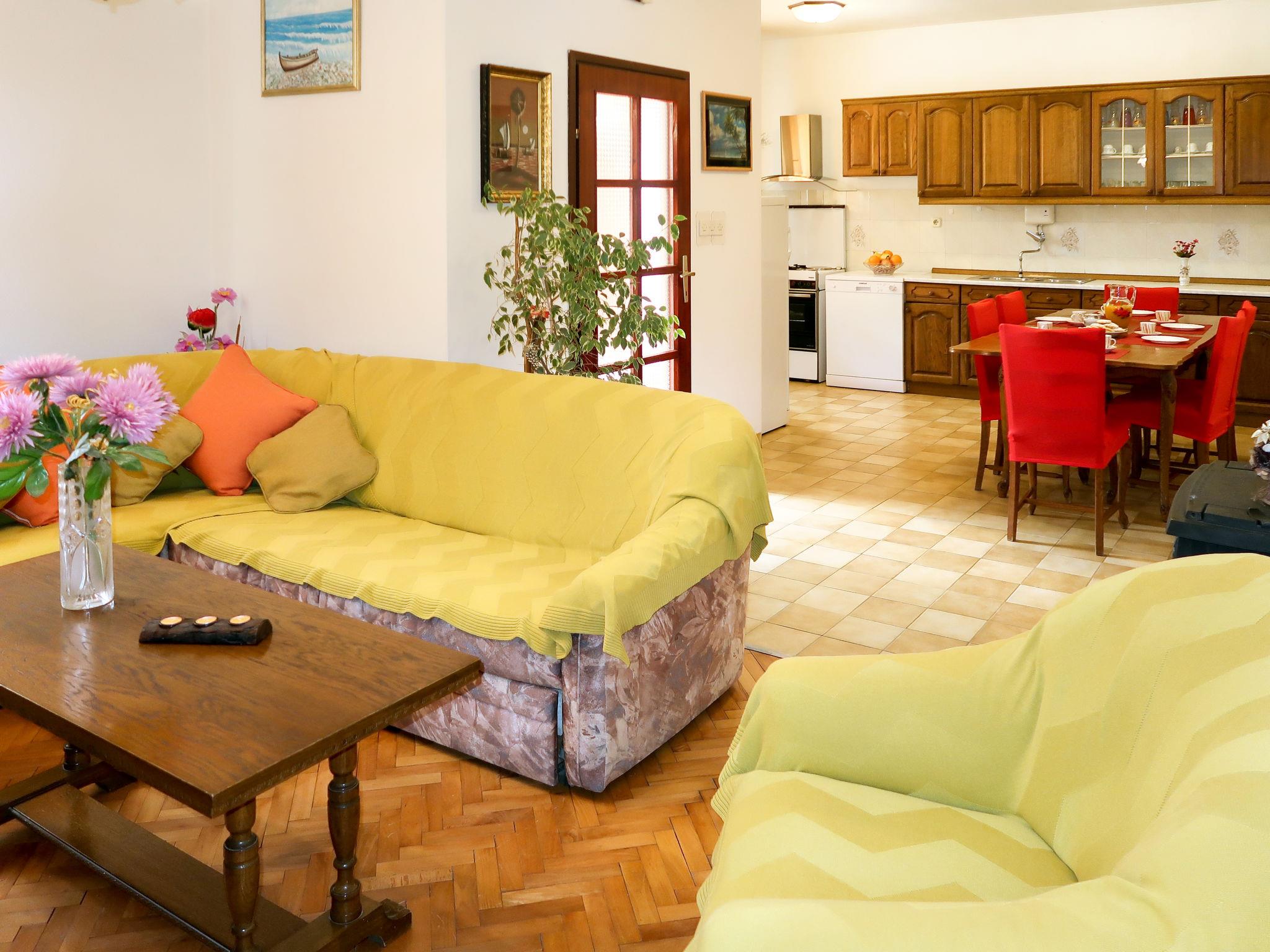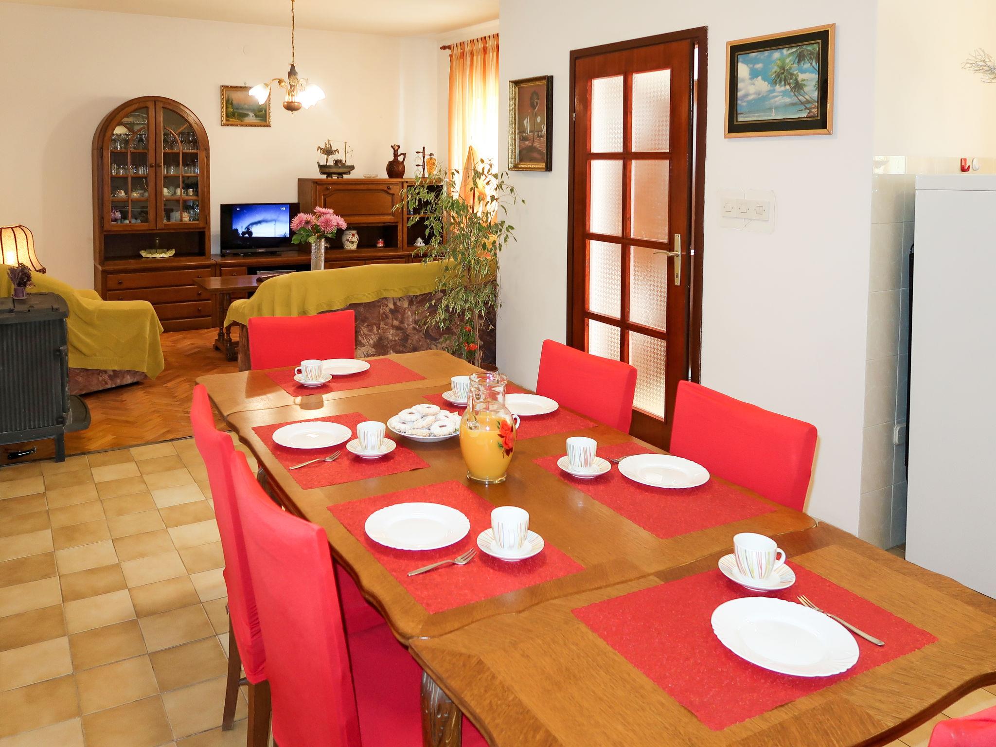 Single-family house "Ariana". 1 km from the centre of Rakalj, 1 km from the sea, 1 km from the beach. Private: property 2'000 m2 with lawn and trees, swimming pool (above ground) round (4.8 m diameter, depth 125 cm, seasonal availability: 10.May. - 03.Oct.). Garden furniture, barbecue (swing), pool maintenance by the owner/gardener. In the house: internet access, washing machine. Parking (for 2 cars) on the premises. Shop 1 km, restaurant 1 km, bus stop 9.6 km, pebble beach 1 km, rocky beach 1 km. Possibility of buying autochthonous food products (on request, extra). The owner can organize 1h boat trips (on request, included), additional trips with the owner's boat (on request, extra).
