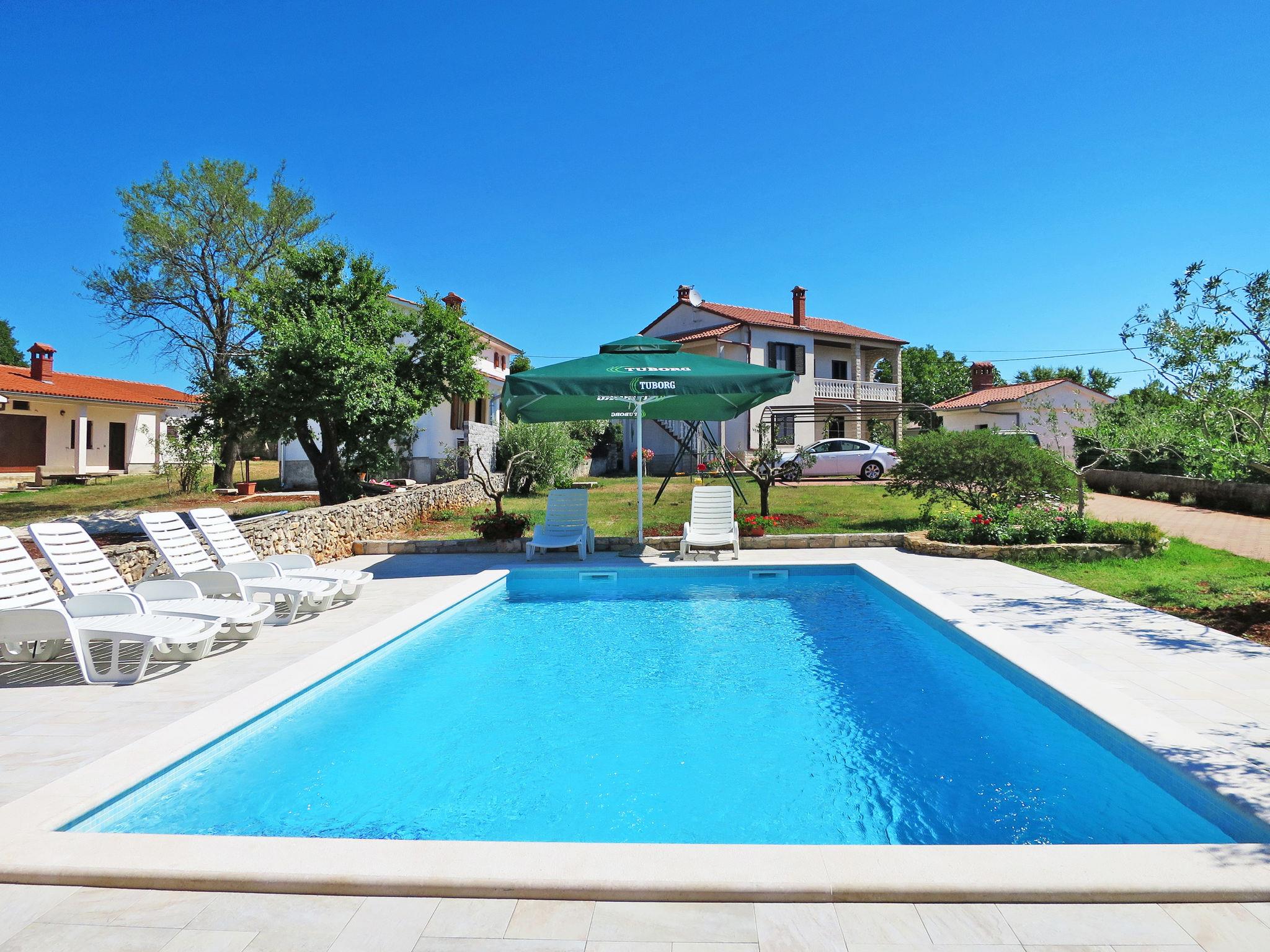 Apartment house "Martina & Rosa". 800 m from the centre of Rakalj, 3 km from the centre of Krnica, 29 km from the centre of Labin, 4 km from the sea, 4 km from the beach. For shared use: property 1'400 m2 with lawn and plants, swimming pool (8 x 4 m, depth 135 cm, seasonal availability: 01.May. - 05.Oct.) with salt-electrolysis pool-cleaning system. Terrace, garden furniture, barbecue (swing). In the house: internet access. Parking on the premises. Shop 800 m, restaurant 3 km, bus stop 8.7 km, rocky beach 4 km. Marina 28 km.