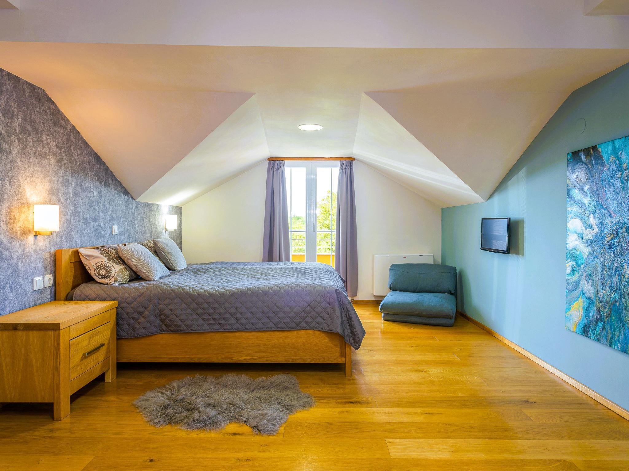 Beautiful single-family house "Villa Krase", 3 storeys. In the hamlet Rakalj 25 km from the centre of Pula, in a quiet, sunny position, 4 km from the sea, 4 km from the beach, in the countryside. Private: property 1'000 m2 (fenced) with wildlife garden and trees, swimming pool angular (30 m2, depth 140 cm, seasonal availability: 27.Apr. - 26.Oct.) with internal staircase. Outdoor shower, terrace, garden furniture, barbecue, pool maintenance by the owner/gardener. In the house: internet access, sauna, fitness room, hot tub, table tennis, billiard table, table football, air conditioning, washing machine. Parking (for 3 cars) at the house on the premises. Shop 2 km, shopping centre 25 km, restaurant 2 km, bus stop 7.7 km, pebble beach 4 km. Please note: airfield 20 km from the property.