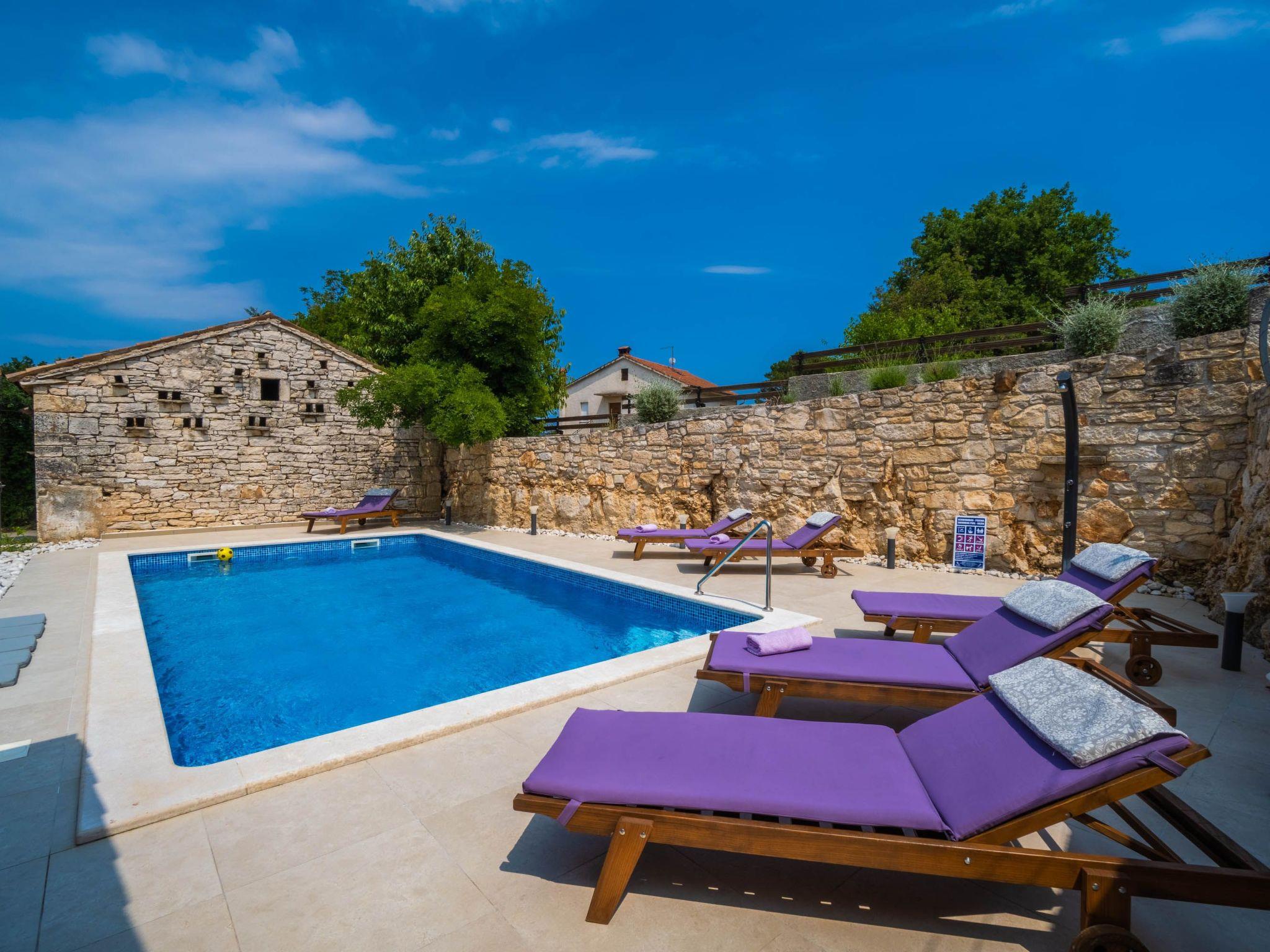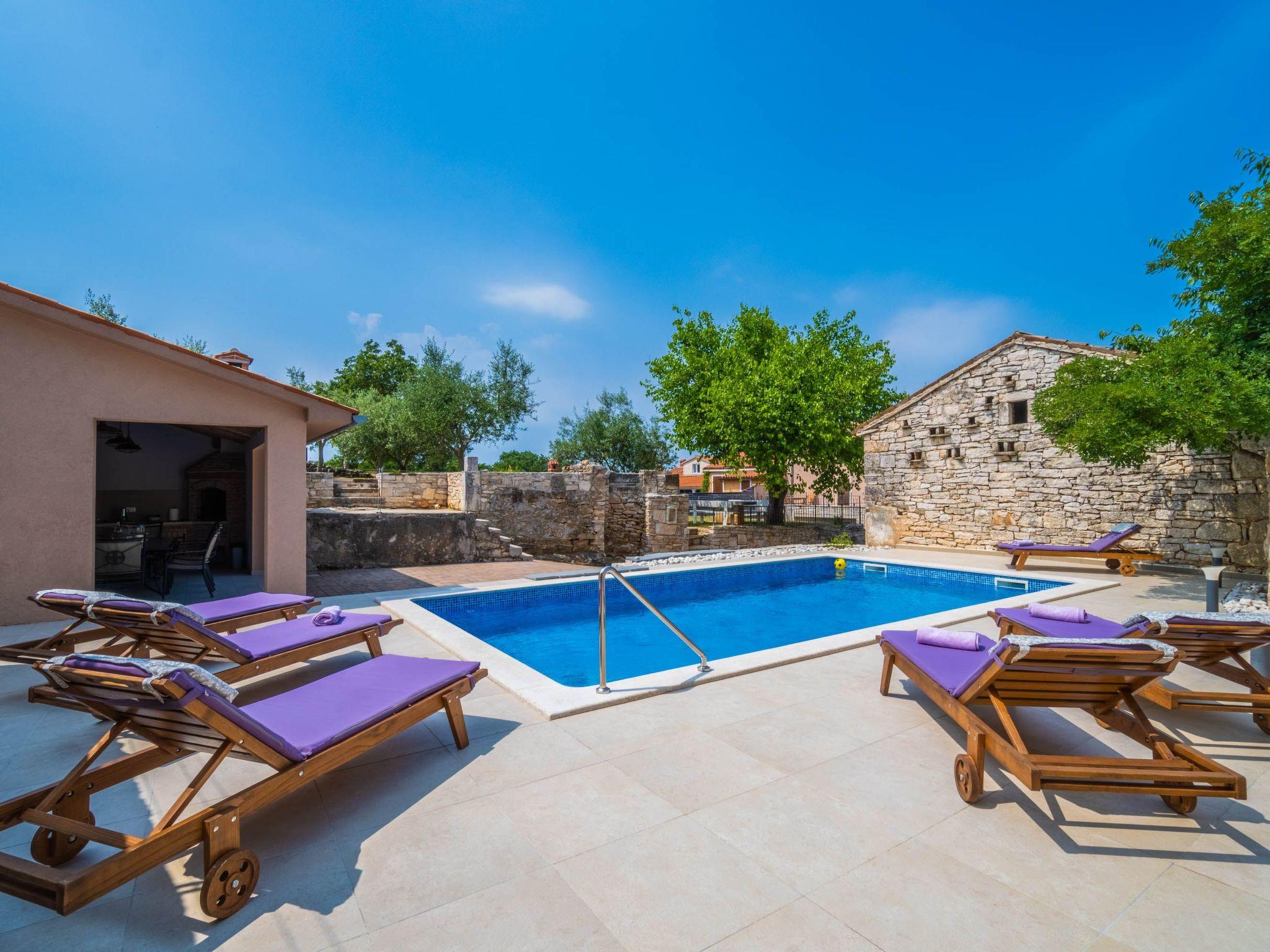 This appealing villa is located in the village Rakalj, the south-eastern part of the Istrian peninsula. Surrounded by spacious, well maintained property (943 m2) with a private pool and olive trees. Guests enter into the fenced area through the automatic gate and leave the car within the private property. Covered summer kitchen with grill and garden furniture are the perfect place for relaxing family gatherings. Plenty of outside activities offered on multi-level terraces and areas are even connected by the small bridge. The scent of the Mediterranean garden and nearby forest will enrich guests' impression of the surrounding. This villa assures peaceful holiday in complete privacy and safety.