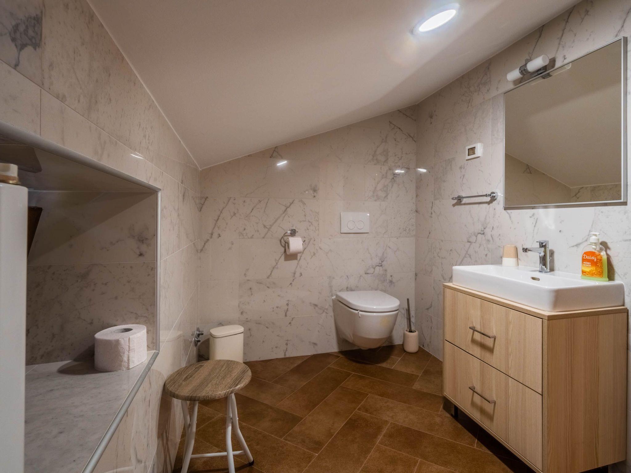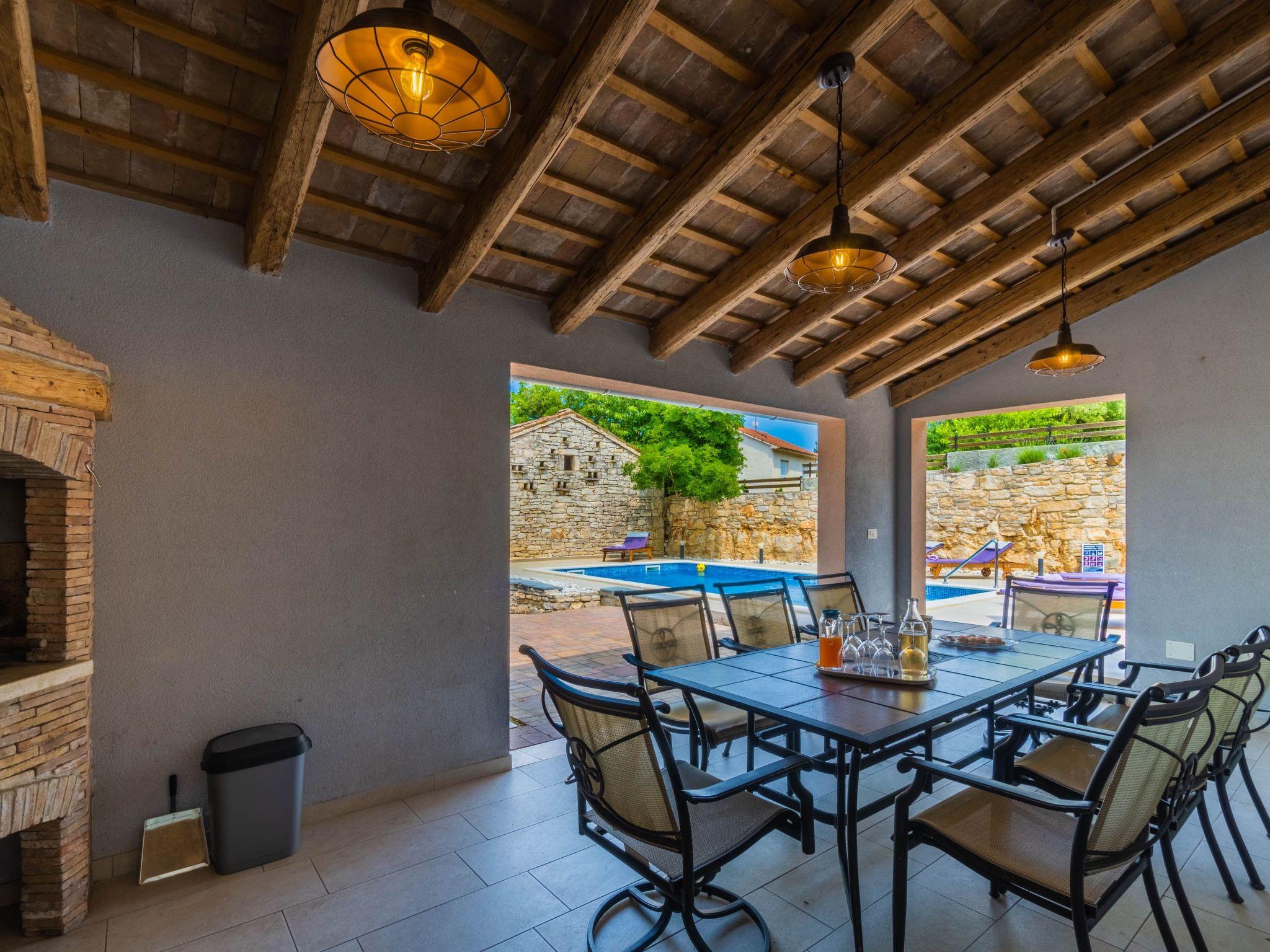 The interior space is carefully designed to charm with its elegance. Yet, the warmth and authenticity of the Istrian architecture is kept by the well preserved details from the past, as wooden beams on the ceiling and stone walls. Spacious interior space is divided on the ground floor, first and second floor. This villa features 5 bedrooms, 6 bathrooms, 2 living rooms and 2 kitchen. Two bedrooms on the second floor are attic rooms with a low ceiling.