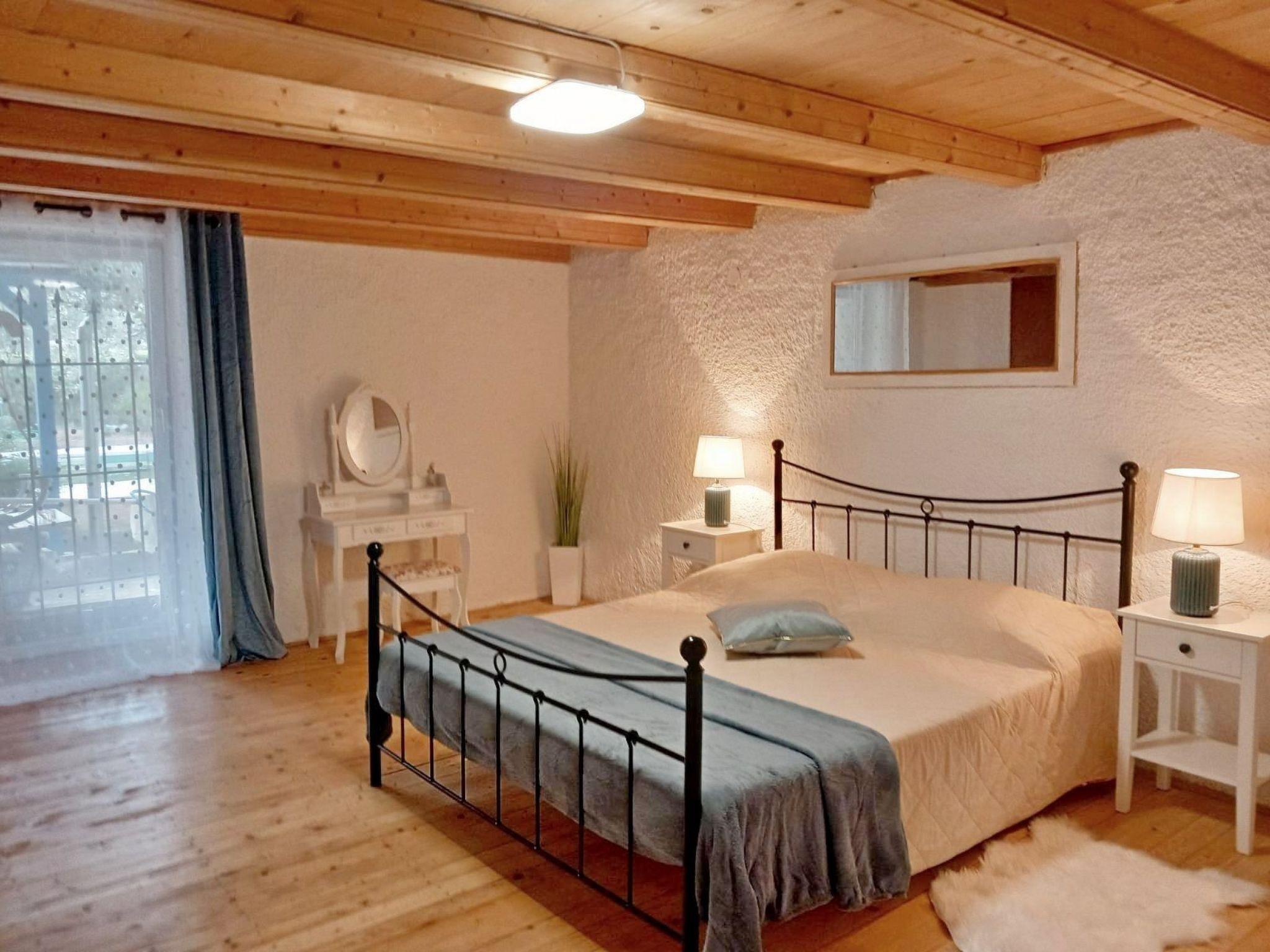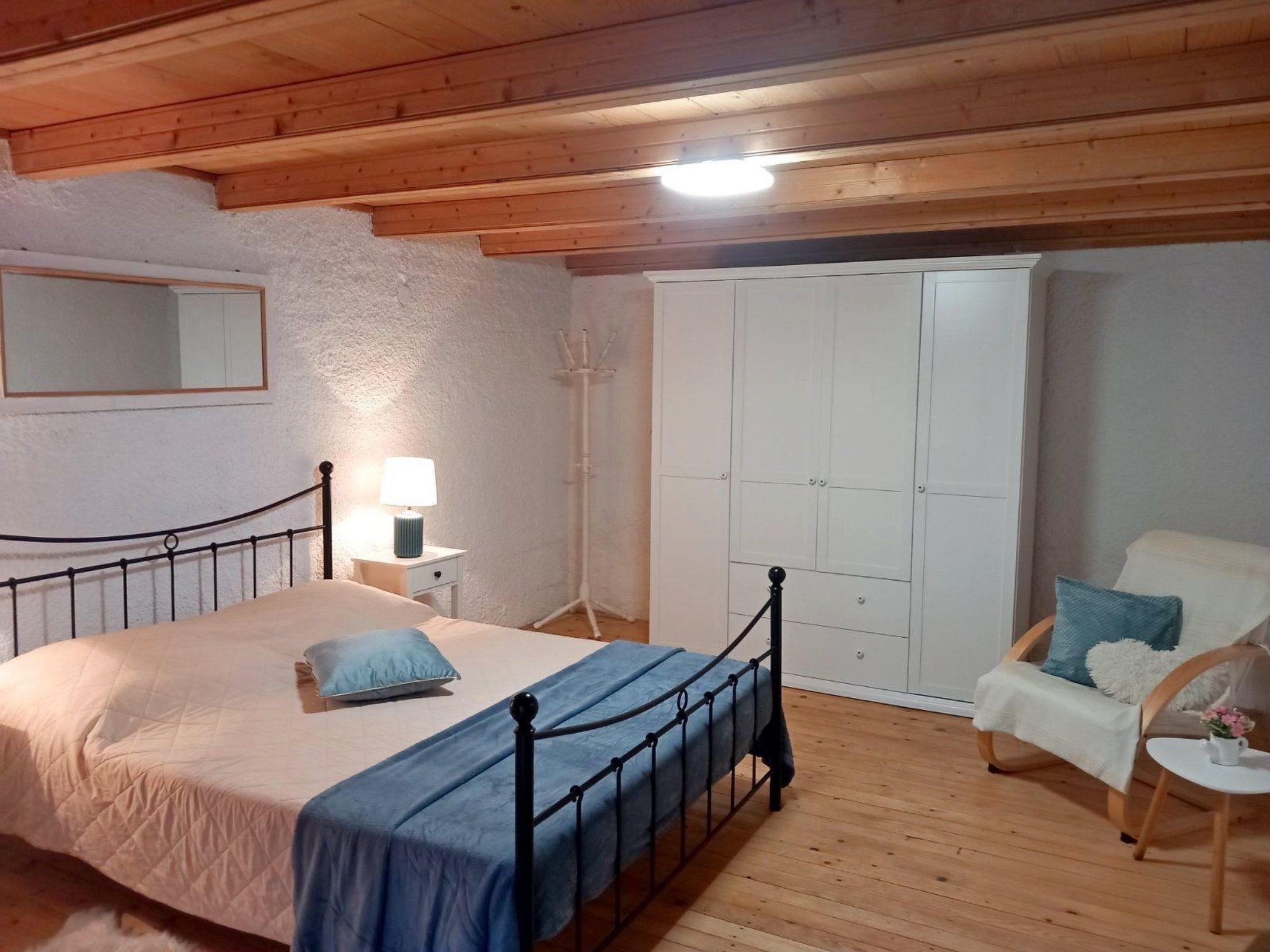 Ground floor: living room with fireplace, comfortable open kitchen with dining area and bathroom(shower, washstand, wc), bedroom with double bed
