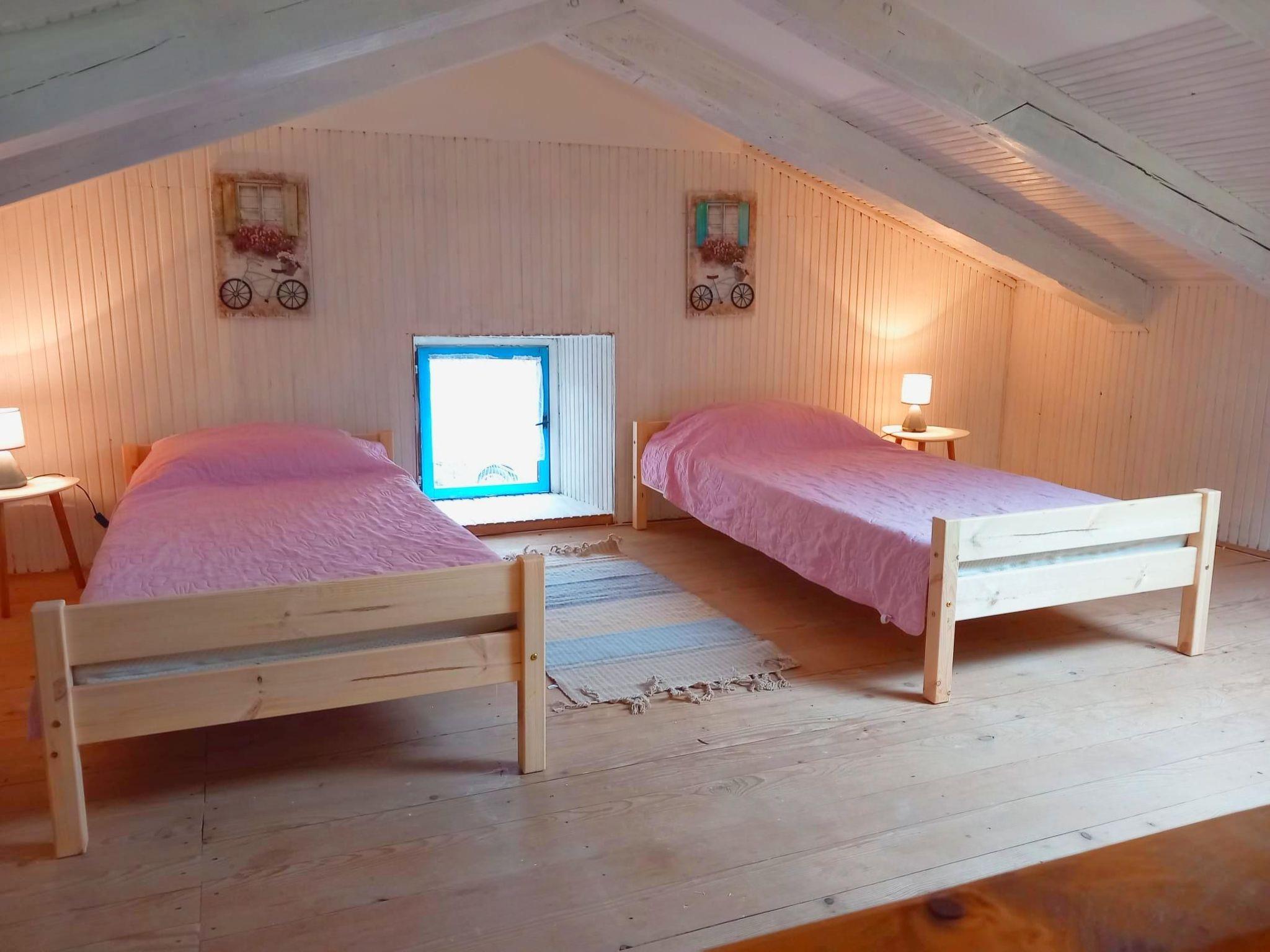 Inside stairs leading to the first floor (open attic): 1 bedrooms (3 single beds)