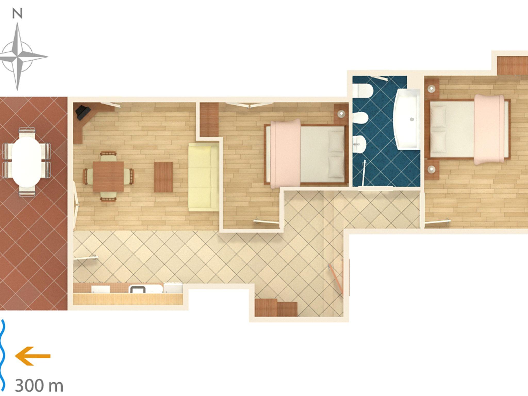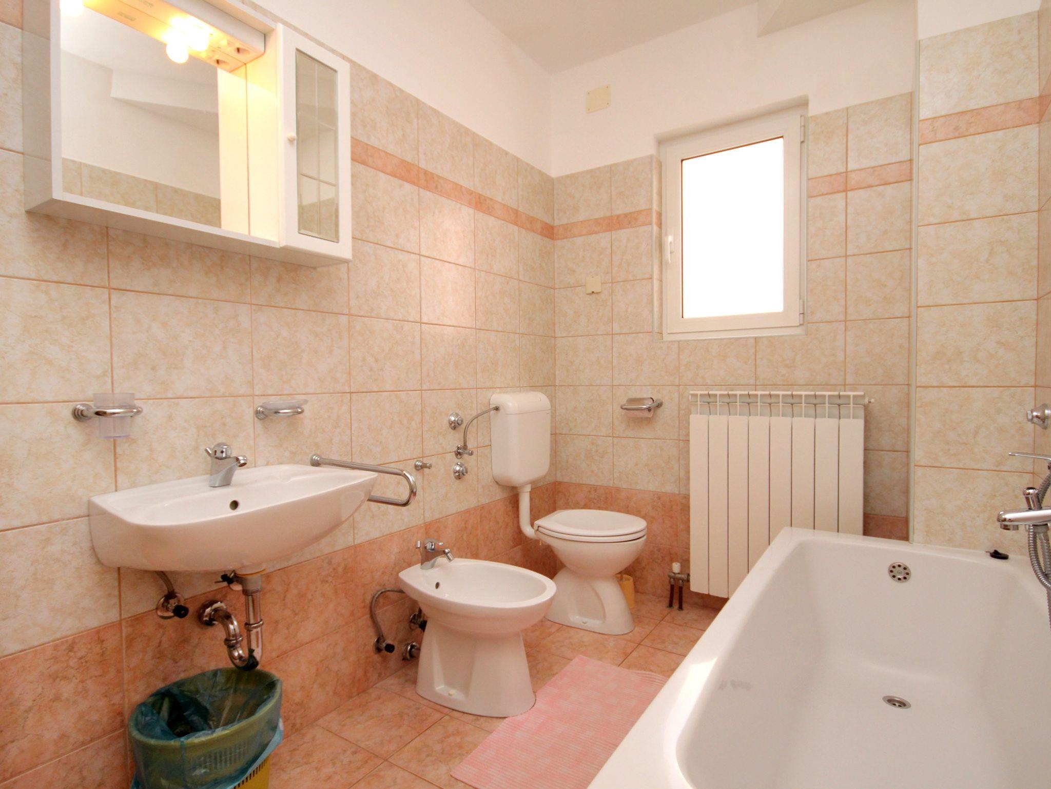 Ferienwohnung bietet Platz für 6 Gäste. Die Betten sind in Schlafzimmern, die es 2 gibt, und in Wohnzimmer, innerhalb einer Gesamtfläche von 59m2, angeordnet. Die Gäste haben eine eigene Terrasse zur Verfügung, auf der sie in warmen Sommernächten genießen können. Das Apartment bietet Meerblick. Es ist erlaubt, Speisen auf dem Gemeinschafts-Grill vorzubereiten. In der Unterkunftseinheit besteht die Möglichkeit des Mitbringens von Haustieren gegen Aufpreis. IM PREIS INBEGRIFFEN: Kurtaxe, Endreinigung, Parkplatz, Internet, Wäschewaschen, Kinderbett, Föhn. VERBINDLICHE ZUSÄTZLICHE KOSTEN: Aufzahlung für Kurzaufenthalte (prozentualer Zuschlag pro Nächtigungsanzahl: 30% - 1, 20% - 2, 10% - 3). UNVERBINDLICHE ZUSÄTZLICHE KOSTEN: Frühstück (7,00 €, 50% Nachlass für Kinder zwischen 4 und 12 Jahren, Kinder bis 4 Jahre sind frei.), Klimatisierung (6,00 € pro Nacht), Zentralheizung (6,00 € pro Nacht), Haustiere (5,00 € pro Nacht), Zusatzbett (5,00 € pro Nacht). Die Verfügbarkeit zusätzlicher Dienstleistungen in Ihrem reservierten Termin und die Preise derselben (falls nicht aufgeführt) müssen im Voraus überprüft werden. Zusätzliche Dienstleistungen die in der Zahlungsaufforderung nicht aufgeführt sind werden direkt beim Vermieter bezahlt, angenommen der Gast nutzt auch diese.
