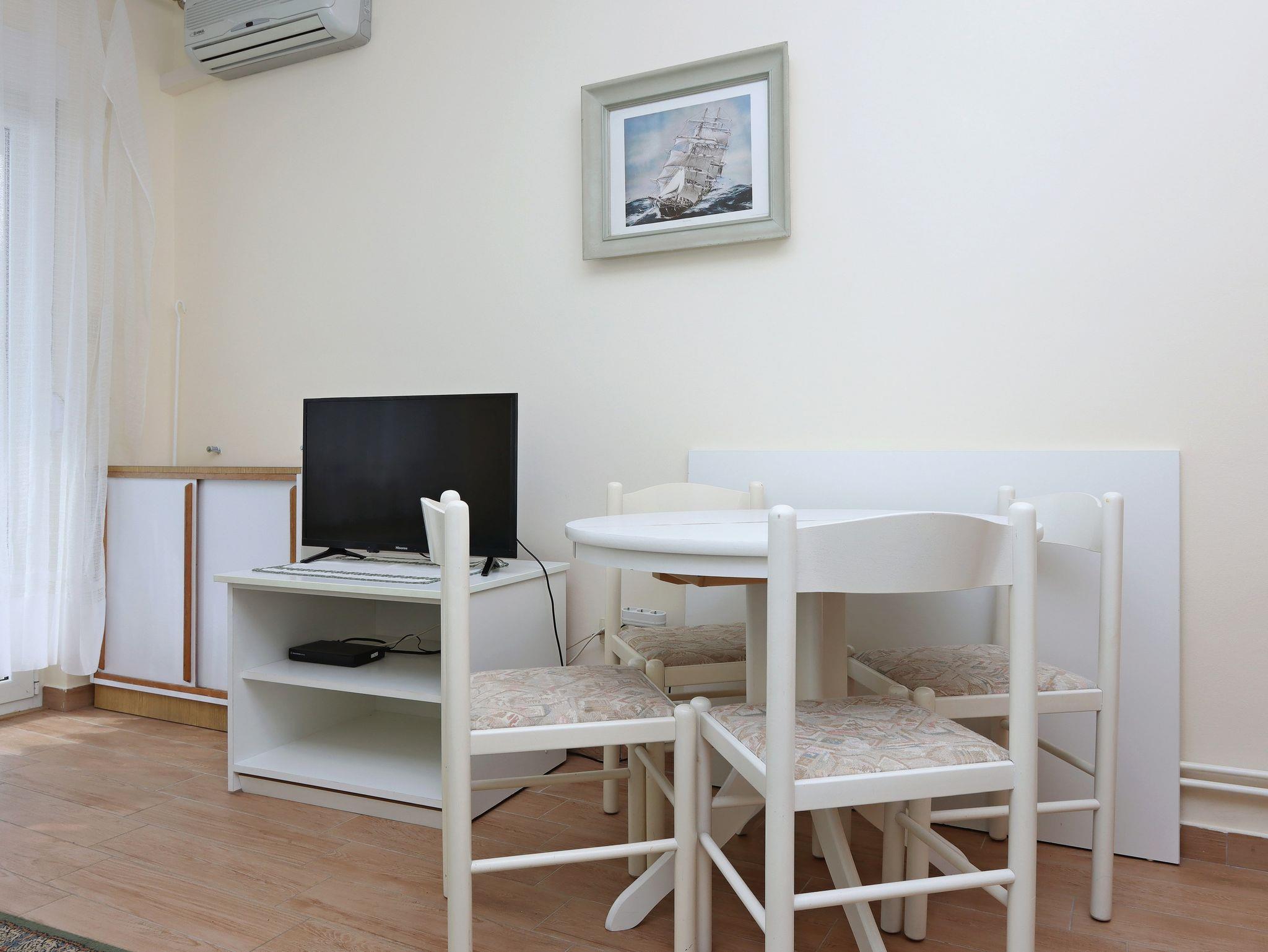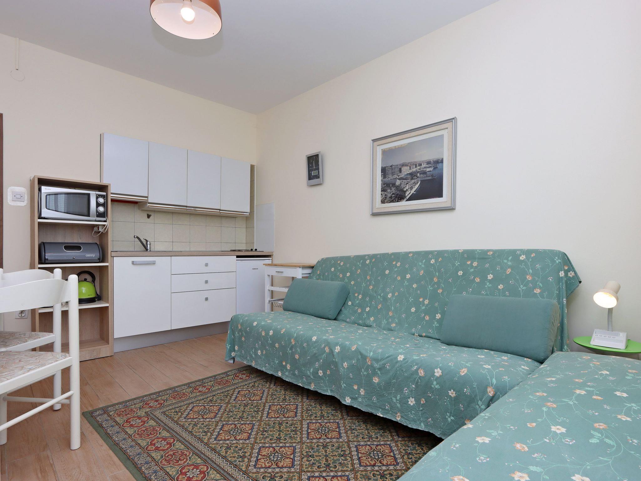 Ferienwohnung bietet Platz für 4 Gäste. Die Betten sind in Schlafzimmern, die es 1 gibt, und in Wohnzimmer, innerhalb einer Gesamtfläche von 35m2, angeordnet. Die Gäste haben einen eigenen Balkon zur Verfügung, auf der sie in warmen Sommernächten genießen können. Das Apartment bietet Meerblick. Es ist erlaubt, Speisen auf dem Gemeinschafts-Grill vorzubereiten. In der Unterkunftseinheit besteht die Möglichkeit des Mitbringens von Haustieren gegen Aufpreis. IM PREIS INBEGRIFFEN: Kurtaxe, Endreinigung, Klimatisierung, Zentralheizung, Parkplatz, Internet, Wäschewaschen. VERBINDLICHE ZUSÄTZLICHE KOSTEN: Aufzahlung für Kurzaufenthalte (prozentualer Zuschlag pro Nächtigungsanzahl: 30% - 1, 20% - 2, 10% - 3). UNVERBINDLICHE ZUSÄTZLICHE KOSTEN: Haustiere (5,00 € pro Nacht). Die Verfügbarkeit zusätzlicher Dienstleistungen in Ihrem reservierten Termin und die Preise derselben (falls nicht aufgeführt) müssen im Voraus überprüft werden. Zusätzliche Dienstleistungen die in der Zahlungsaufforderung nicht aufgeführt sind werden direkt beim Vermieter bezahlt, angenommen der Gast nutzt auch diese. Ermäßigung auf den Grundpreis: Gratistag 14=13 (bei einem Aufenthalt von 14 Tagen oder mehr erhalten Sie einen Gratistag für den Aufenthalt bis 31.12.26).