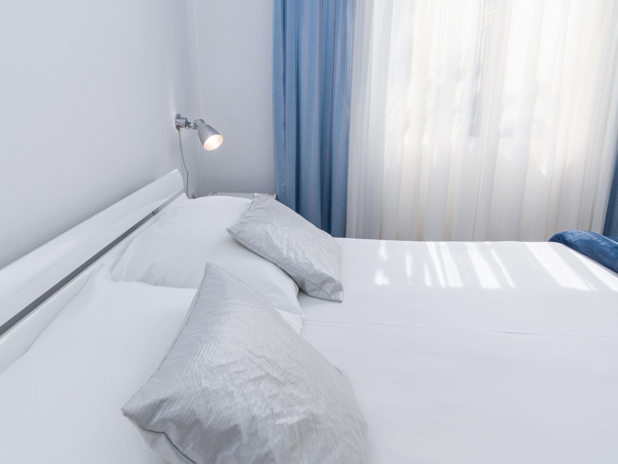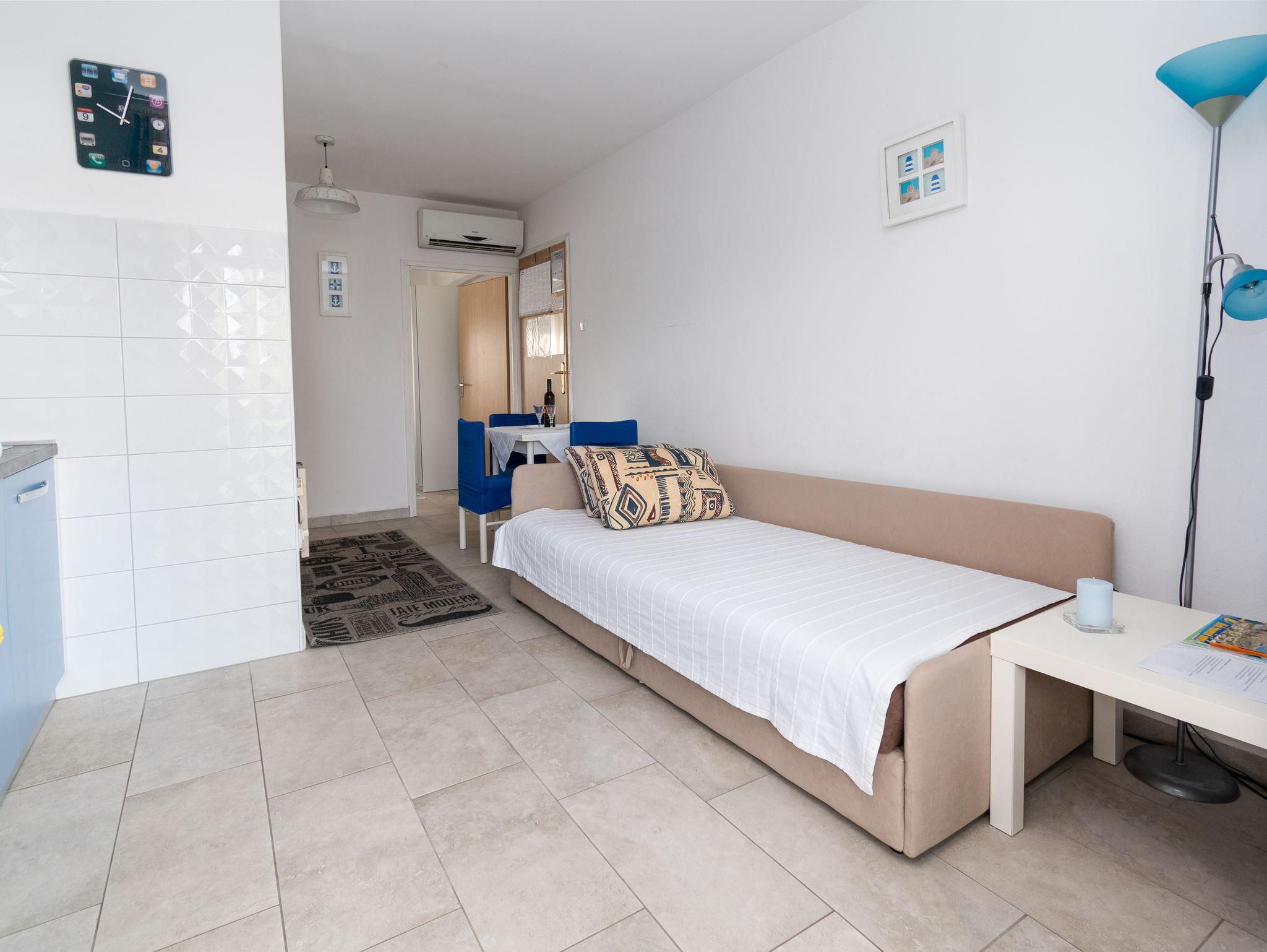 Ferienwohnung bietet Platz für 3 Gäste. Die Betten sind in Schlafzimmern, die es 1 gibt, und in Wohnzimmer, innerhalb einer Gesamtfläche von 26m2, angeordnet. Die Gäste haben eine eigene Terrasse zur Verfügung, auf der sie in warmen Sommernächten genießen können. Das Apartment bietet Meerblick. Es ist erlaubt, Speisen auf dem Gemeinschafts-Grill vorzubereiten. In der Unterkunftseinheit besteht die Möglichkeit des Mitbringens von Haustieren gegen Aufpreis. Unterkunftseinheit hat Räume, die von dem Rest der Einheit abgetrennt werden. IM PREIS INBEGRIFFEN: Kurtaxe, Endreinigung, Parkplatz, Internet, Bügeleisen, Bügelbrett, Föhn, tragbarer Grill. UNVERBINDLICHE ZUSÄTZLICHE KOSTEN: Klimatisierung (7,00 € pro Nacht), Haustiere (7,00 € pro Nacht). Die Verfügbarkeit zusätzlicher Dienstleistungen in Ihrem reservierten Termin und die Preise derselben (falls nicht aufgeführt) müssen im Voraus überprüft werden. Zusätzliche Dienstleistungen die in der Zahlungsaufforderung nicht aufgeführt sind werden direkt beim Vermieter bezahlt, angenommen der Gast nutzt auch diese. Ermäßigung auf den Grundpreis: Gratistag 14=13 (bei einem Aufenthalt von 14 Tagen oder mehr erhalten Sie einen Gratistag für den Aufenthalt bis 31.12.26).