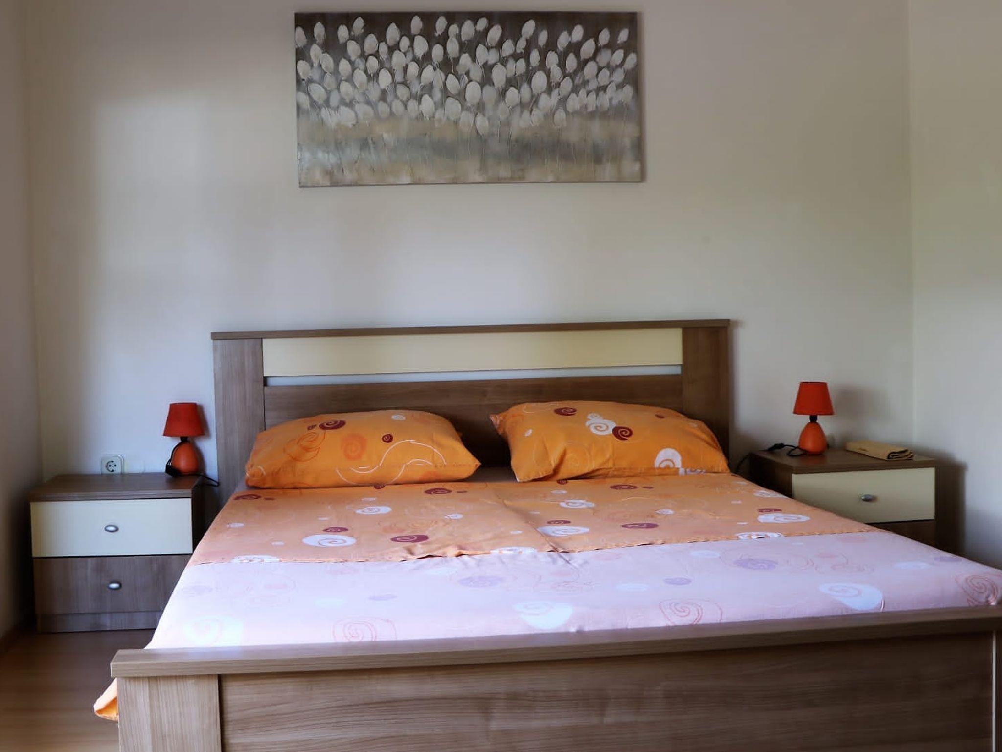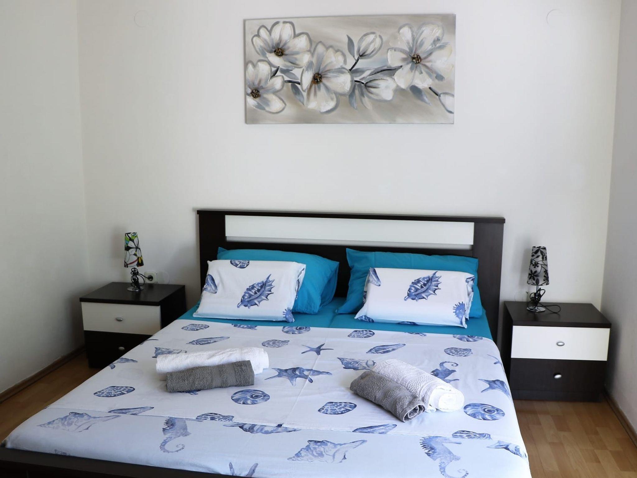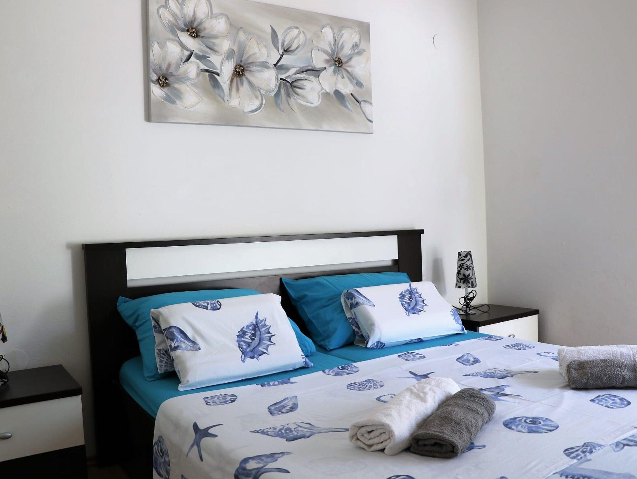 Ferienwohnung bietet Platz für 6 Gäste. Die Betten sind in Schlafzimmern, die es 2 gibt, und in Wohnzimmer, innerhalb einer Gesamtfläche von 71m2, angeordnet. Die Gäste haben eine eigene Terrasse zur Verfügung, auf der sie in warmen Sommernächten genießen können. Für vollen Genuss und Entspannung gibt es einen privaten Grill für Gäste dieser Unterkunft. In der Unterkunftseinheit besteht die Möglichkeit des Mitbringens von Haustieren gegen Aufpreis. IM PREIS INBEGRIFFEN: Kurtaxe, Endreinigung, Klimatisierung, Parkplatz, Internet, Bügeleisen, Bügelbrett, Föhn, tragbarer Grill. UNVERBINDLICHE ZUSÄTZLICHE KOSTEN: Haustiere (7,00 € pro Nacht). Die Verfügbarkeit zusätzlicher Dienstleistungen in Ihrem reservierten Termin und die Preise derselben (falls nicht aufgeführt) müssen im Voraus überprüft werden. Zusätzliche Dienstleistungen die in der Zahlungsaufforderung nicht aufgeführt sind werden direkt beim Vermieter bezahlt, angenommen der Gast nutzt auch diese. Ermäßigung auf den Grundpreis: Gratistag 21=19 (bei einem Aufenthalt von 21 Tagen oder mehr erhalten Sie 2 Gratistage für den Aufenthalt bis 31.12.26).