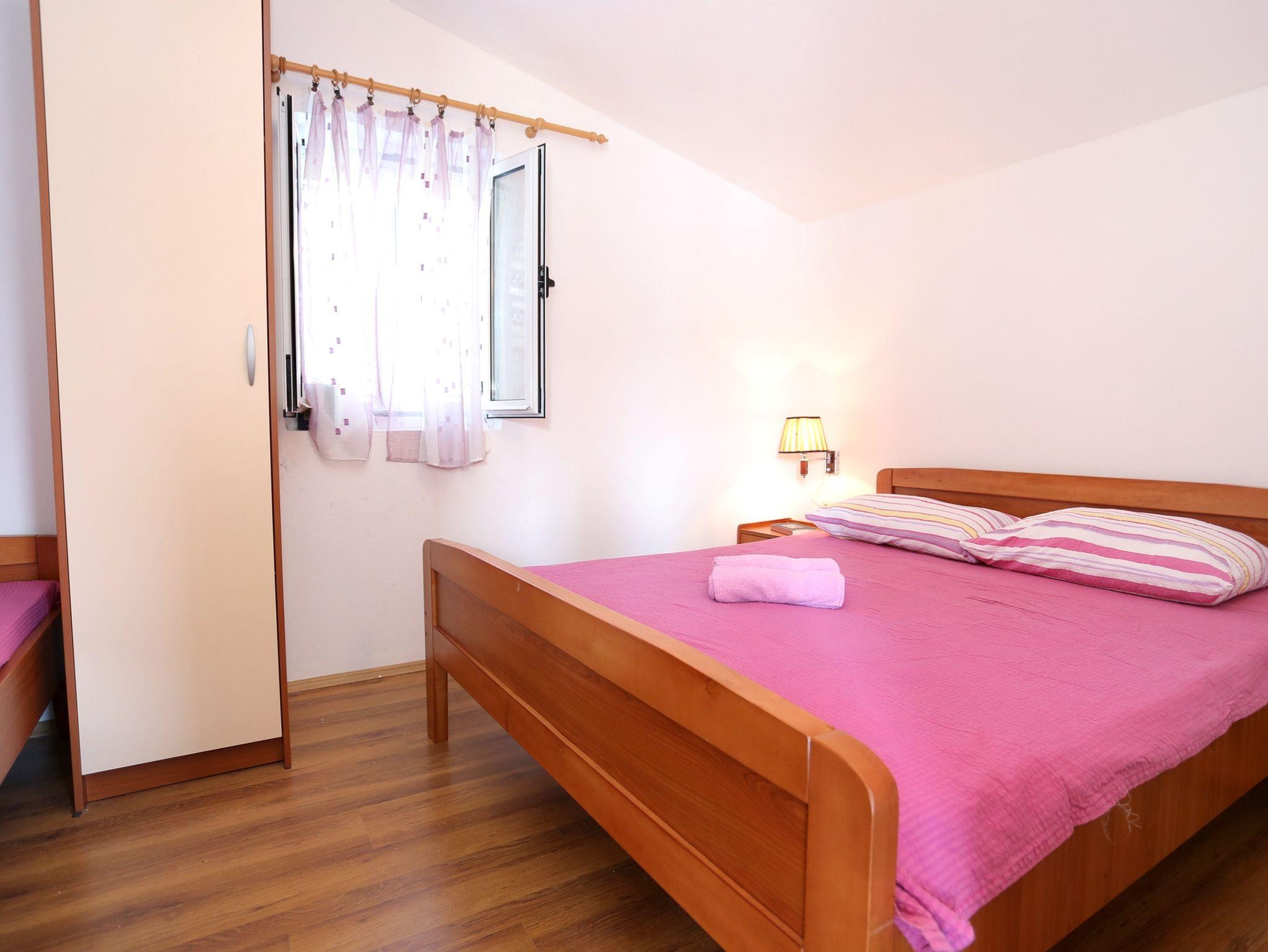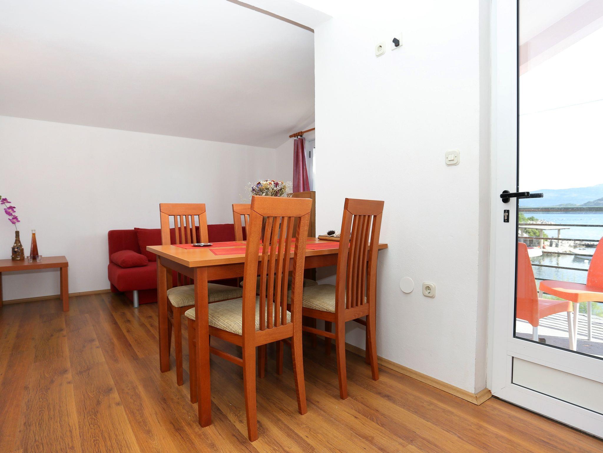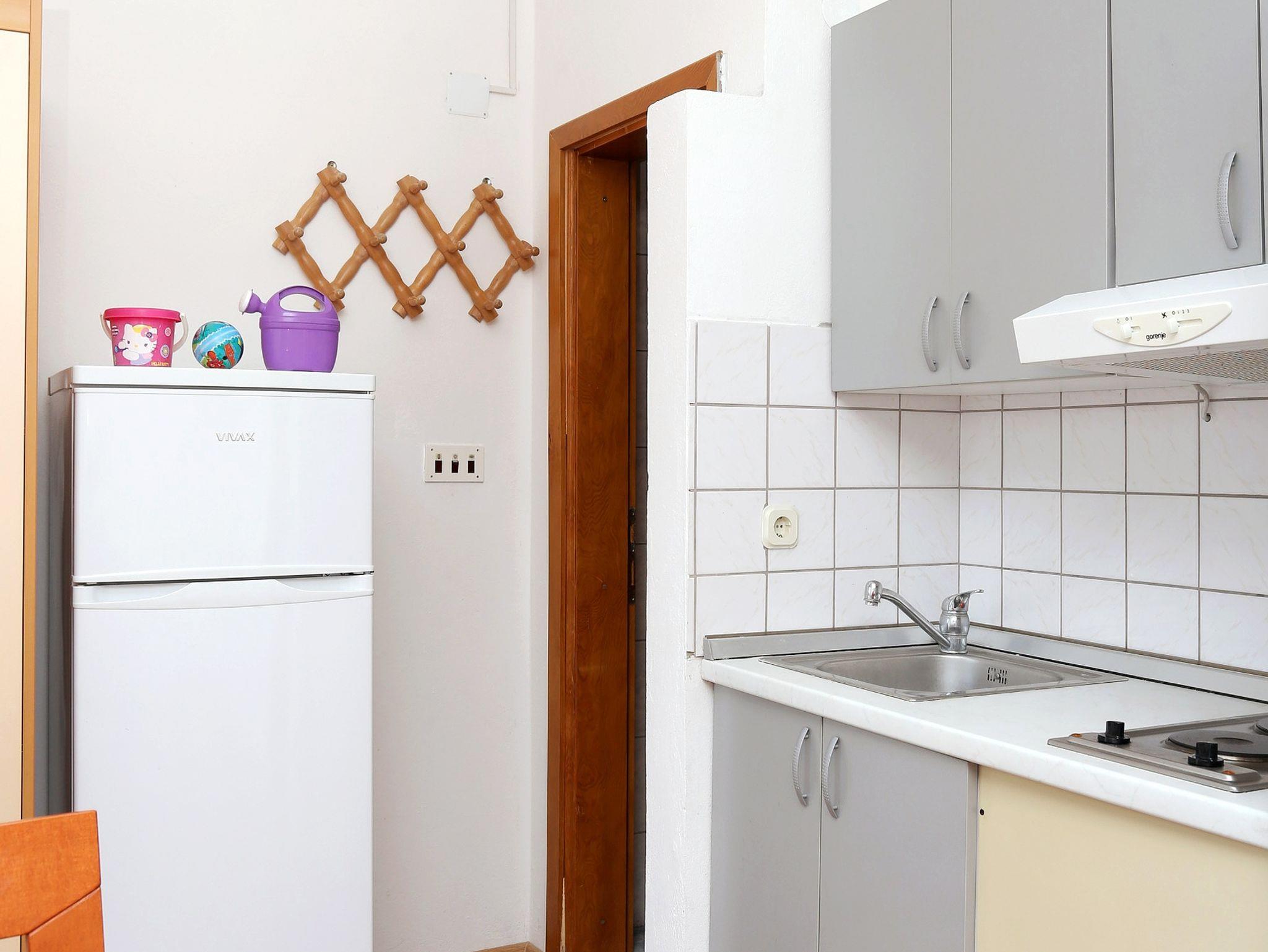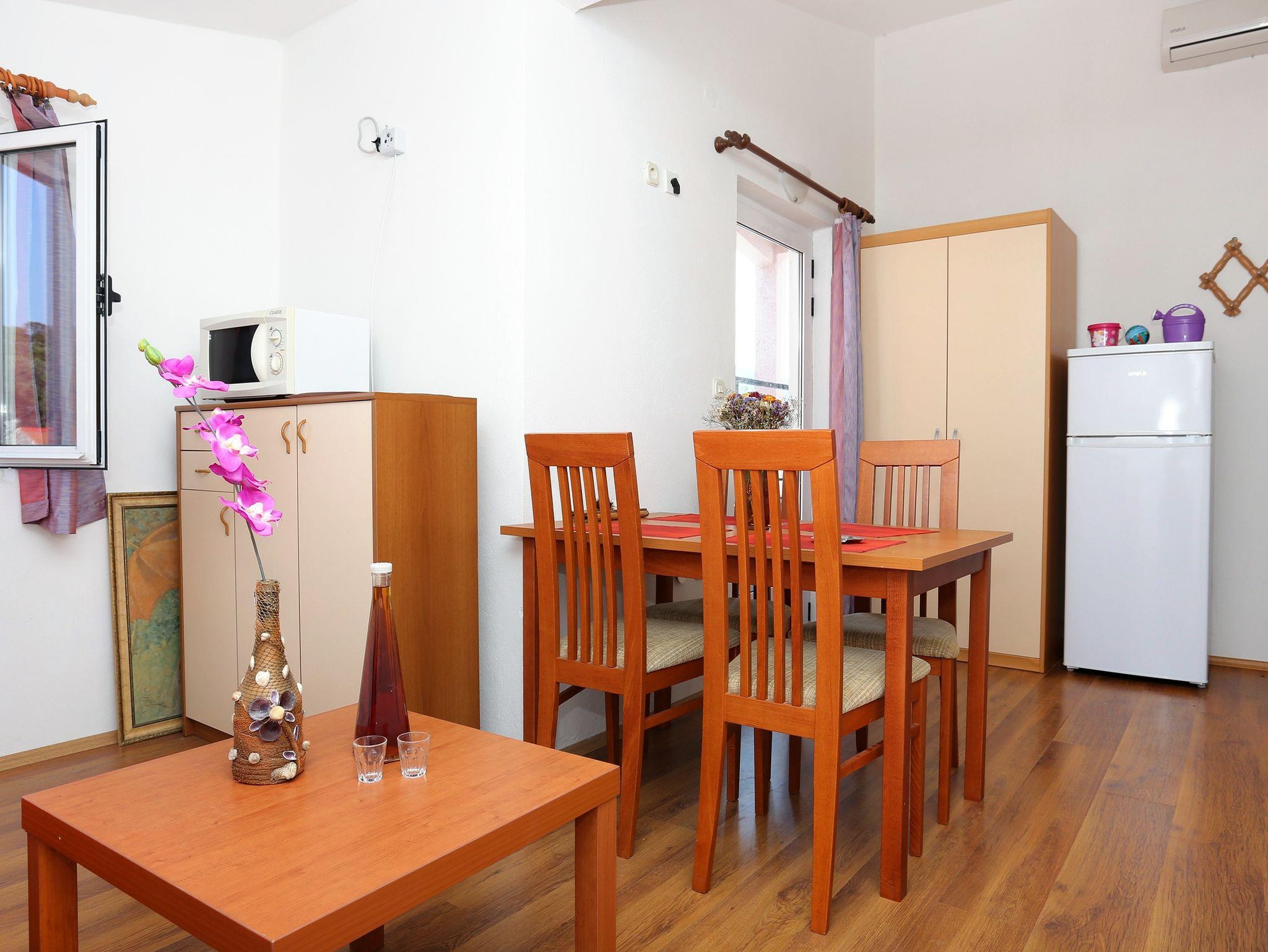 Ferienwohnung bietet Platz für 4 Gäste. Die Betten sind in Schlafzimmern, die es 1 gibt, und in Wohnzimmer, innerhalb einer Gesamtfläche von 30m2, angeordnet. Die Gäste haben eine eigene Terrasse zur Verfügung, auf der sie in warmen Sommernächten genießen können. Das Apartment bietet Meerblick. Es ist erlaubt, Speisen auf dem Gemeinschafts-Grill vorzubereiten. Durch die Terrasse der gebuchten Unterkunftseinheit gehen auch andere Gäste oder Vermieter. IM PREIS INBEGRIFFEN: Kurtaxe, Endreinigung, Klimatisierung, Parkplatz, Internet, Bügeleisen, Bügelbrett, Föhn, Sonnenschirm, Liegestühle. VERBINDLICHE ZUSÄTZLICHE KOSTEN: Aufzahlung für Kurzaufenthalte (prozentualer Zuschlag pro Nächtigungsanzahl: 30% - 1, 20% - 2, 10% - 3). Die Verfügbarkeit zusätzlicher Dienstleistungen in Ihrem reservierten Termin und die Preise derselben (falls nicht aufgeführt) müssen im Voraus überprüft werden. Zusätzliche Dienstleistungen die in der Zahlungsaufforderung nicht aufgeführt sind werden direkt beim Vermieter bezahlt, angenommen der Gast nutzt auch diese. Ermäßigung auf den Grundpreis: Gratistag 28=25 (bei einem Aufenthalt von 28 oder mehr Tagen erhalten Sie 3 kostenlose Tage für den Aufenthalt bis 31.12.26).