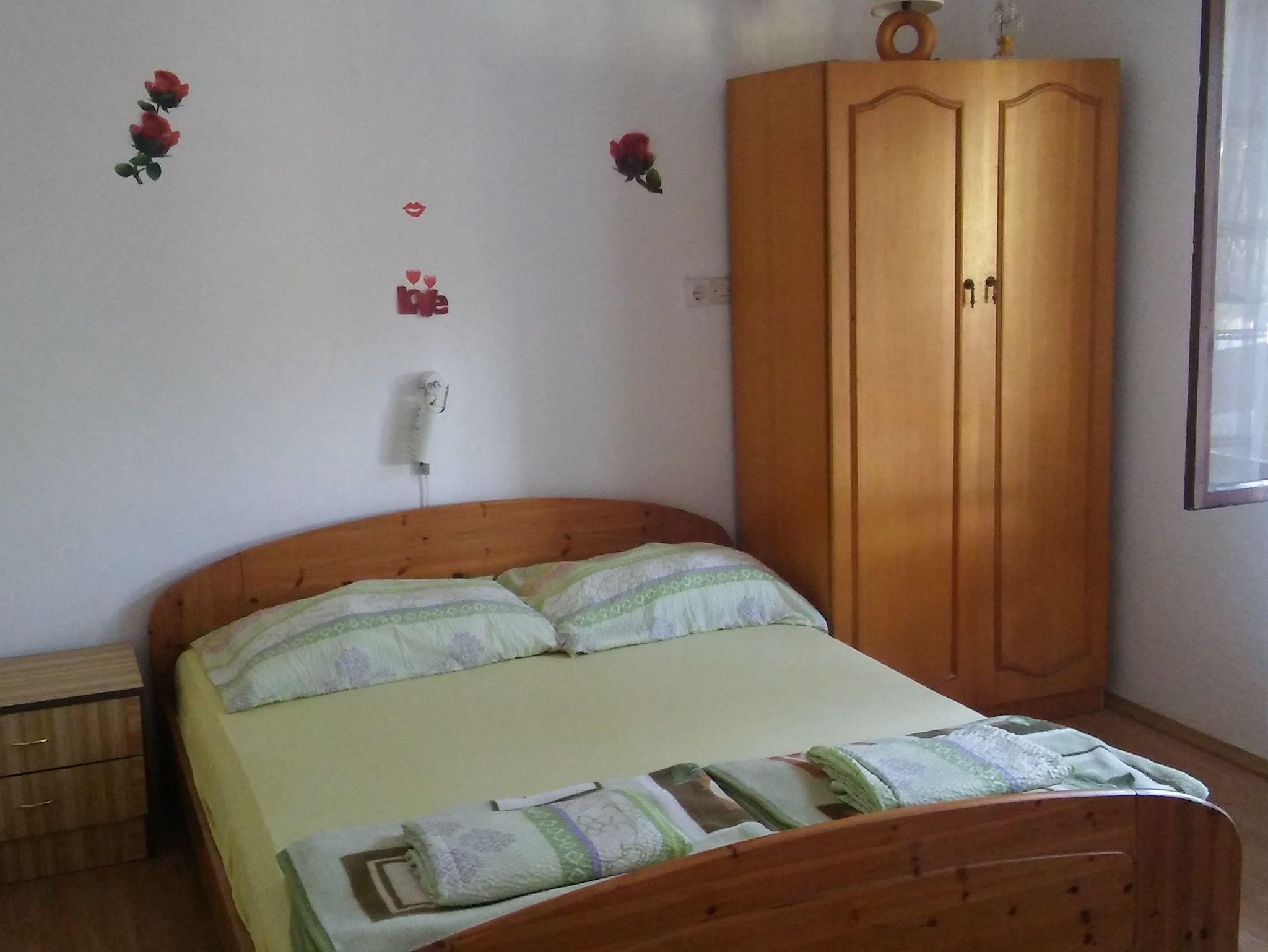 Ferienwohnung bietet Platz für 6 Gäste. Die Betten sind in Schlafzimmern, die es 2 gibt, innerhalb einer Gesamtfläche von 50m2, angeordnet. Die Gäste haben eine eigene Terrasse zur Verfügung, auf der sie in warmen Sommernächten genießen können. Das Apartment bietet Meerblick. Es ist erlaubt, Speisen auf dem Gemeinschafts-Grill vorzubereiten. IM PREIS INBEGRIFFEN: Kurtaxe, Endreinigung, Klimatisierung, Parkplatz, Garage, Internet, Wäschewaschen, Bootsanlegeplatz, Bügeleisen, Bügelbrett, Föhn, Liegestühle. VERBINDLICHE ZUSÄTZLICHE KOSTEN: Aufzahlung für Kurzaufenthalte (prozentualer Zuschlag pro Nächtigungsanzahl: 30% - 1, 20% - 2, 10% - 3). Die Verfügbarkeit zusätzlicher Dienstleistungen in Ihrem reservierten Termin und die Preise derselben (falls nicht aufgeführt) müssen im Voraus überprüft werden. Zusätzliche Dienstleistungen die in der Zahlungsaufforderung nicht aufgeführt sind werden direkt beim Vermieter bezahlt, angenommen der Gast nutzt auch diese.