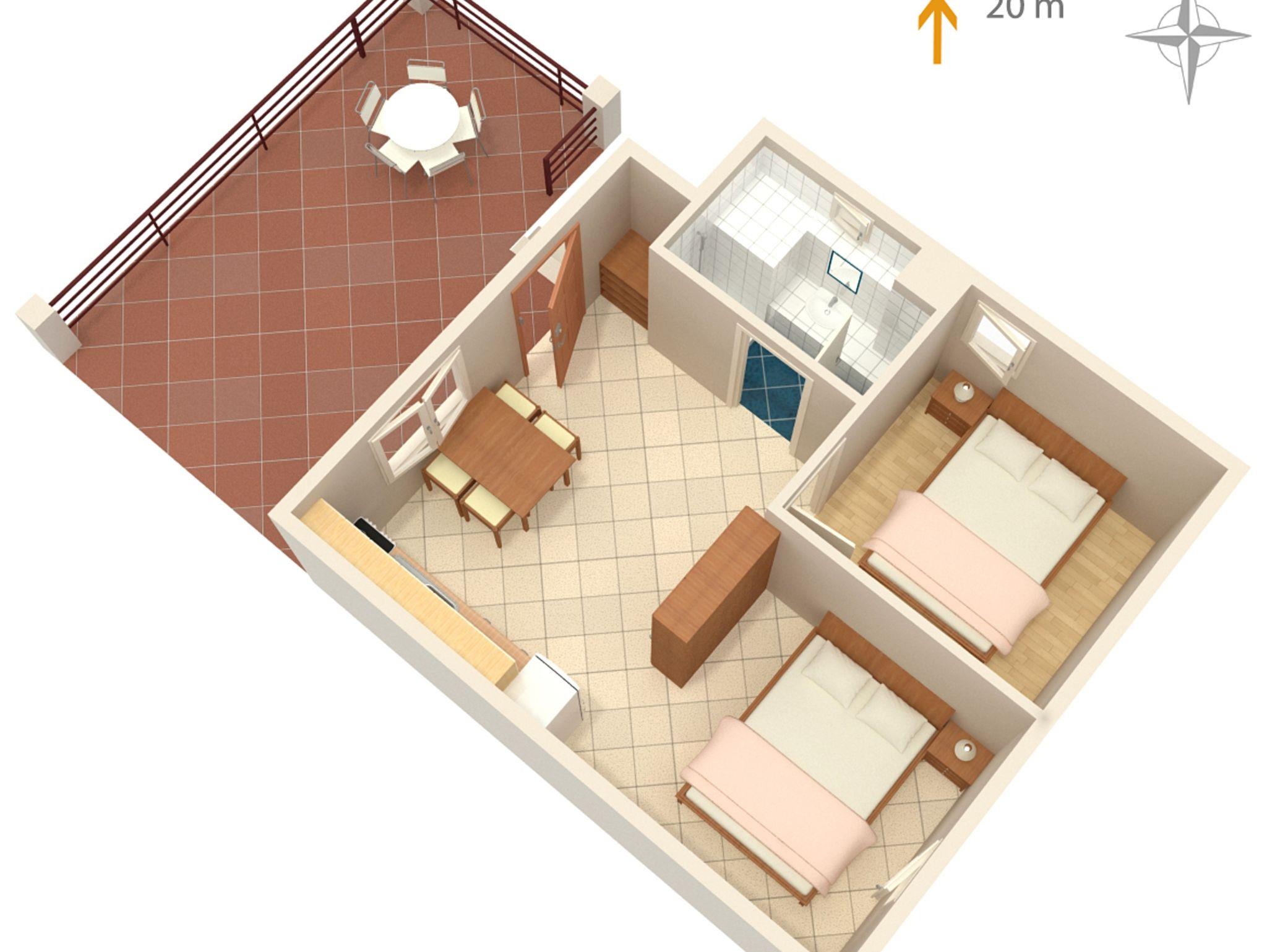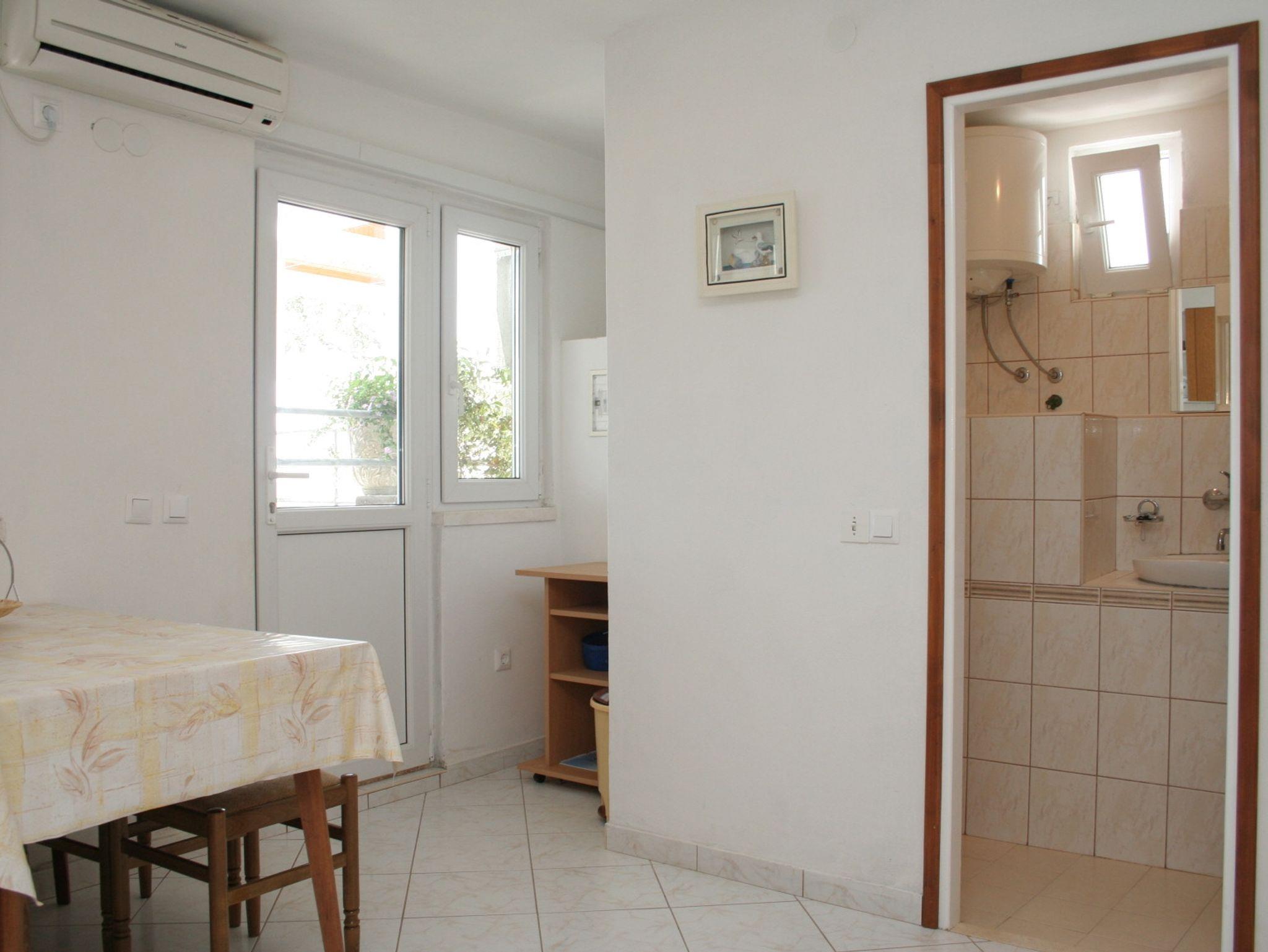 Ferienwohnung bietet Platz für 4 Gäste. Die Betten sind in Schlafzimmern, die es 1 gibt, und in Wohnzimmer, innerhalb einer Gesamtfläche von 27m2, angeordnet. Die Gäste haben eine eigene Terrasse zur Verfügung, auf der sie in warmen Sommernächten genießen können. Das Apartment bietet Meerblick. Es ist erlaubt, Speisen auf dem Gemeinschafts-Grill vorzubereiten. IM PREIS INBEGRIFFEN: Kurtaxe, Endreinigung, Klimatisierung, Parkplatz, Internet, Bootsanlegeplatz, Bügeleisen, Bügelbrett, Liegestühle. VERBINDLICHE ZUSÄTZLICHE KOSTEN: Aufzahlung für Kurzaufenthalte (prozentualer Zuschlag pro Nächtigungsanzahl: 30% - 1, 20% - 2, 10% - 3). Die Verfügbarkeit zusätzlicher Dienstleistungen in Ihrem reservierten Termin und die Preise derselben (falls nicht aufgeführt) müssen im Voraus überprüft werden. Zusätzliche Dienstleistungen die in der Zahlungsaufforderung nicht aufgeführt sind werden direkt beim Vermieter bezahlt, angenommen der Gast nutzt auch diese. Ermäßigung auf den Grundpreis: Gratistag 14=13 (bei einem Aufenthalt von 14 Tagen oder mehr erhalten Sie einen Gratistag für den Aufenthalt bis 31.12.26).