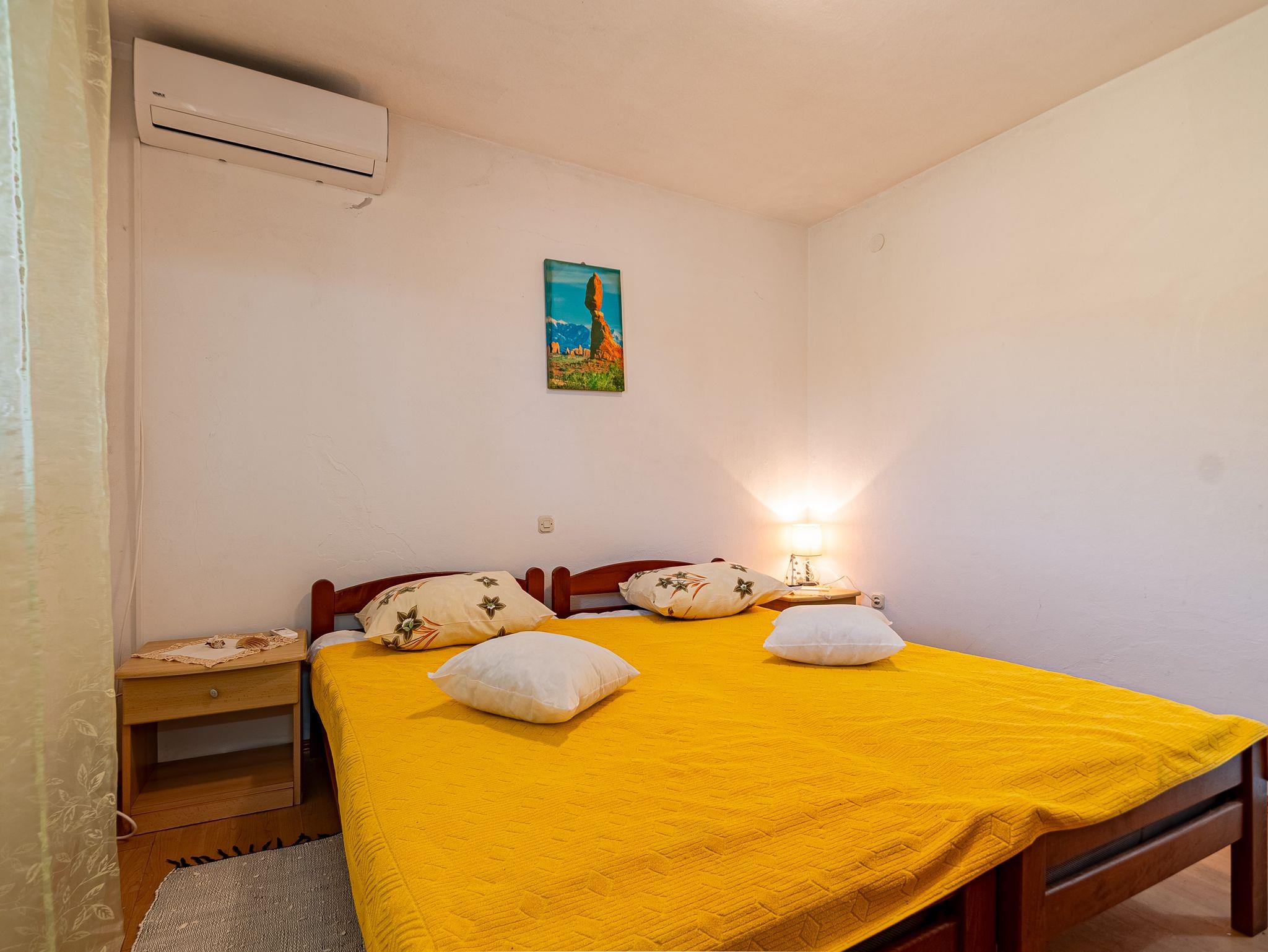 Ferienwohnung bietet Platz für 5 Gäste. Die Betten sind in Schlafzimmern, die es 2 gibt, innerhalb einer Gesamtfläche von 53m2, angeordnet. Die Gäste haben eine eigene Terrasse zur Verfügung, auf der sie in warmen Sommernächten genießen können. Das Apartment bietet Meerblick. Es ist erlaubt, Speisen auf dem Gemeinschafts-Grill vorzubereiten. IM PREIS INBEGRIFFEN: Kurtaxe, Endreinigung, Klimatisierung, Parkplatz, Internet, Bootsanlegeplatz. Die Verfügbarkeit zusätzlicher Dienstleistungen in Ihrem reservierten Termin und die Preise derselben (falls nicht aufgeführt) müssen im Voraus überprüft werden. Zusätzliche Dienstleistungen die in der Zahlungsaufforderung nicht aufgeführt sind werden direkt beim Vermieter bezahlt, angenommen der Gast nutzt auch diese. Ermäßigung auf den Grundpreis: Gratistag 14=13 (bei einem Aufenthalt von 14 Tagen oder mehr erhalten Sie einen Gratistag für den Aufenthalt bis 31.12.26).