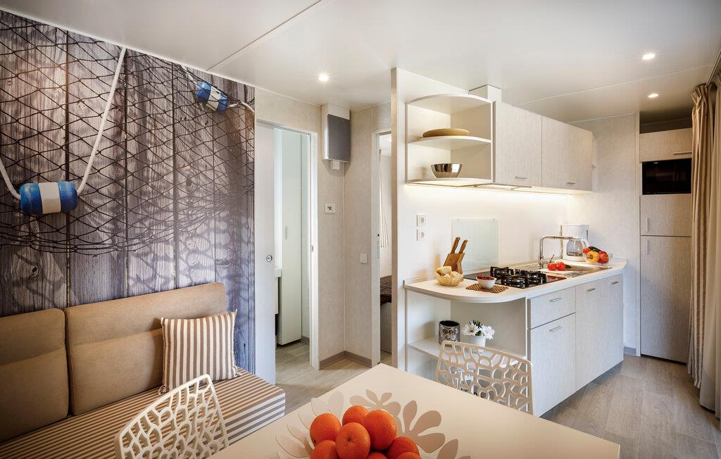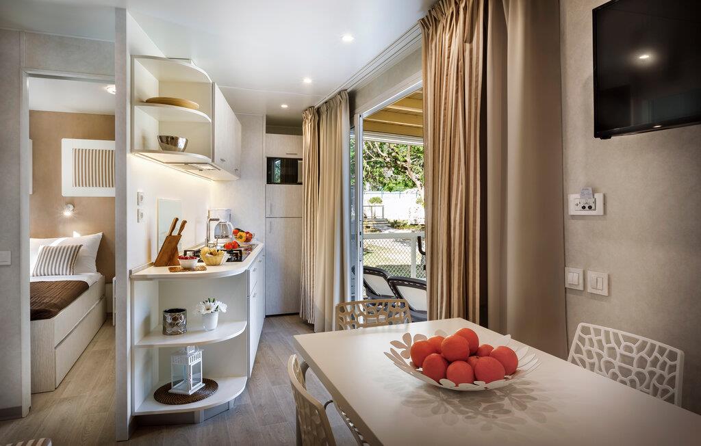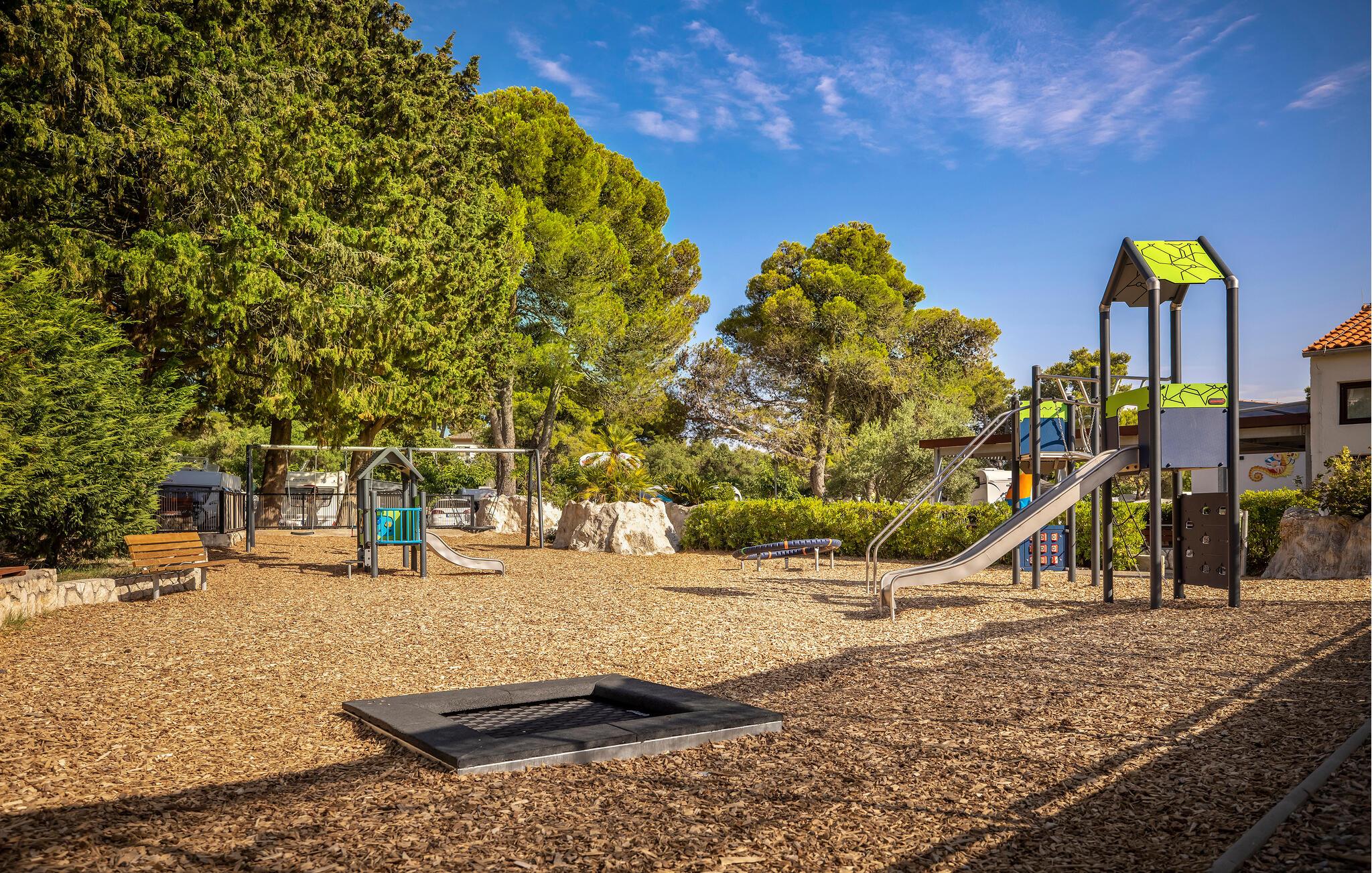 Jeres dejlige veranda er det perfekte sted at nyde middelhavsatmosfæren, mens I nyder morgenmaden. Bagefter kan I slentre til den store pool eller stranden, lade batterierne op på en liggestol og lade børnene have det sjovt med de dejlige legeredskaber i det fælles udendørsområde.