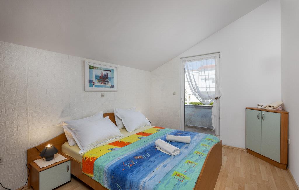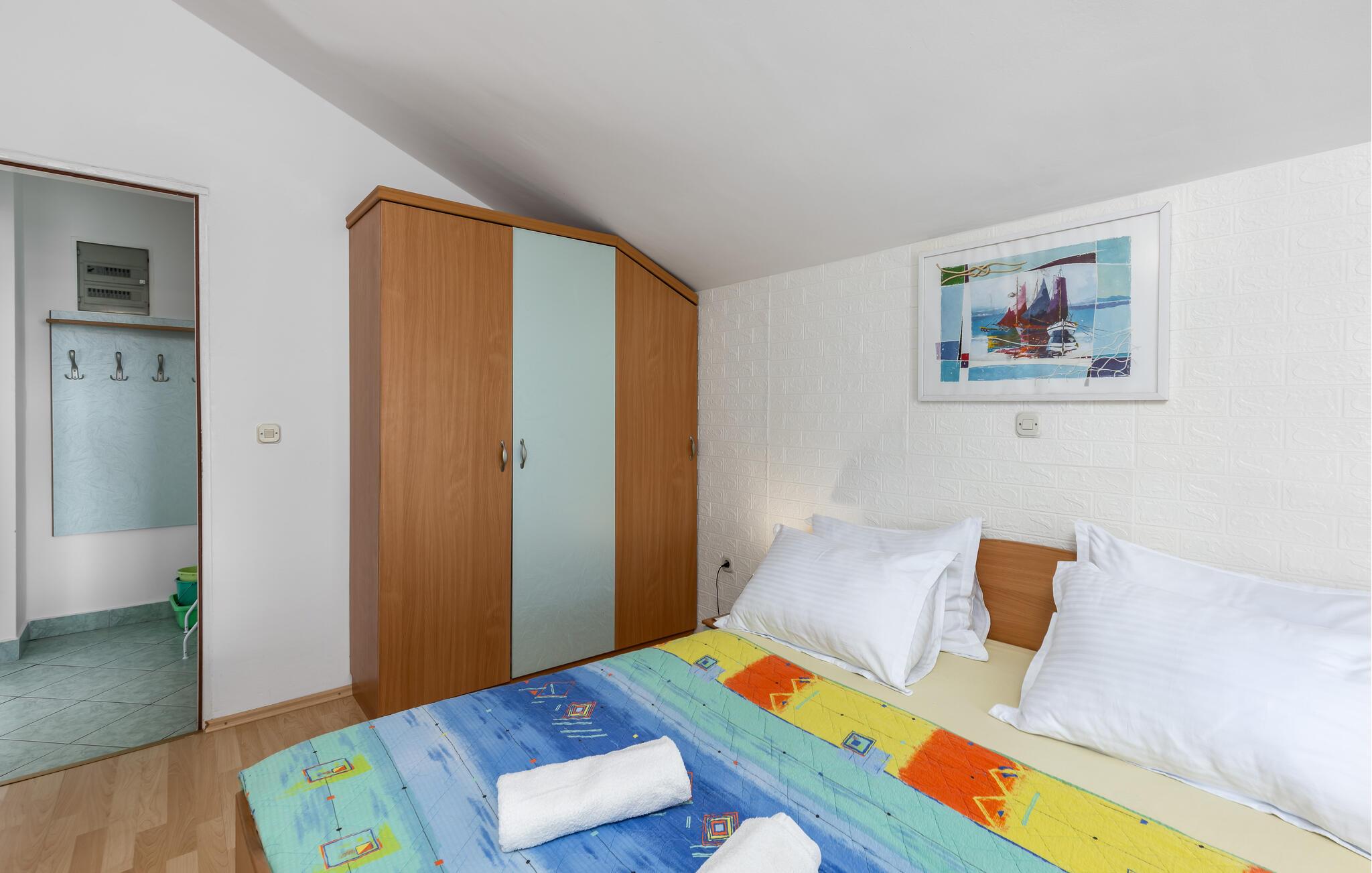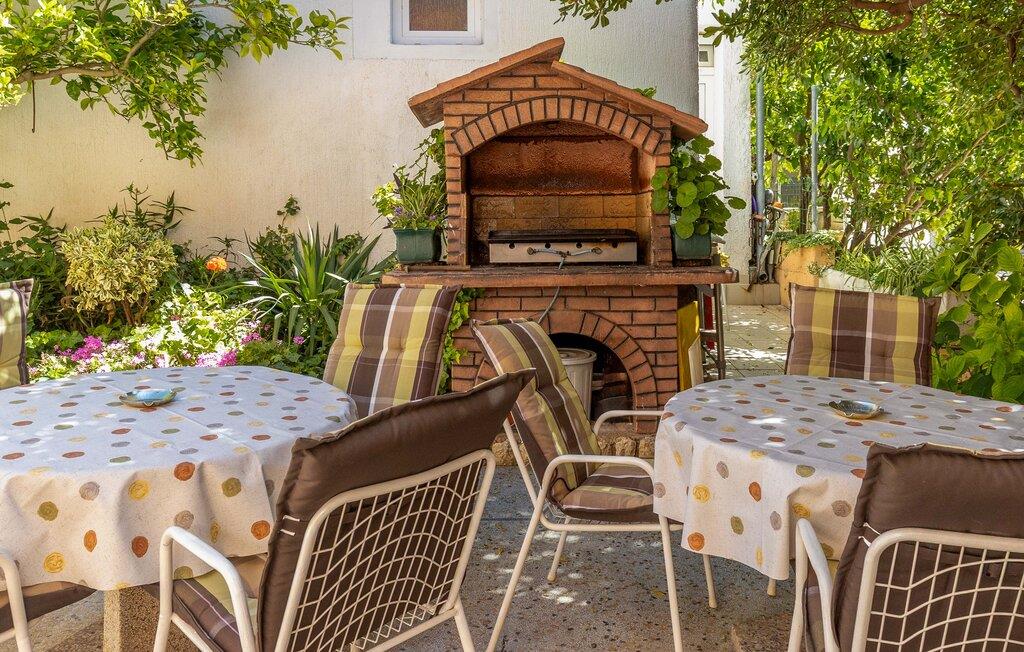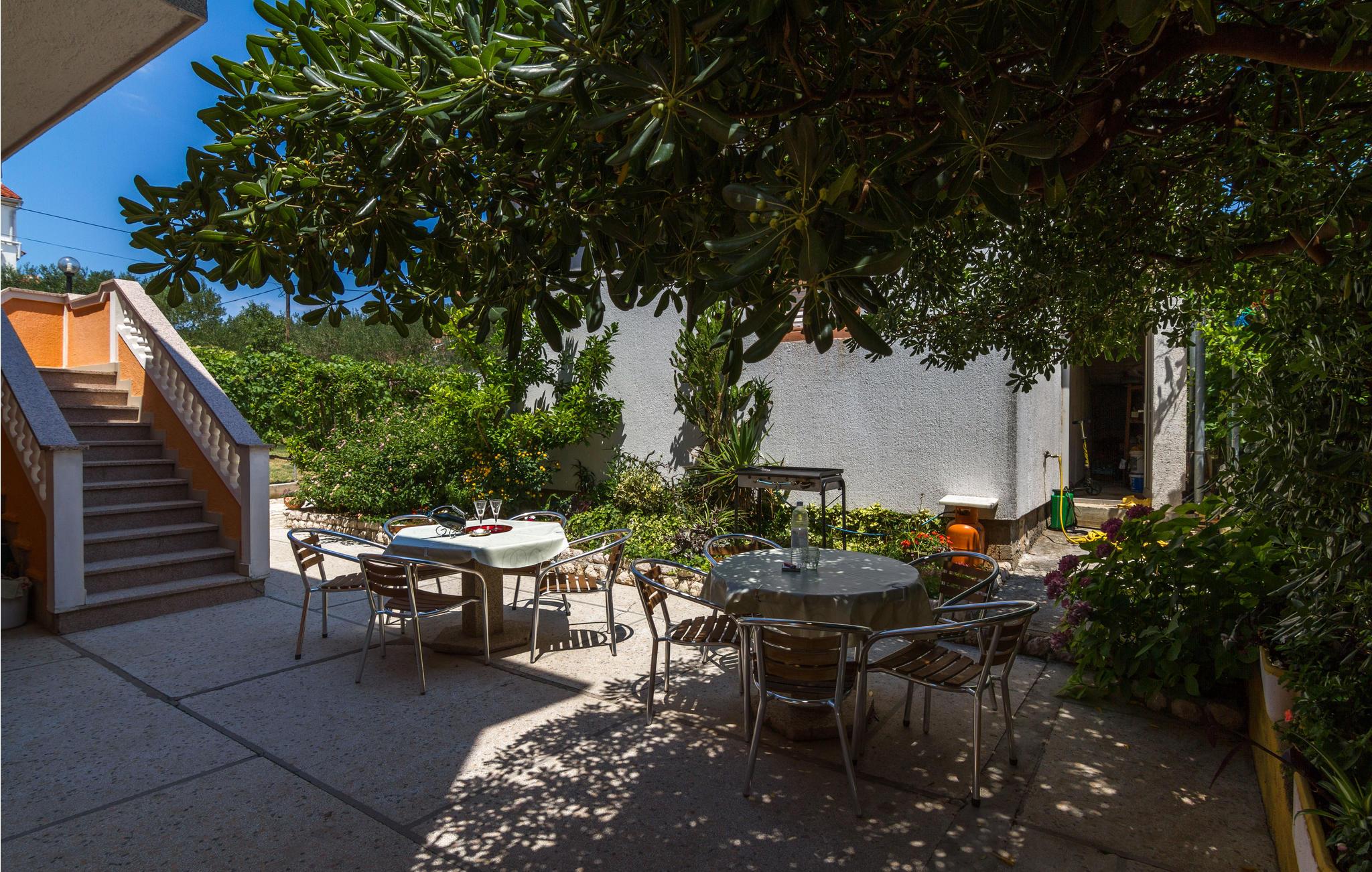 Denne lejlighed ligger placeret på 1. sal og er ideel til en familie. I kommer til at bo tæt på stranden i et roligt område, så placeringen er helt perfekt. Der er hyggelige forhold indenfor, og hvis I gerne vil nyde solen uden at pakke en taske, kan I bare sætte jer ud på terrassen. Tænd op i fællesgrillen og tilbered noget lækkert fra Kroatiens rige udvalg af råvarer.