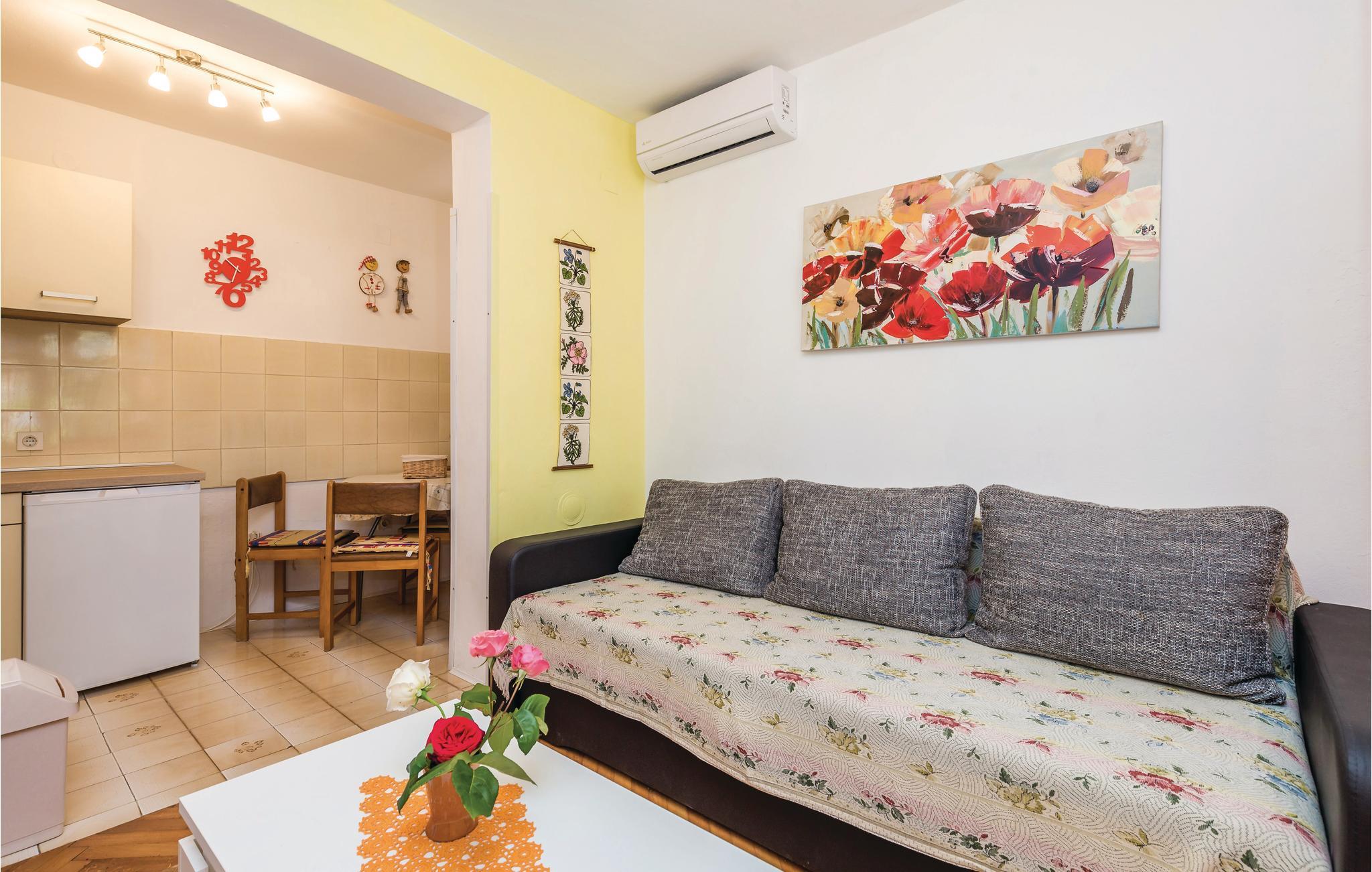 Kun få skridt fra en lille stille sandstrand byder denne velholdte ferielejlighed velkommen, hvor I kan nyde en romantisk ferie som par eller som en lille familie. Tilbered lækre måltider i det praktiske køkken og nyd dem ved det indbydende spisebord. Slap af i den komfortable sofa om aftenen, planlæg jeres aktiviteter eller nyd rolige timer med en spændende bog.