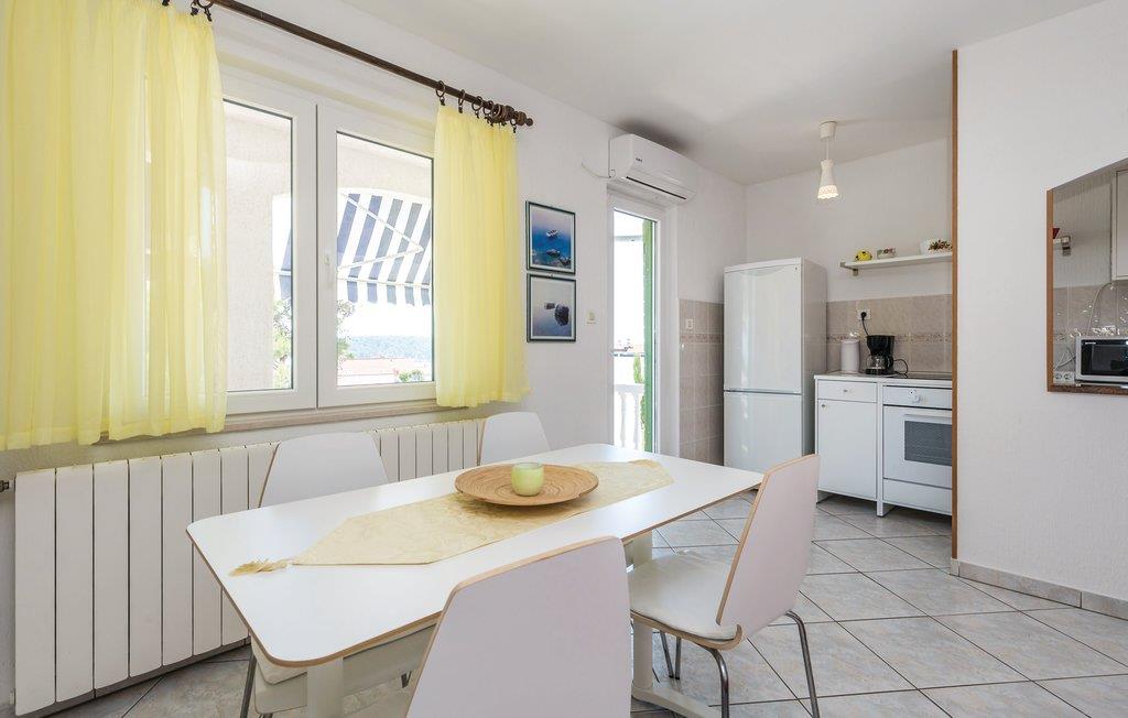 Hold jeres ferie på den solforkælede lille ø Rab, og oplev årets skønneste uger i en dejlig ferielejlighed i byen Barbat. I har adgang til en fælles pool. Denne rummelige ferielejlighed ligger på første sal med en altan hvorfra der er havudsigt. På grunden står en fælles grill, hvor I kan lave nem og lækker feriemad. De nærmeste kiesstrande kan I nå på få minutter, mens den populære sandstrand Pudarica, i begyndelsen af Barbat, forbundet med Rab med en seks kilometer lang promenade, som både elskes af cyklister og de der holder af at gå tur.