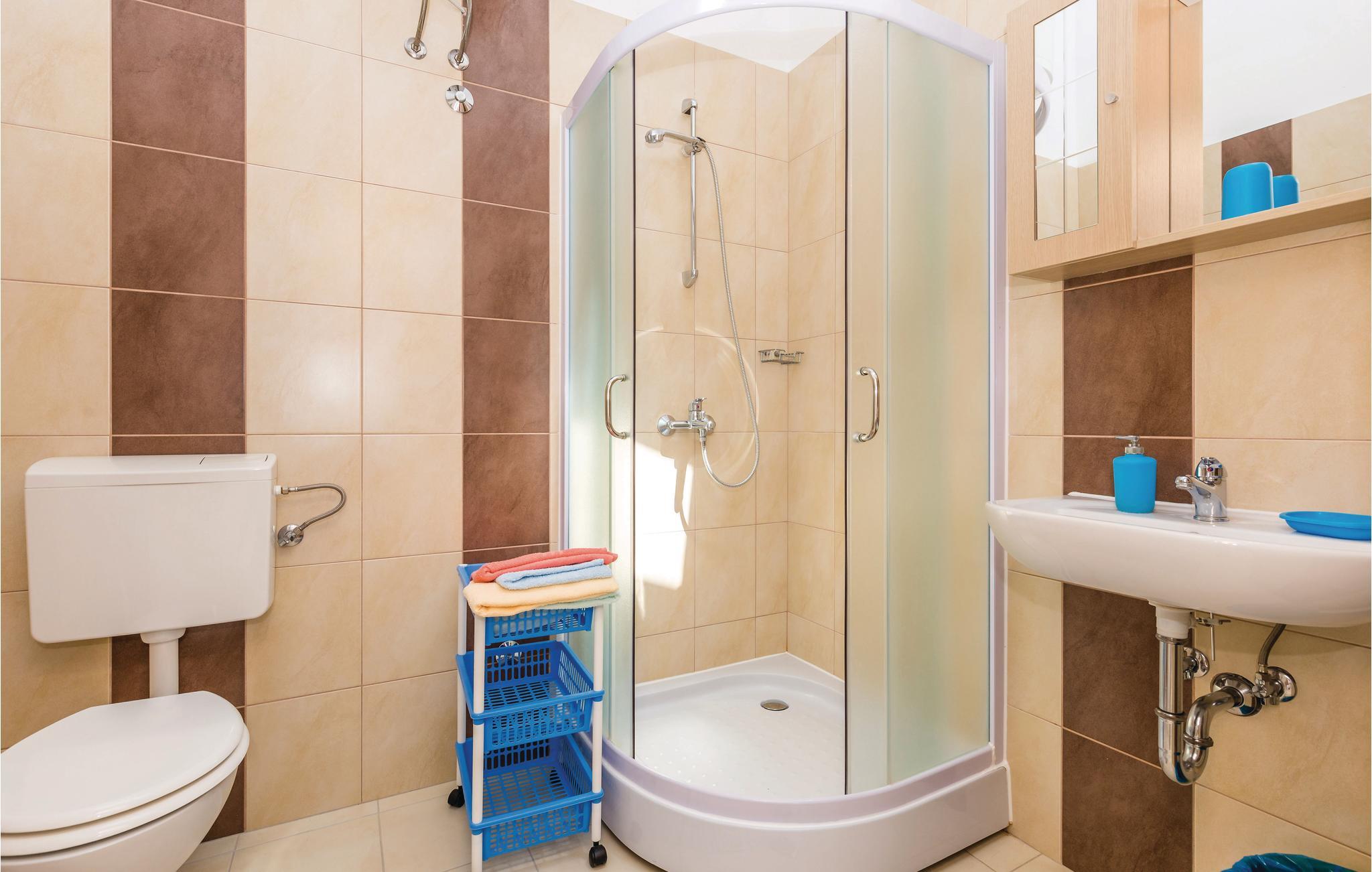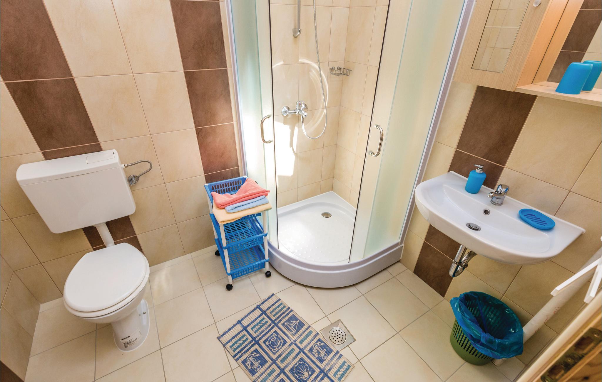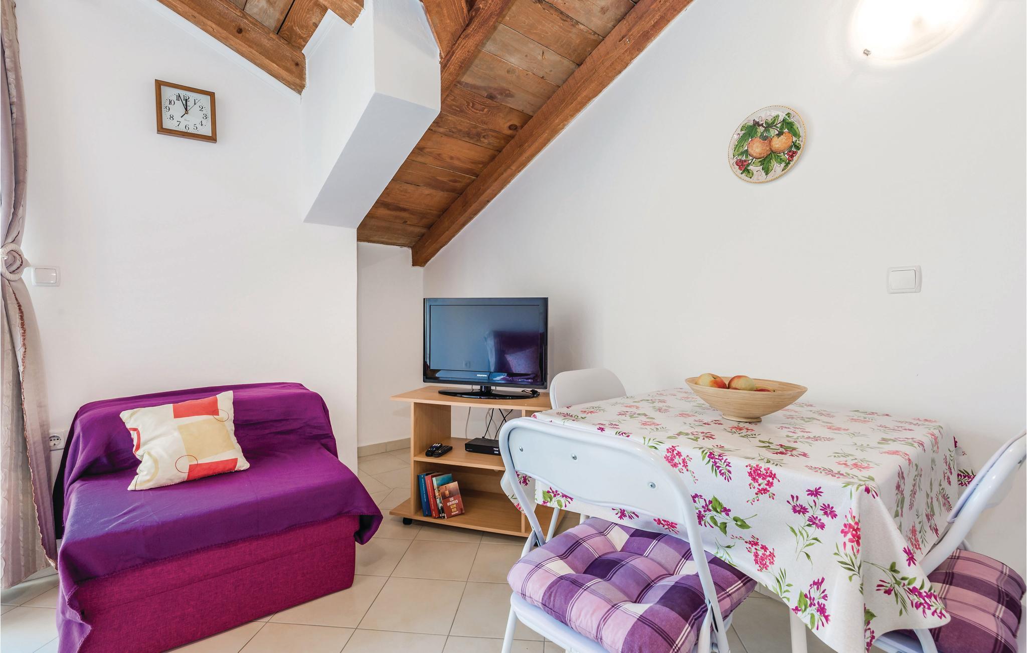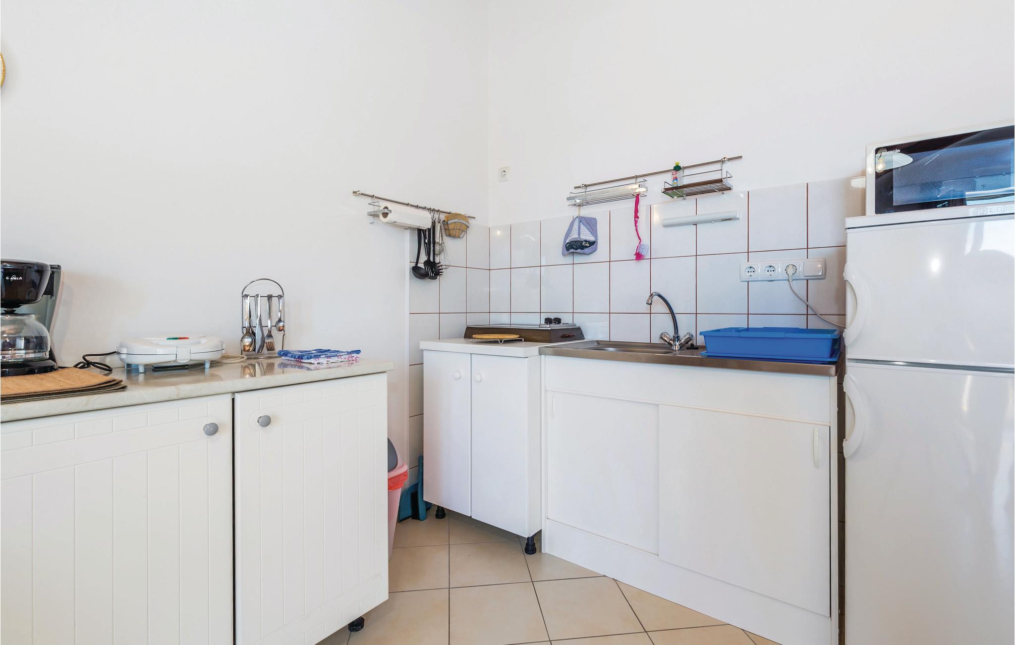 I et beboelseshus ligger disse enkelt indrettede ferielejligheder. Fra havet adskiller jer kun den lokale vej, der også fører til naboernes privathuse. I kan bestille disse to ferielejligheder sammen, hvis I vil holde ferie med en større familie eller venner. Så kan I nyde ferien sammen på denne skønne ø. I stueetagen bor den venlige ejer, der er til jeres rådighed under jeres ophold. Vi anbefaler et besøg på restauranter, hvor I foruden fiskeretter også kan smage de kendte kager fra Rab. Den laveste loftshøjde er 90 cm.