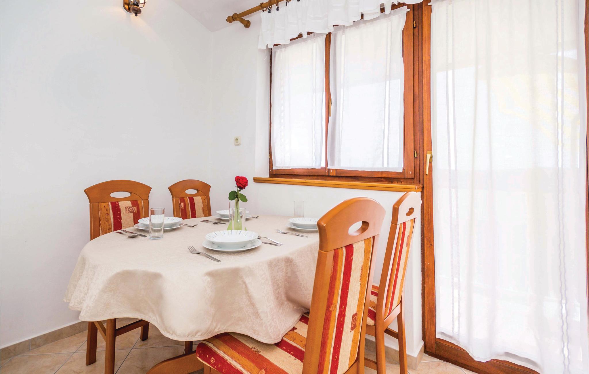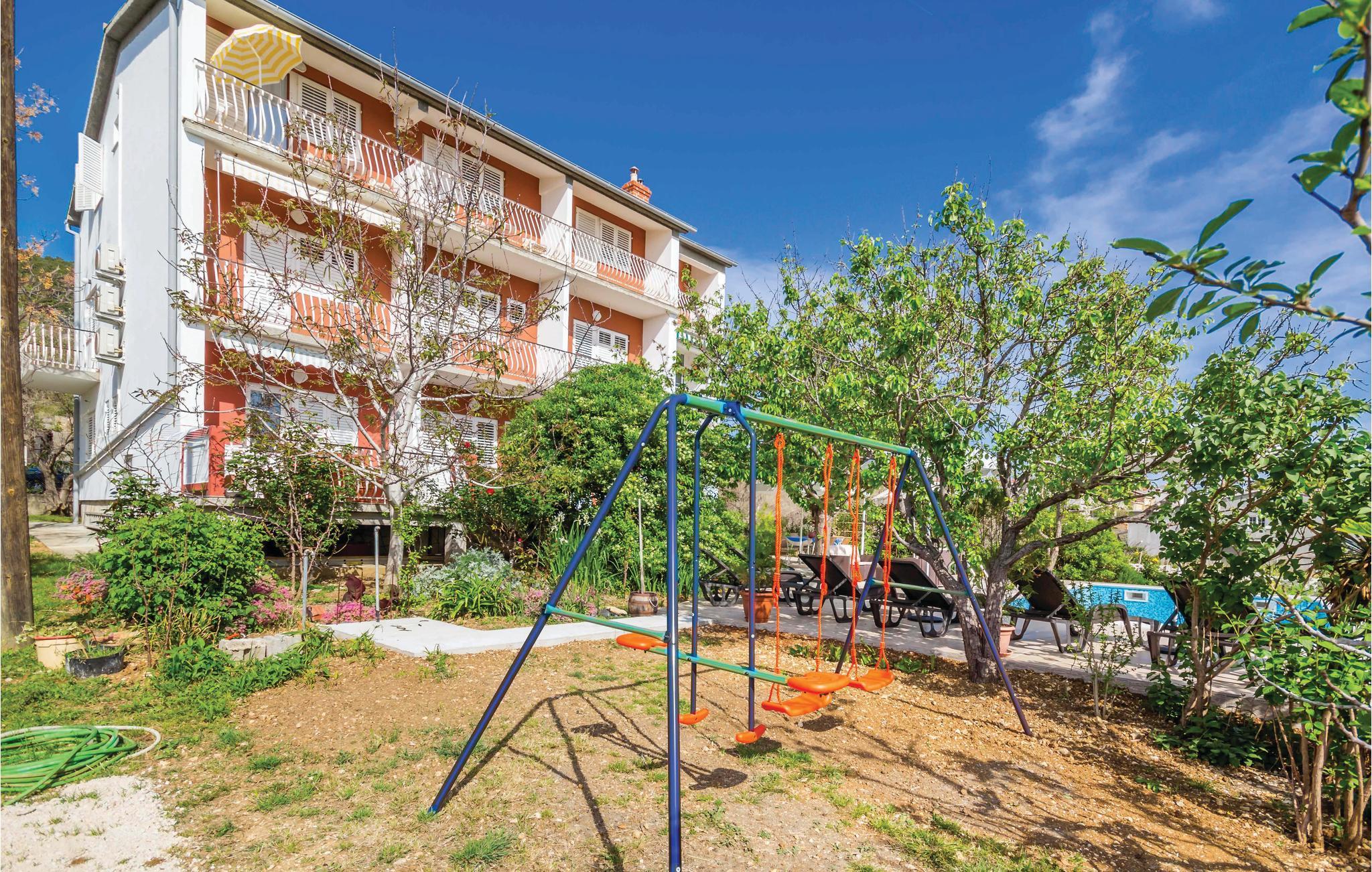 Komfortabel ferielejlighed i den rolige del af Barbat og neden for gaden Misnjak-Rab. Der er flere lejligheder i huset, alle med særskilte indgange. Denne lejlighed ligger på anden sal, der samtidig er tagetage med laveste loftshøjde på ca. 150 cm. Slap af i den enkelt og praktisk indrettede ferielejlighed, og nyd udsigten over havet fra den overdækkede balkon. På den fælles grund kan I spille bordtennis eller sidde hyggeligt sammen om aftenen og grille. I nærheden er der forskellige strande og en kystpromenade til Rab, hvor I kan opleve meget dejligt.