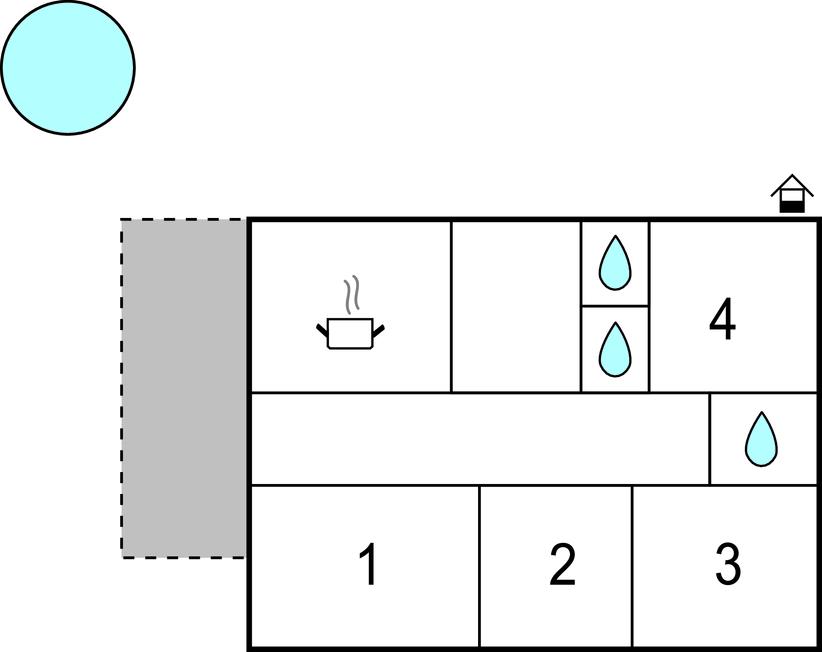 Badeværelse 3m2 (nr. 1) - WC. Varmt og koldt vand. Bruser