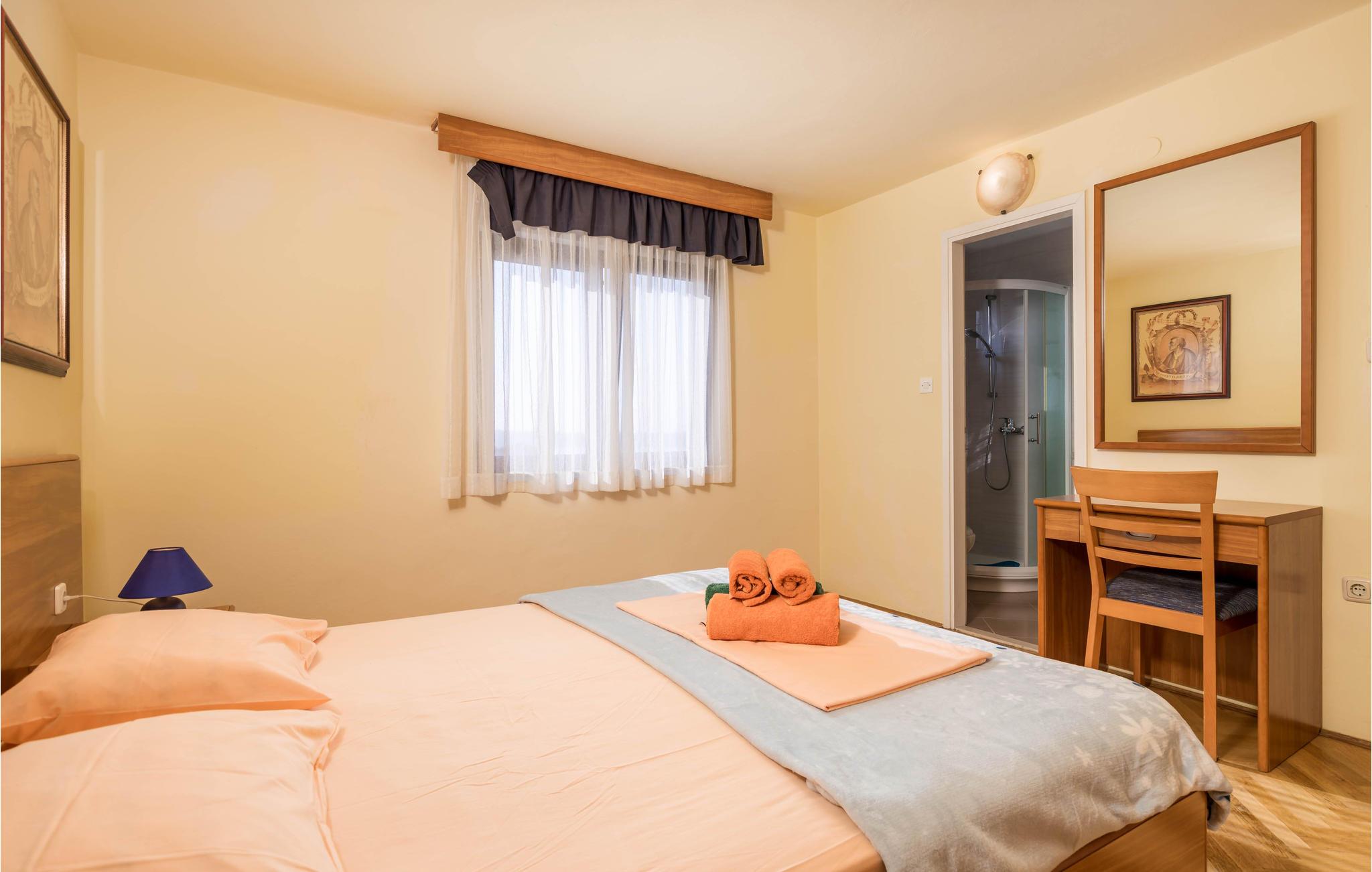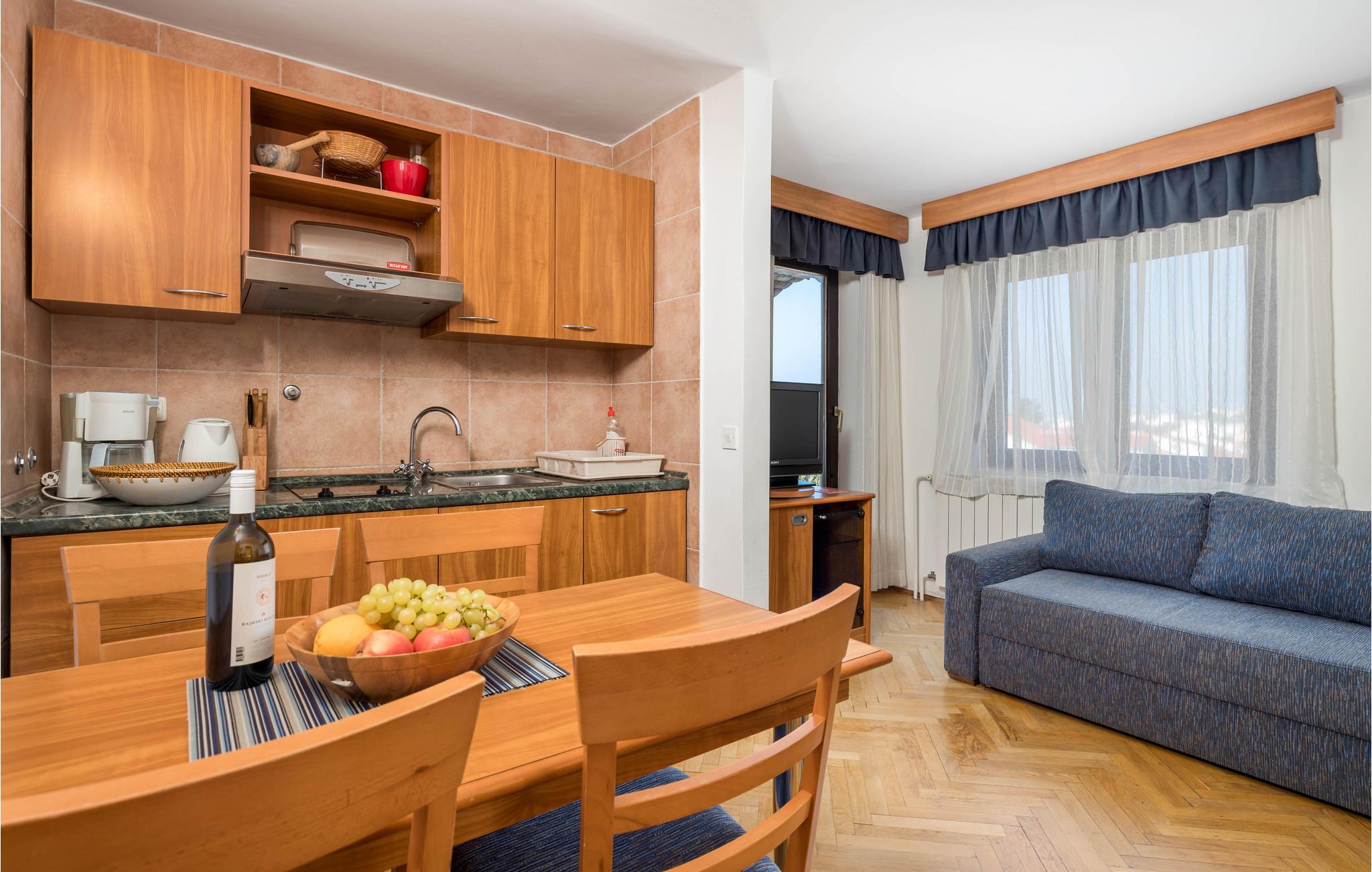 Denne praktiske og fuldt udstyrede ferielejlighed i Barbat på øen Rab ligger på 2. sal. Ferielejligheden er velegnet til en stor familie eller to familier, fordi antallet af soveværelser med badeværelser en suite sørger for privatliv til alle. Flere balkoner giver jer en fantastisk udsigt til havet og øen Dolin. Nyd morgenkaffen i den friske luft og planlæg dagens aktiviteter.