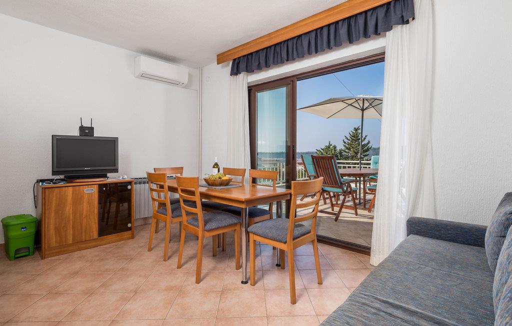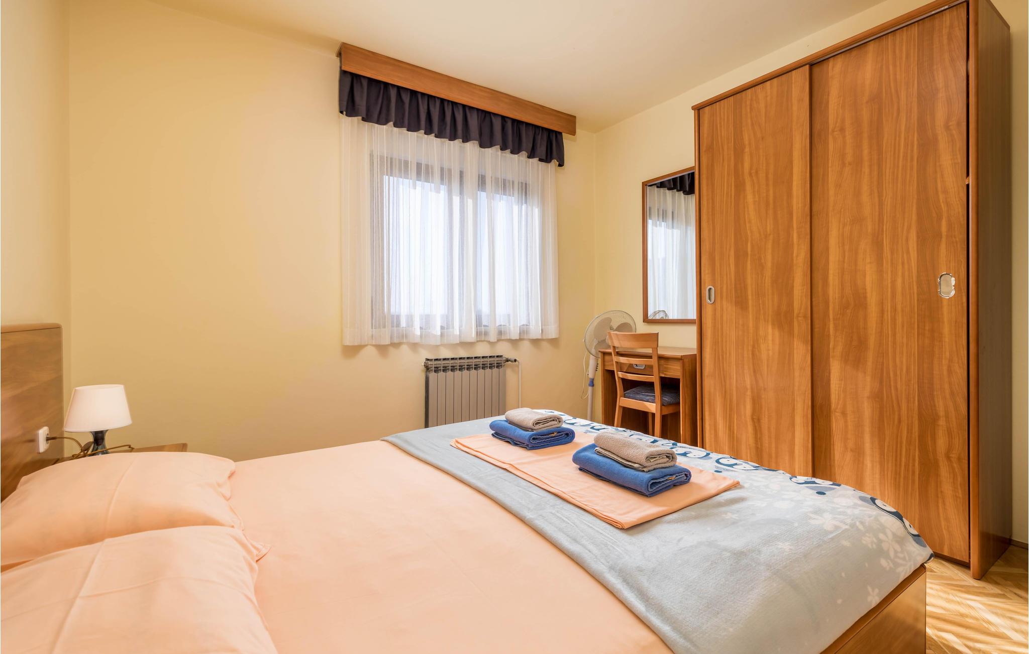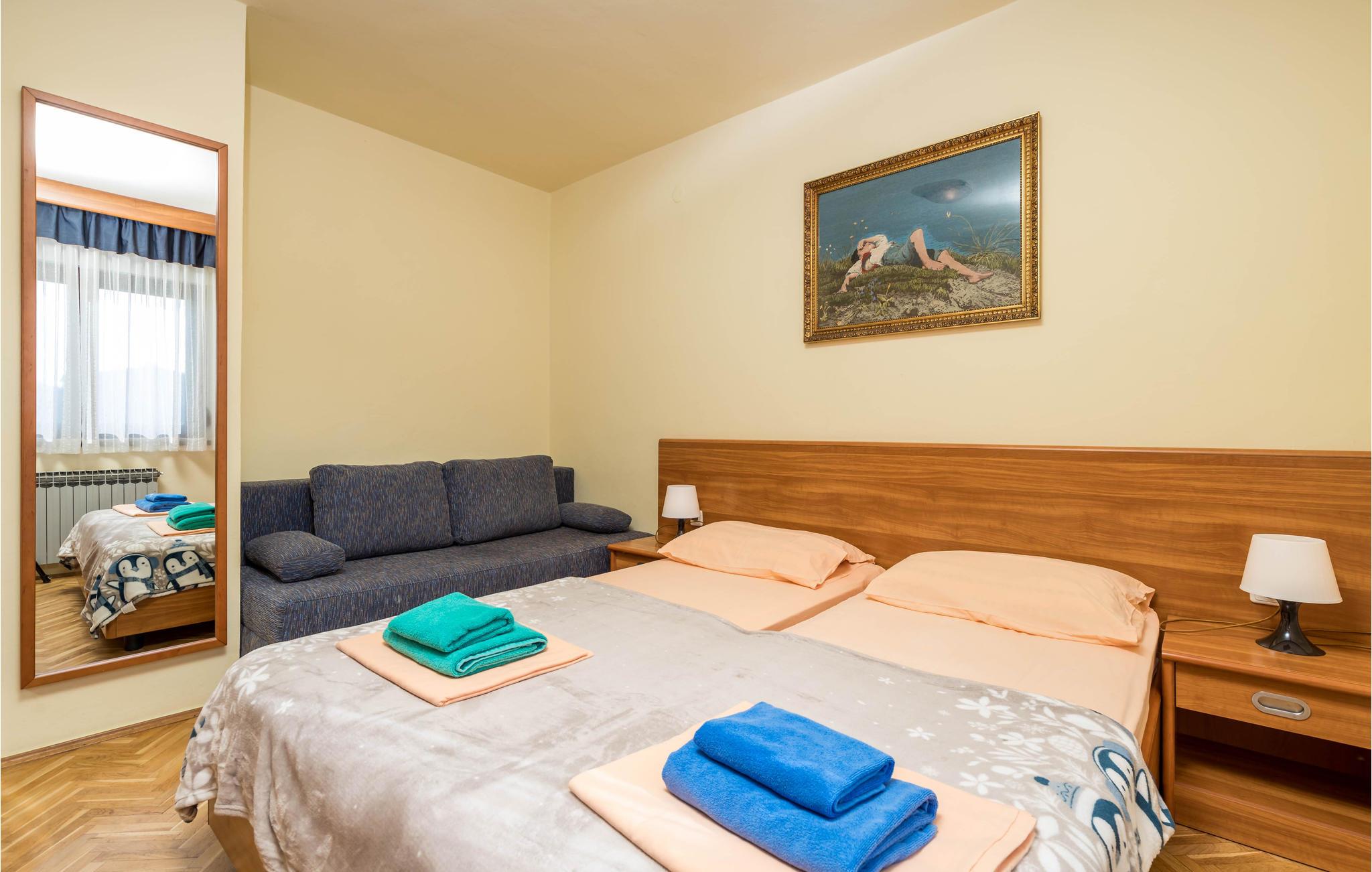 Denne praktiske og fuldt udstyrede ferielejlighed i Barbat på øen Rab ligger på 1. sal. Ferielejligheden er velegnet til en stor familie eller to familier, fordi antallet af soveværelser med badeværelser en suite sørger for privatliv til alle. Flere balkoner giver jer en fantastisk udsigt til havet og øen Dolin. Nyd morgenkaffen i den friske luft og planlæg dagens aktiviteter.