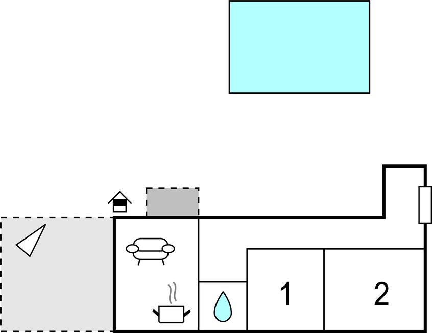 Komb. spisestue/køkken 14m2 - 1 Soveplads. (Sofa, madras eller lignende).