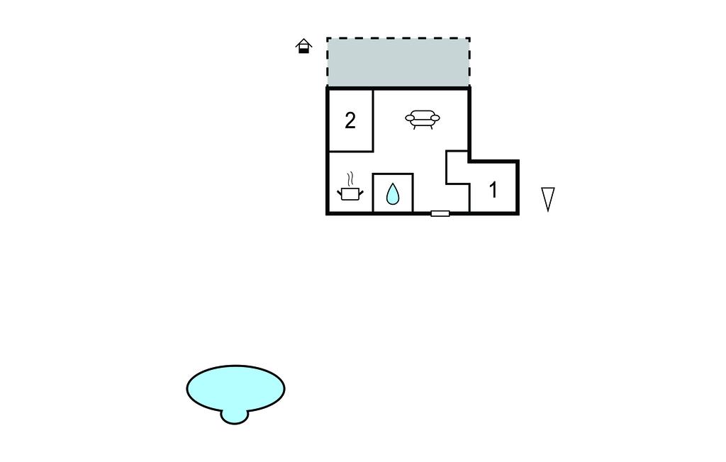 Opholdsstue/køkken 26m2 - 2 Sovepladser. (Sofa, madras eller lignende).