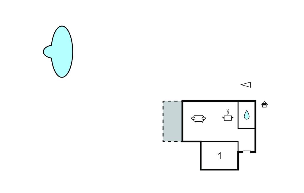 Opholdsstue/køkken 26m2 - 2 Sovepladser. (Sofa, madras eller lignende).