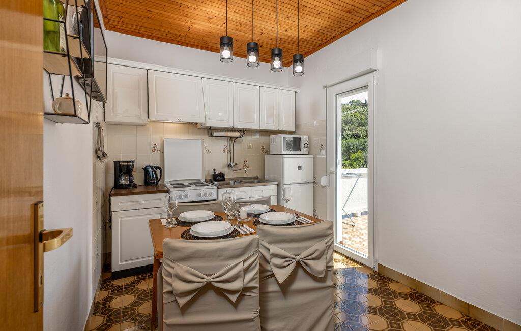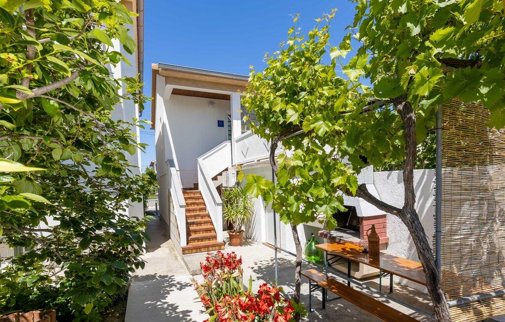 Ved siden af hovedbygningen i et mindre hus, ovenover garagen, ligger denne ferielejlighed. Langt fra yens larm og menneskemasser kan I finde den nødvendige ro og fred her. I kommer sikkert af brug meget af jeres tid under opholdet på den åbne terrasse med grillmulighed. Øen Rab er rig på sand-, kies- og klippestrande med mange underholdningsmuligheder og idrætsfaciliteter. Cykelstier gennem naturreservaterne og langs promenaden ved havet samt forbi klosteret og kirken Sv. Euphemia til byen Rab vil begejstre jer.