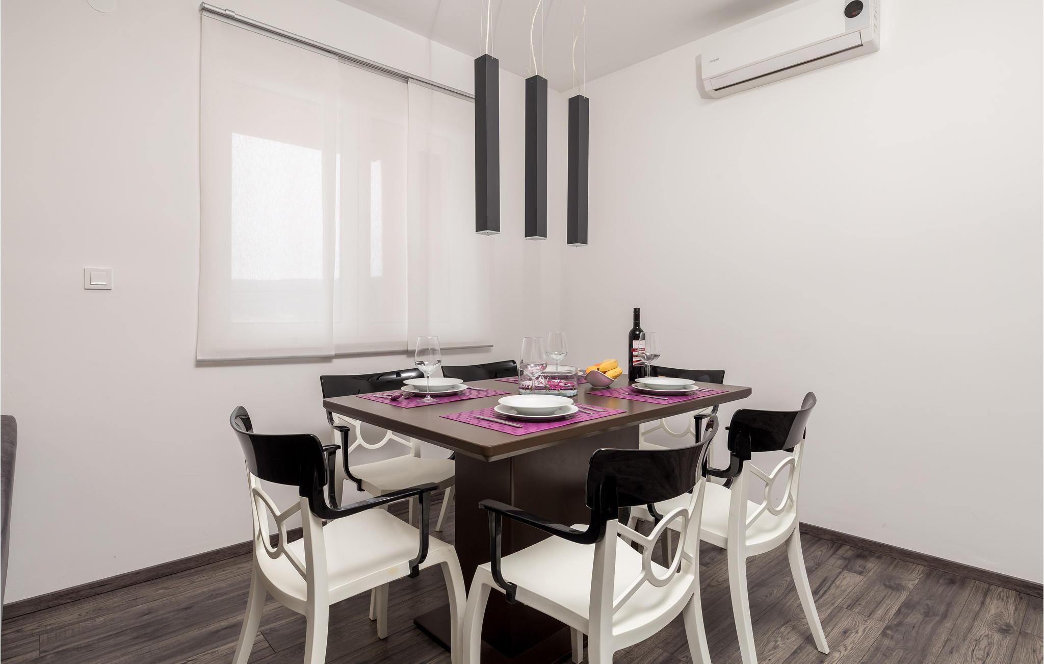 Lejlighederne er rummelige, komfortable, veludstyrede og består af to etager. Der er en fælles overdækket terrasse, hvor der er en fælles grill til at tilberede jeres yndlingsretter og tage del i det kroatiske liv. For gæster, der ønsker at være aktive, er der et fælles aktivitetsrum placeret i stueetagen, i en separat del af huset. Her finder I cykel, løbebånd, bordtennis og billard. For dem, der ønsker at slappe af, er der et spaområde mod betaling, bestående af et spabad og en finsk sauna. Lejlighedens terrasser er orienteret mod havet og inviterer jer til at slappe af om dagen eller om aftenen, så I kan nyde jeres første kaffe om morgenen eller ved solnedgang.