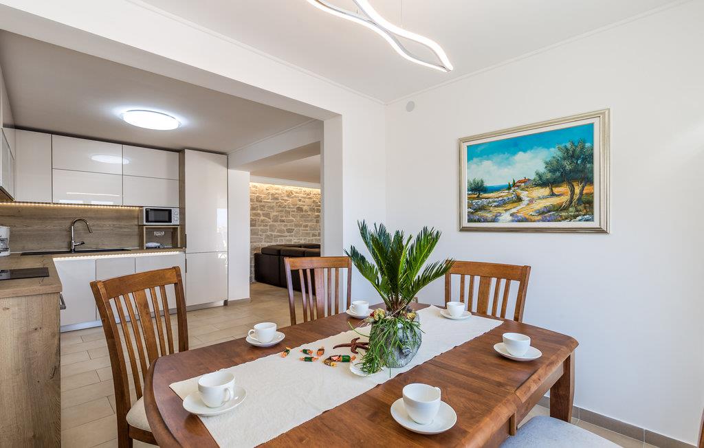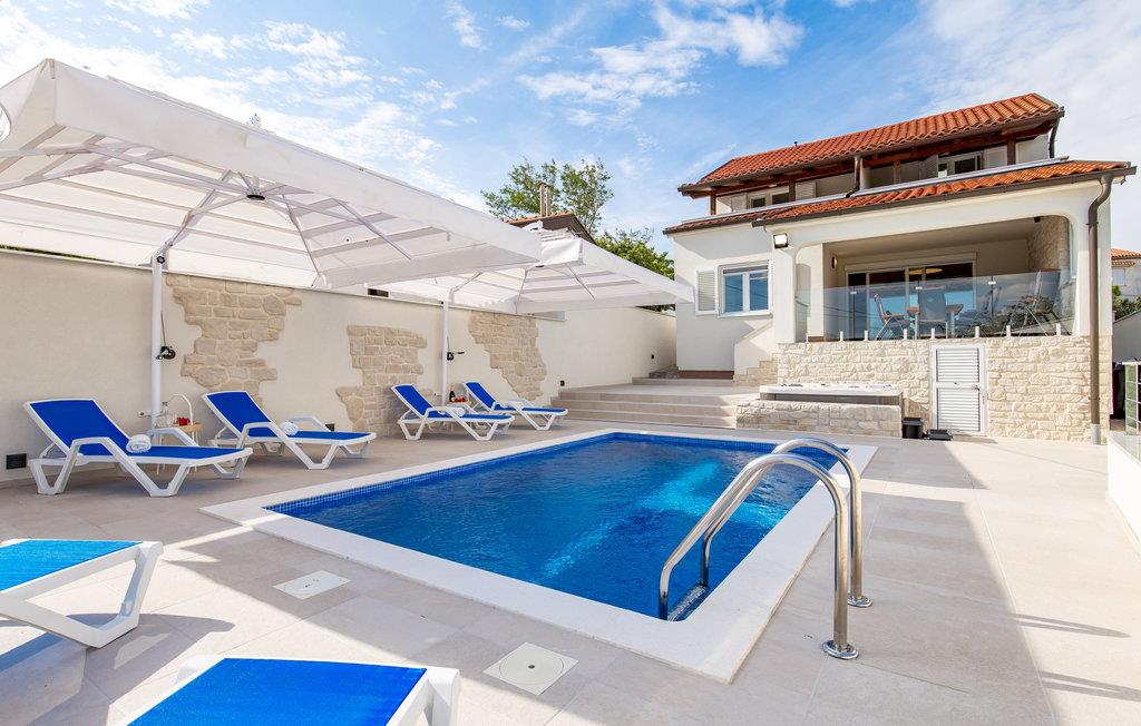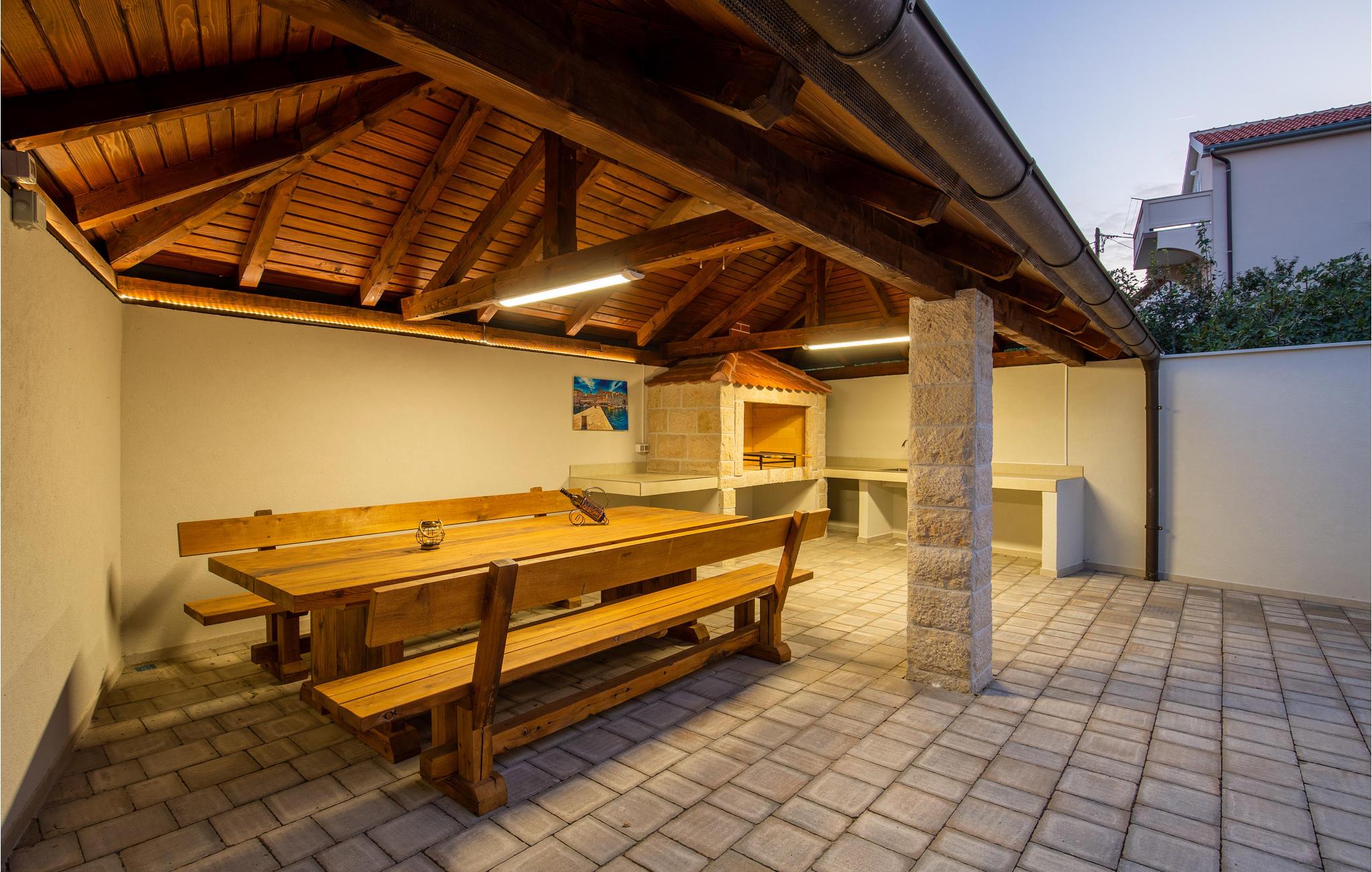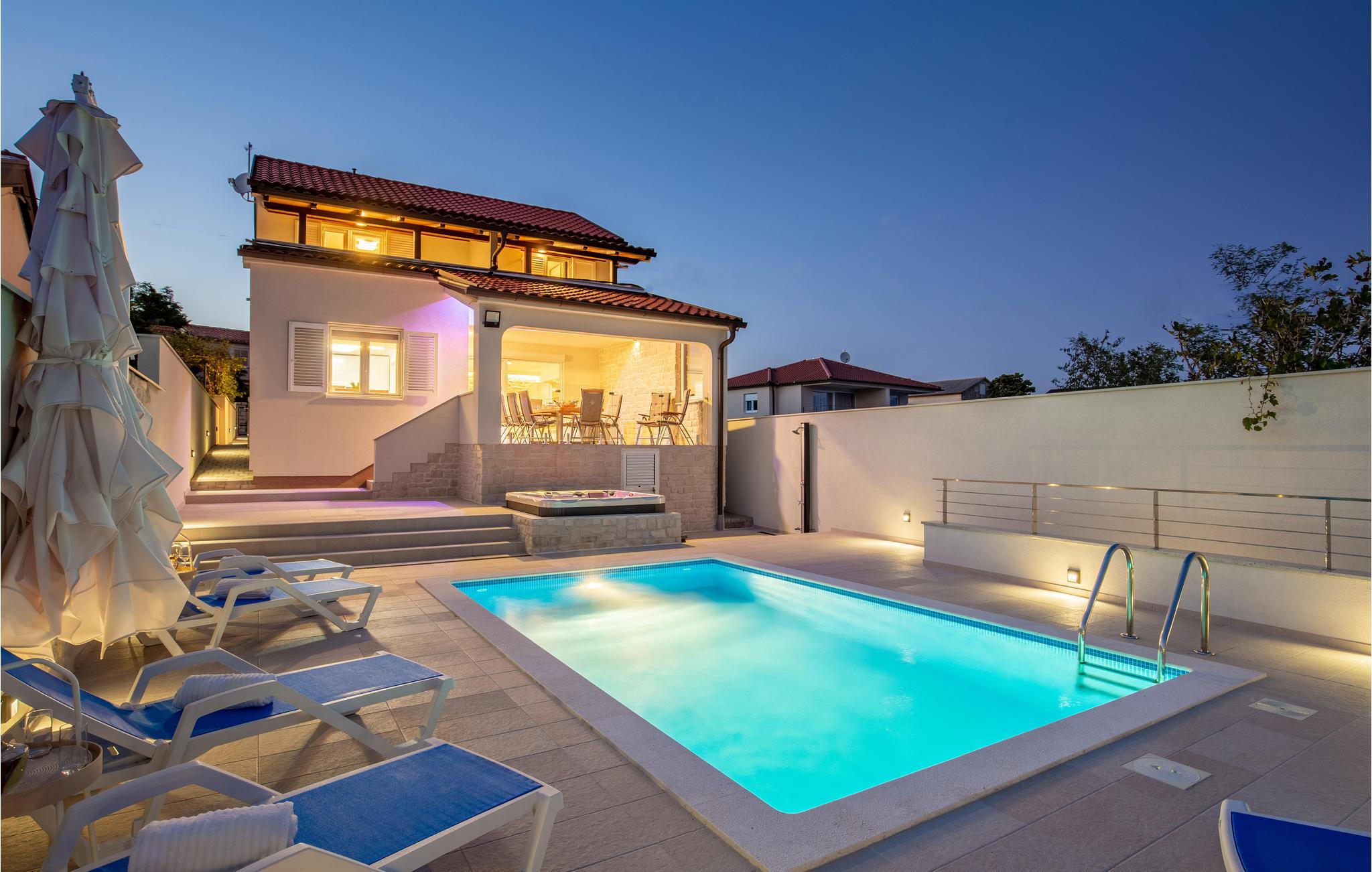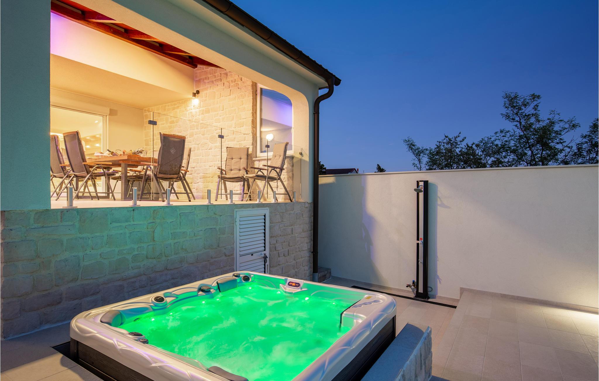 På den paradisiske ferieø Rab, i byen Lopar, ligger dette vidunderlige feriehus med pool og delvis udsigt til havet. Dette drømmeskønne hus, lader intet ønske åbent. Ud over den store terrasse, den forfriskende private udendørs pool og whirlpoolen på den indhegnede grund, er husets indre, der er smukt møbleret og gennemstrømmet af lys, også et skønt sted at opholde sig. Her er der en overdækket terrasse med grill, der ligger lidt fra huset hvor I kan tilberede lækker mad til hele familien og spise den udendørs. I bor helt fantastisk godt, i gåafstand af de fantastiske sandstrande. I løbet af ferien kan I gå på jagt efter øens skønne hemmelighedsfulde bugter og finde den der passer jer bedst. Der er gode færgeforbindelser fra fastlandet og om sommeren kan I se frem til mange former for underholdning. Øens største by hedder også Rab, hvor der er mange kulturhistoriske seværdigheder. Lopar er meget populær blandt børnefamilier pga sin sandstrand ud til lavt vand, den kaldes også Paradisstranden og indbyder til skønne badedage under den varme sol. Maleriske bugter, klart vand, historiske byer og kulturelle seværdigheder er alt sammen noget, I kan glæde jer til når I holder ferie på øen Rab.