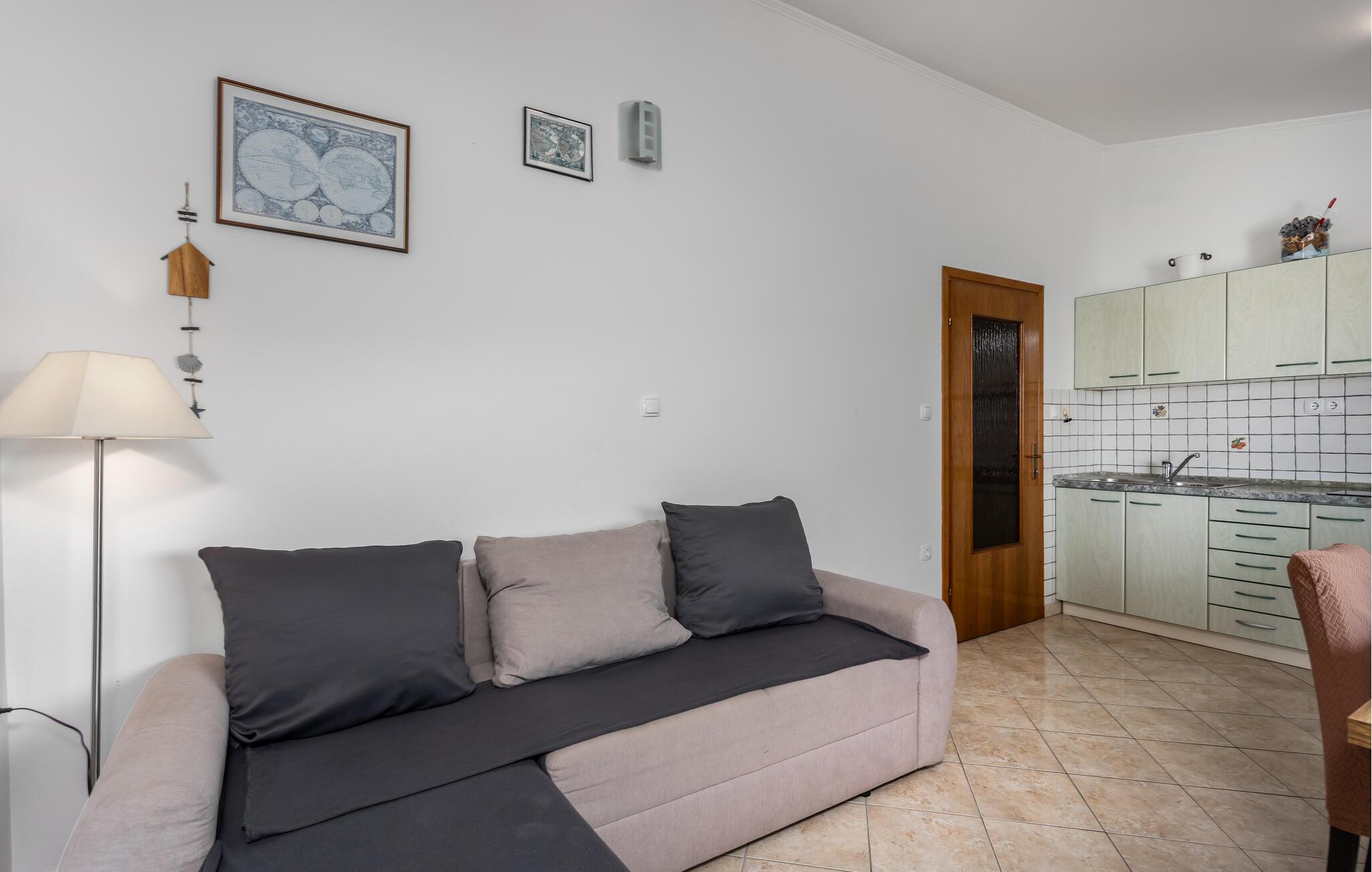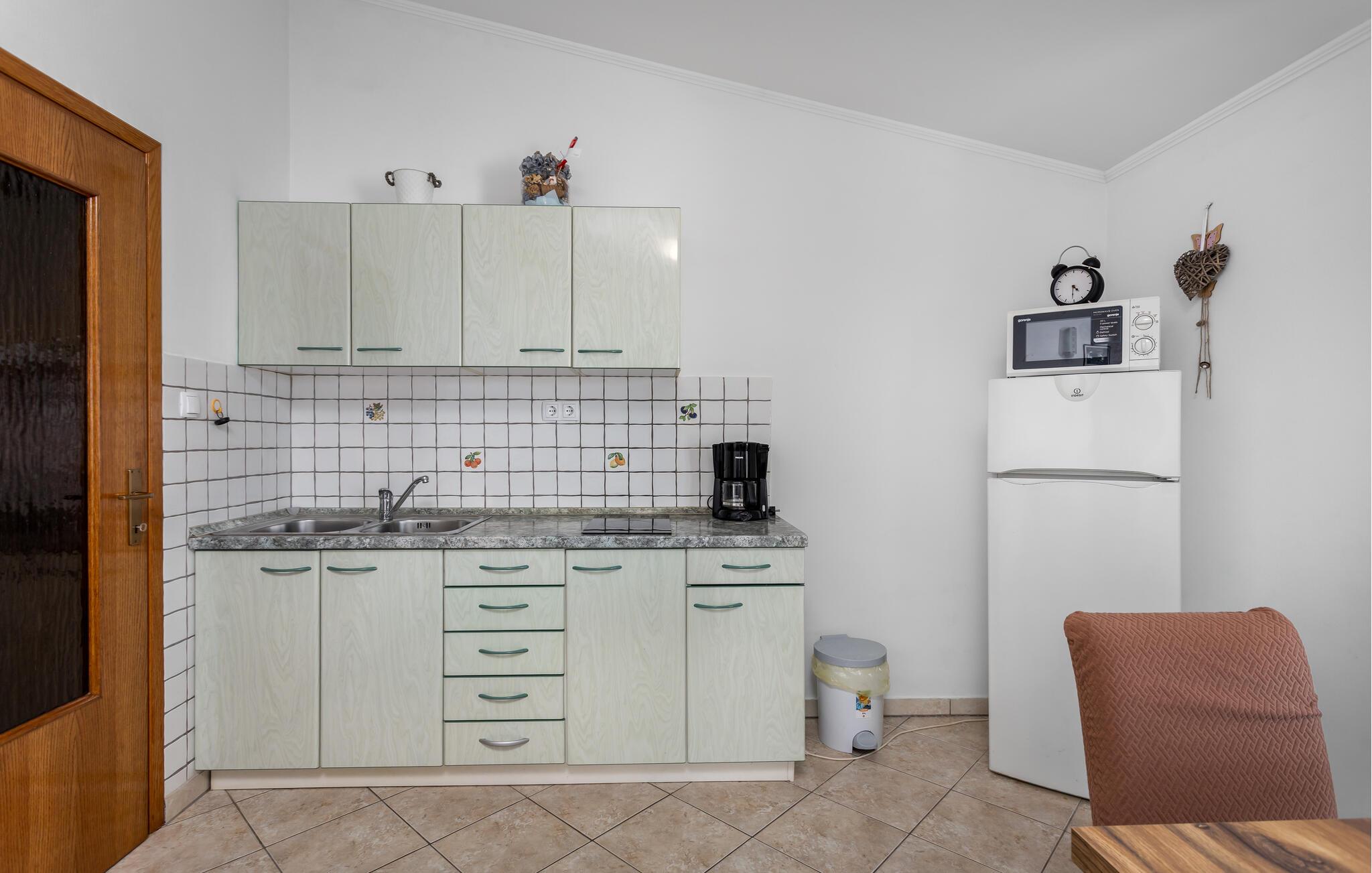 Denne velholdte ferielejlighed lægger op til en afslappende pause ved Adriaterhavskysten lige ved stranden. Tilbered dagens måltider i det åbne køkken og nyd dem i den stilfuldt møblerede opholdsstue. Lad den friske havbrise strømme gennem rummene og giv jer godt tilpas i den hyggelige sofa om aftenen.