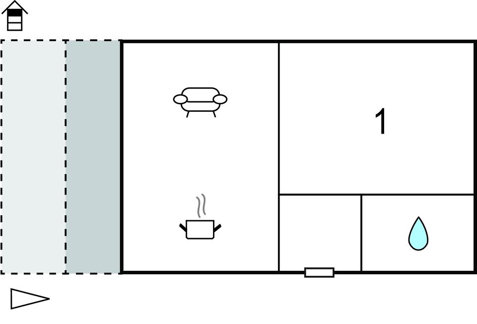 Opholdsstue/køkken 20m2 - 1 Soveplads. (Sofa, madras eller lignende).
