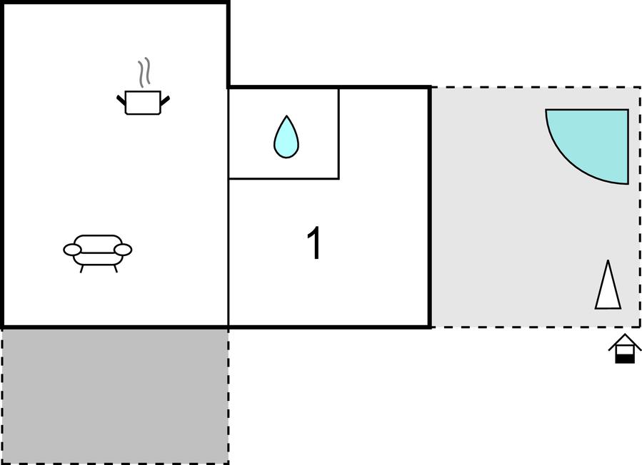 Opholdsstue/køkken 29m2 - 1 Soveplads. (Sofa, madras eller lignende).