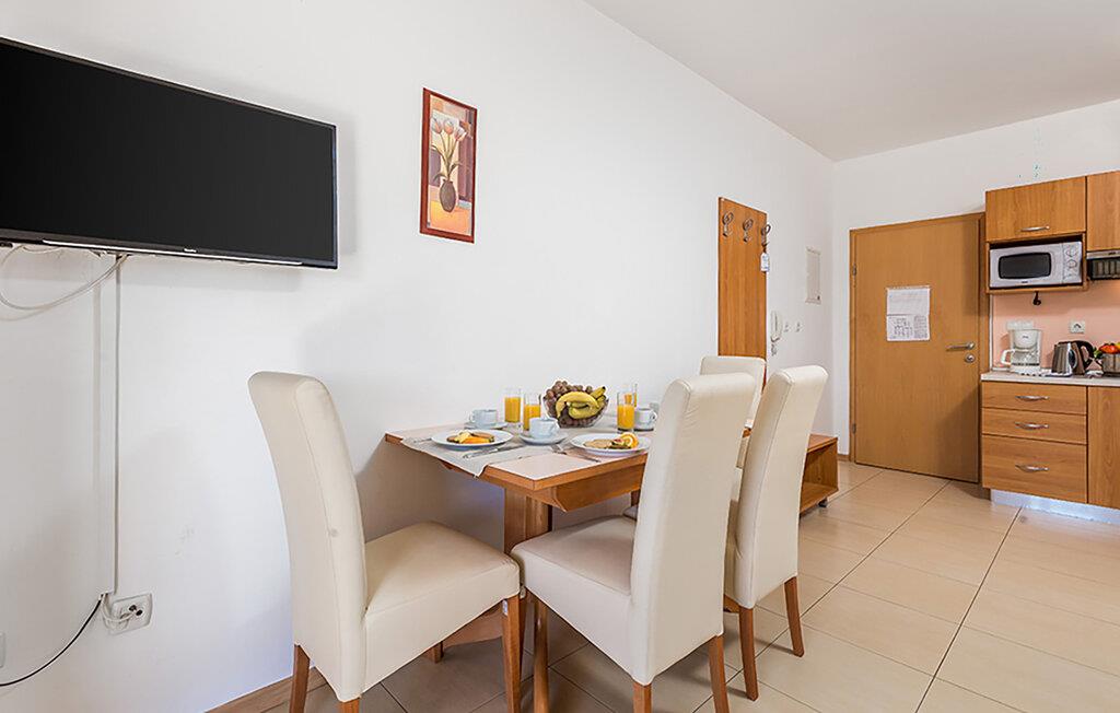 Oplev afslappende dage i denne komfortable ferielejlighed med adgang til poolen. Tilbring en afslappende ferie i denne lyse lejlighed, der charmerer med sine smukke træelementer og indbydende atmosfære. Den venter sine gæster tæt på havet. I den indbydende opholdsstue indbyder sofaen til afslapning; hyg jer sammen efter en dejlig dag på stranden. Gå fra stuen ud på terrassen, nyd en afslappet morgenmad og slap af i solen, kun afbrudt af forfriskende dukkerter i den fælles pool. Om aftenen kan I samle familien til en lækker grillfest. Gå en tur langs Palit-promenaden og nyd udsigten over Rabs gamle bydel. Oplev de små bugter og svøm i Adriaterhavets klare vand. Besøg Rabs gamle bydel med dens fire karakteristiske kirketårne. Gå en tur gennem de smalle gader, beundr den venetianske arkitektur, og stop ved en af de mange caféer eller restauranter. Udforsk Komrcar Park, der ligger lige over den gamle bydel. Gå en tur gennem fyrreskove og nyd skyggen og havudsigten.