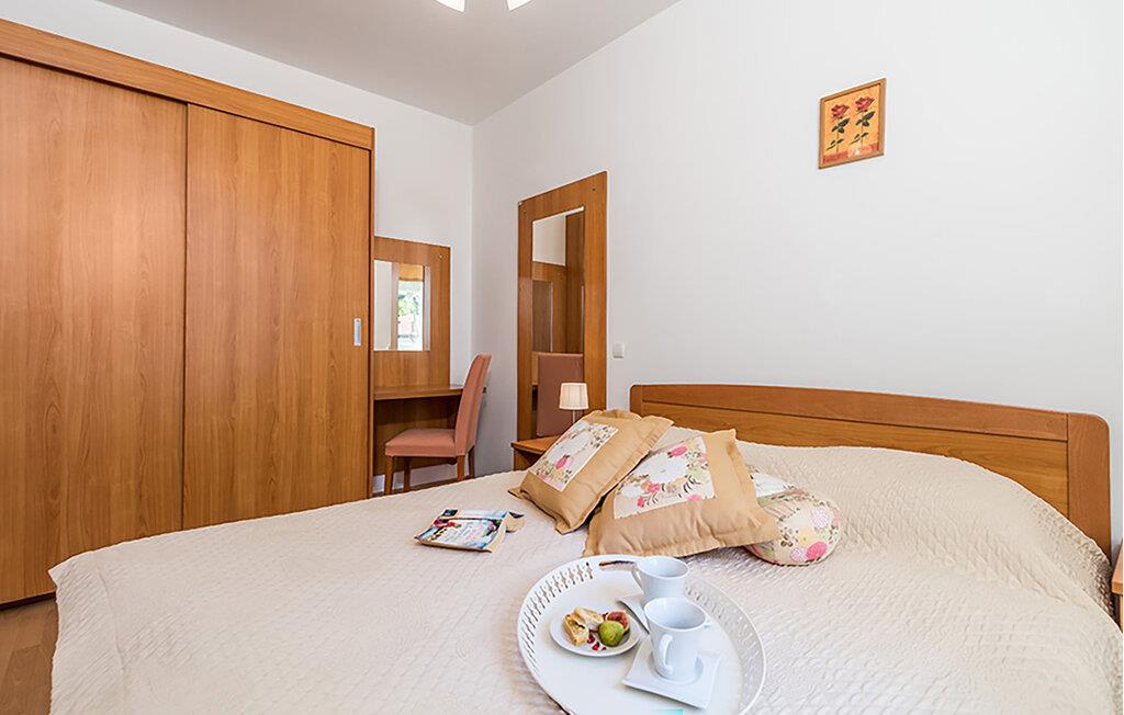Oplev afslappende dage i denne komfortable ferielejlighed med adgang til poolen. Tilbring en afslappende ferie i denne lyse lejlighed, der charmerer med sine smukke træelementer og indbydende atmosfære. Den venter sine gæster tæt på havet. I den indbydende opholdsstue indbyder sofaen til afslapning; hyg jer sammen efter en dejlig dag på stranden. Gå fra stuen ud på terrassen, nyd en afslappet morgenmad og slap af i solen, kun afbrudt af forfriskende dukkerter i den fælles pool. Om aftenen kan I samle familien til en lækker grillfest. Gå en tur langs Palit-promenaden og nyd udsigten over Rabs gamle bydel. Oplev de små bugter og svøm i Adriaterhavets klare vand. Besøg Rabs gamle bydel med dens fire karakteristiske kirketårne. Gå en tur gennem de smalle gader, beundr den venetianske arkitektur, og stop ved en af de mange caféer eller restauranter. Udforsk Komrcar Park, der ligger lige over den gamle bydel. Gå en tur gennem fyrreskove og nyd skyggen og havudsigten.