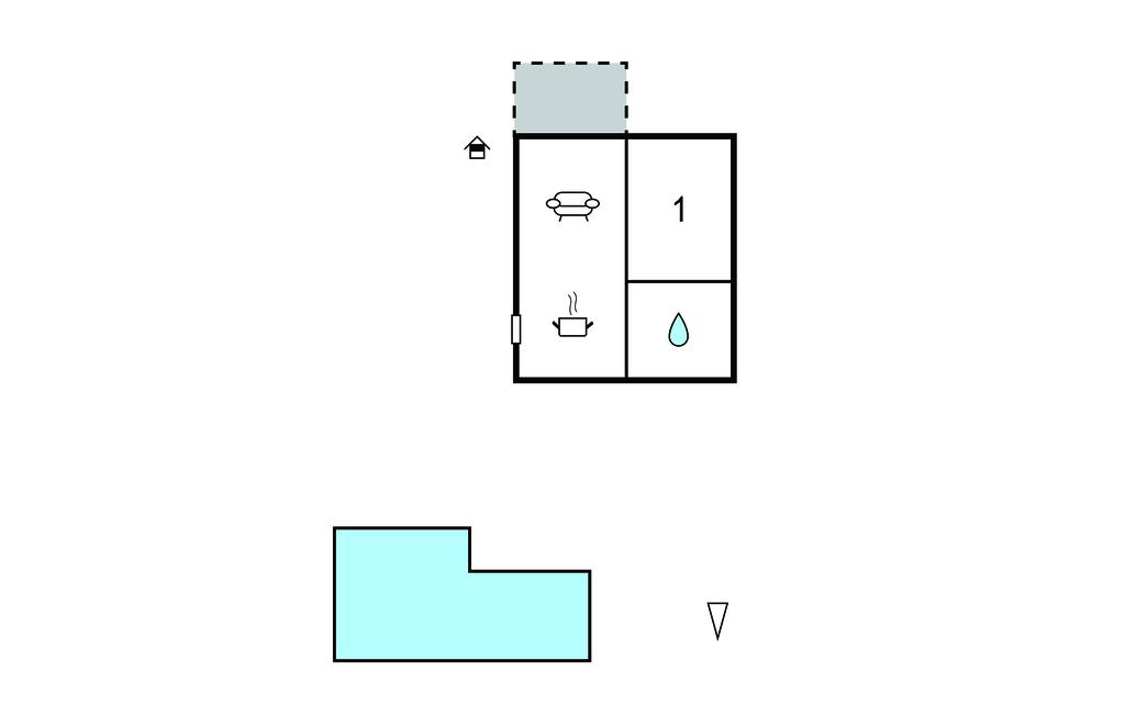 Opholdsstue/køkken 20m2 - 2 Sovepladser. (Sofa, madras eller lignende).