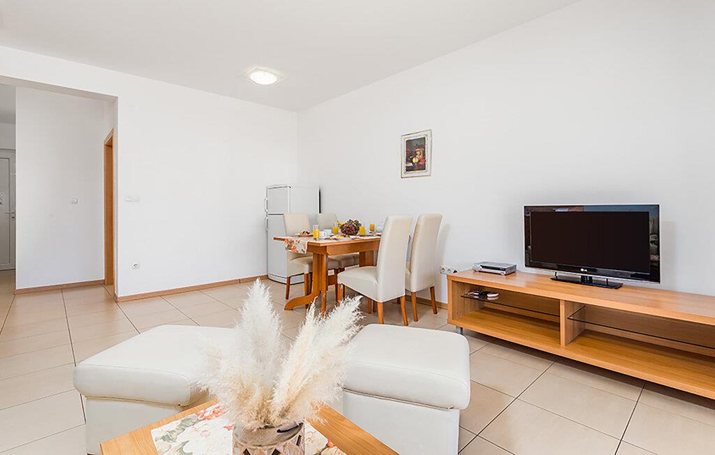 Nyd en solrig ferie i denne komfortable ferielejlighed med adgang til poolen. Væk fra sommerens folkemængder, men alligevel tæt på smukke strande, venter denne lyse og indbydende lejlighed i stueetagen på jer. Tilbered middelhavsretter sammen, planlæg jeres udflugter til afslappede måltider, og efter en lang dag kan I hygge jer sammen i sofaen med en god bog eller tilbringe en aften med sjove spil. Jeres dejlige overdækkede terrasse er det perfekte sted til morgenmad. Bagefter kan I forfriske jer i den smukke fælles pool, lade op på behagelige liggestole, få nye venner ved grillen og afslutte dagen med et glas vin under åben himmel. Gå en tur langs promenaden ved bugten fra Soline til Rab og vandr gennem den charmerende gamle bydel. Snorkel i det krystalklare vand ved uberørte strande, prøv regionale specialiteter på en af de mange restauranter og fordyb jer i det pulserende natteliv. Udforsk kystlinjen med båd og nyd en drink på en hyggelig strandbar, mens solen går ned.