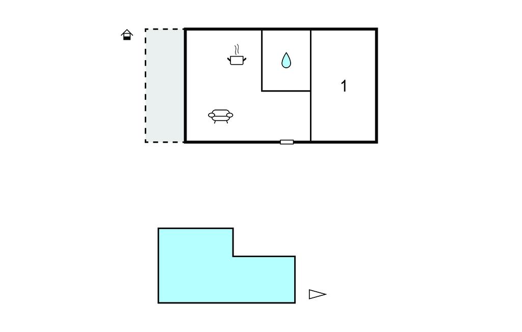 Opholdsstue/køkken 20m2 - 2 Sovepladser. (Sofa, madras eller lignende).