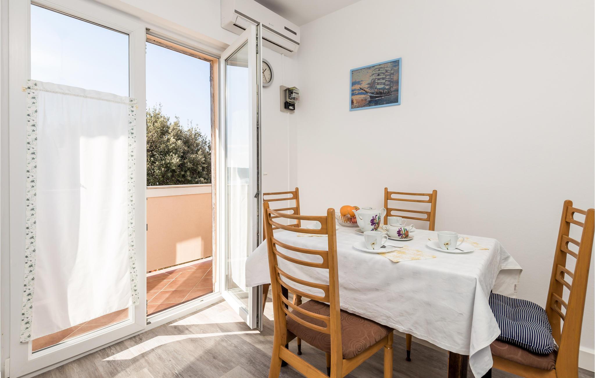 Kun 200 m fra lejligheden finder I den smukke sandstrand og vandet, hvor I kan gå ture og svømme i havet. Hvis I ikke har lyst til at lave mad, er der restauranter i nærheden.