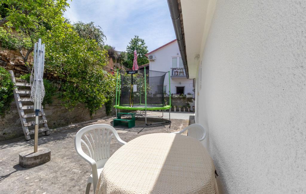 Lejligheden har en perfekt beliggenhed lige ud til havet. Med sin hyggelige indretning er den det optimale sted for en afslappende pause fra hverdagen med skønne dage på stranden og spændende udforskning af øen. Nyd morgenmaden sammen i spisekøkkenet eller på terrassen og forstærk jer til en begivenhedsrig dag i de naturlige omgivelser eller skønne timer ved havet. Når I vender tilbage, kan I se børnene hoppe på trampolinen, mens I laver en lækker middag på grillen.