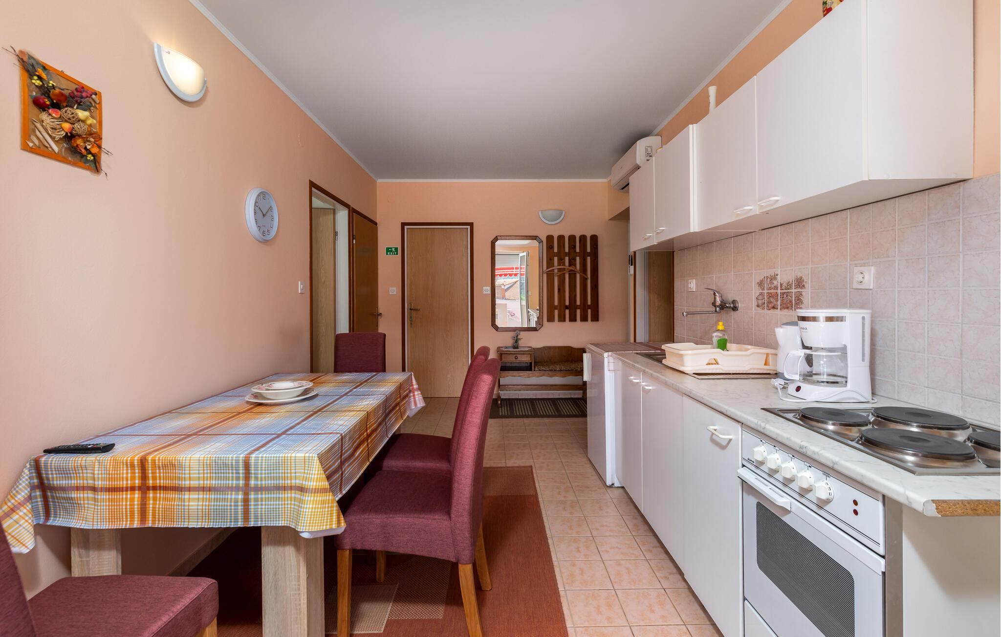 Pak badetøjet, da denne rummelige ferielejlighed kun ligger en kort gåtur fra havet. Fremstil lækre retter i det åbne køkken og nyd hyggelige måltider sammen. Planlæg jeres aktiviteter her, slap af med et brætspil eller se en god film.