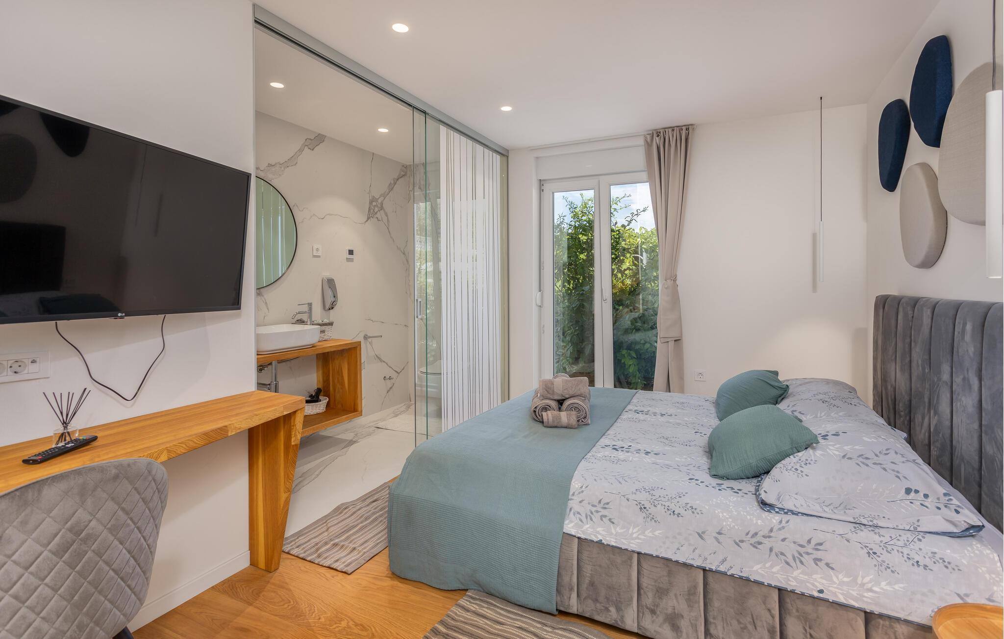 Velkommen til den lille landsby Ruda, der ligger virkelig flot midt i de grønne, bølgende landskaber i Dalmatien. Her finder I dette dejlige hus til en magisk ferie med familien. Huset er ganske rummeligt og indrettet med en kærlig hånd, og her får I en vidunderlig oase, hvor I kan komme ned i tempo og hvile benene efter en aktiv feriedag.