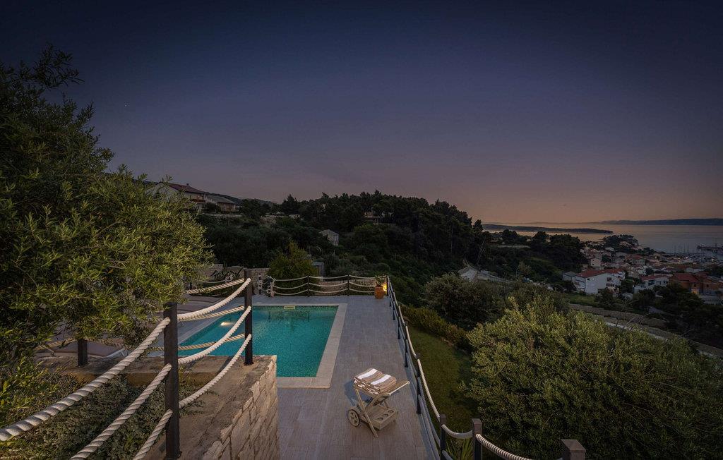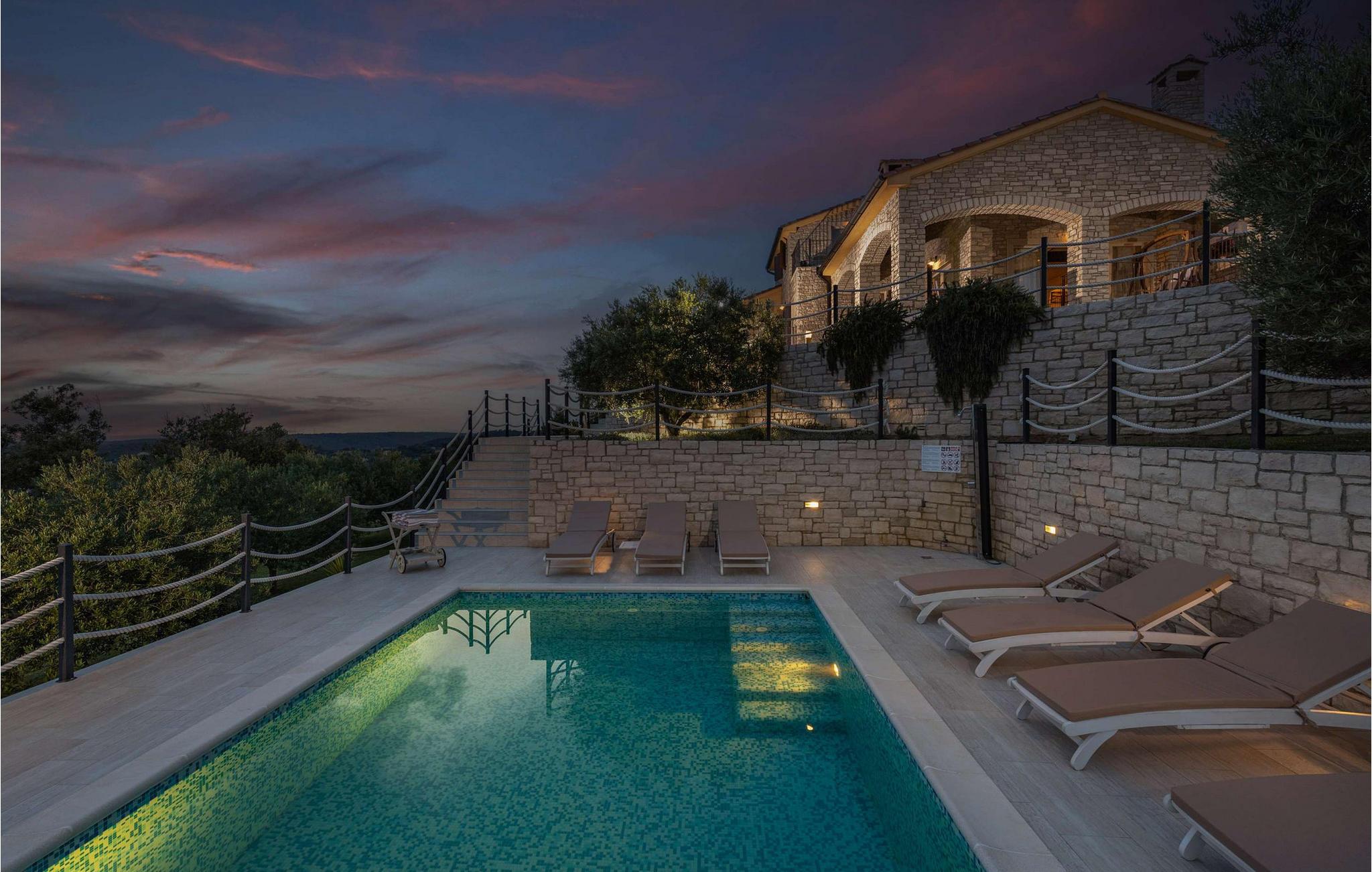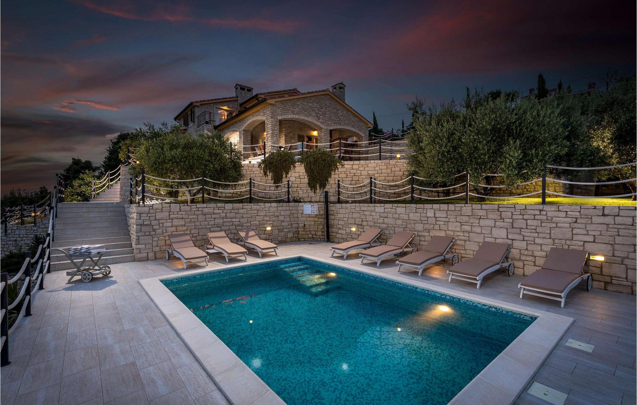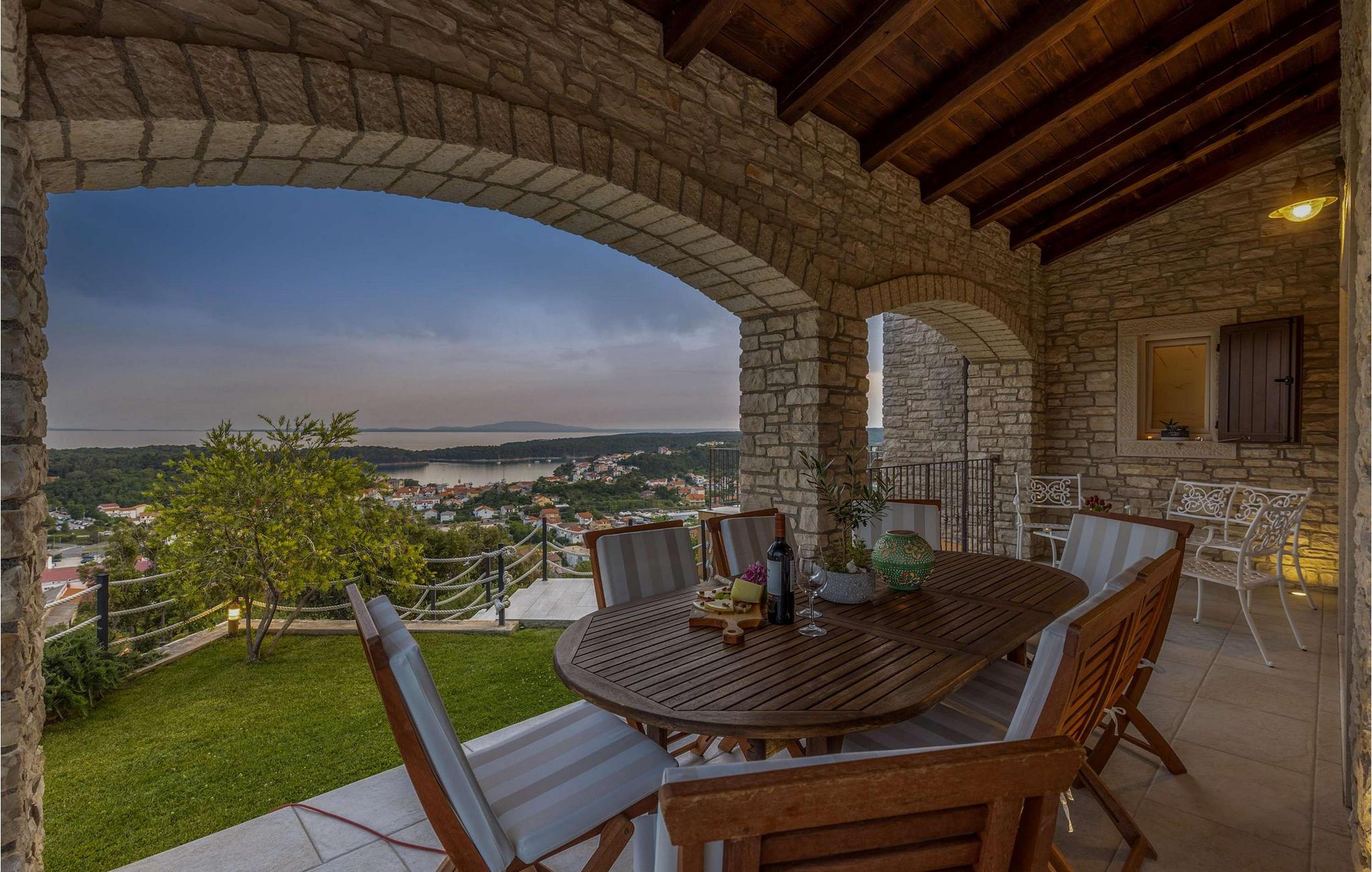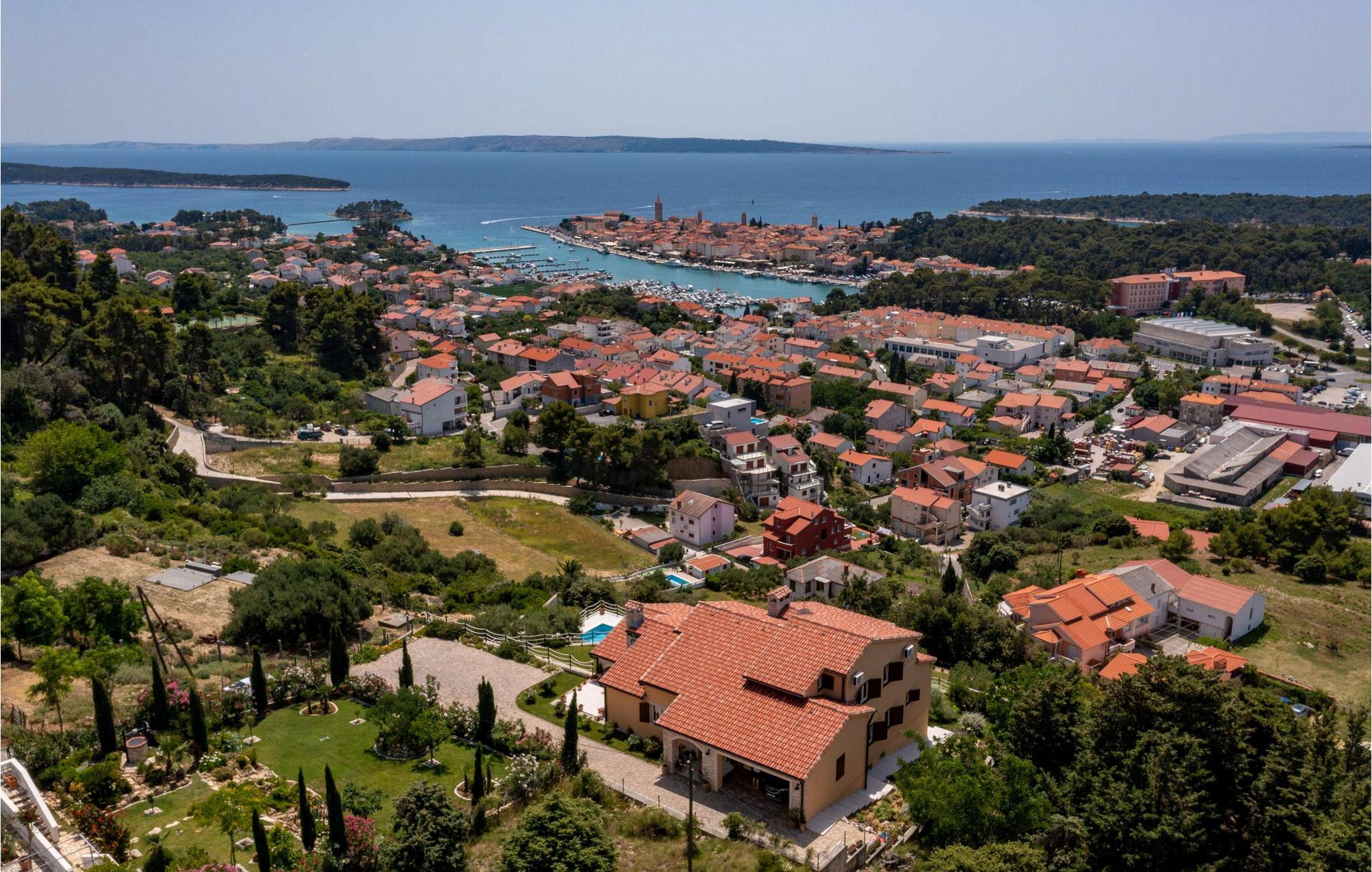 Denne luksusvilla ligger på øen Rab, kun 1 km til stranden og centrum. Villaen har 395 m2 boligareal på 1600 m2 have, 4 soveværelser, 4 badeværelser, 2 separate toiletter, grill, poolbord, dart, bordtennis, bordfodbold, sauna, fitness og garage til 2 biler. Ejendommen er udstyret med Wi-Fi internet. Stuen er på i alt ca 35 m² og byder på en hyggelig atmosfære. Der er sofa, LED SMART TV, fritstående brændeovn, aircondition og møbler af høj kvalitet. Køkkenet er udstyret med køleskab, opvaskemaskine, el-komfur, ovn, mikroovn og kaffemaskine (kaffefilter). I villaens have er der en 24 m² stor pool dækket med glasmosaikfliser og udstyret med et moderne vandbehandlingssystem uden klor. Det er et ideelt sted for en afslappende ferie med venner og familie. Interiøret er elegant møbleret og kombineret med moderne møbeltilbehør, hvilket skaber en meget attraktiv og elegant stil. Du kan også nyde en privat swimmingpool med en fantastisk havudsigt. Der ligger restauranter og butikker inden for 1 km. Forkæl dig selv med en uforglemmelig ferie, som du vil huske i lang tid. Omgivet af en smuk, rummelig have tilbyder denne villa dig garanteret privatliv og er indrettet efter de højeste standarder for hygiejne. Tilbuddet inkluderer også gratis daglig levering af dagligvarer.