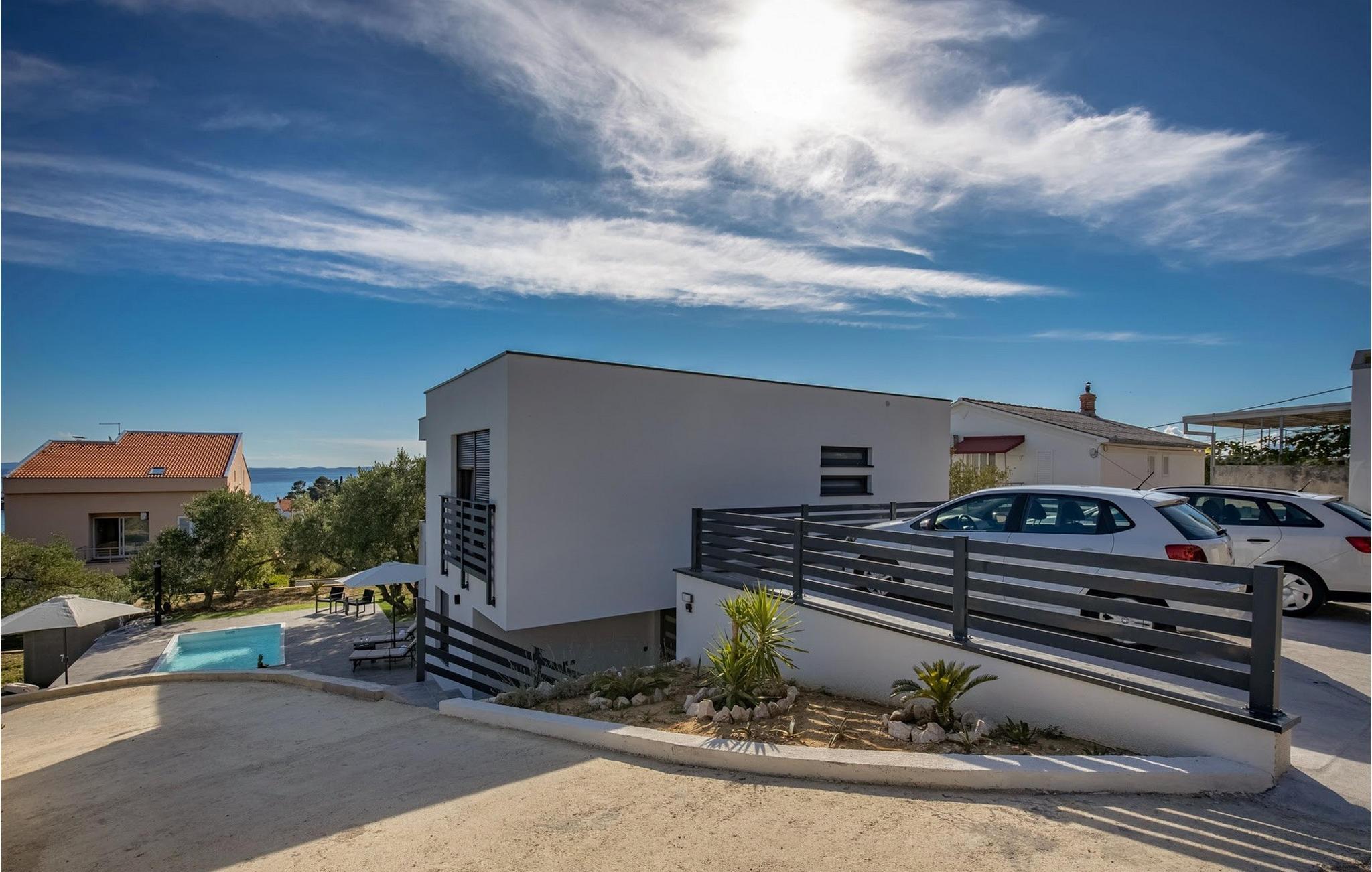 Villa Karla Rab ligger på den sydvestlige side af øen Rab i Banjol, som er kendt for sine bugter, der gemmer på magiske sandstrande. Dette luksuriøse moderne hus med havudsigt blev bygget i 2019 med materialer af høj kvalitet og er fuldt udstyret med moderne designmøbler. Villaen har fire skønne soveværelser med komfortable dobbeltsenge, tre rummelige badeværelser, separat toilet og en hyggelig stue. Det moderne køkken i stueetagen af villaen er fuldt udstyret med alle nødvendige apparater og en rummelig spisestue med et stort bord og plads til otte personer vil sikre komfort og fornøjelse med din familie og venner. Hele villaen er fuldt airconditioneret, udstyret med WiFi, kabel/satellit-tv og privat parkering er tilgængelig. Under dit ophold i denne moderne skønhed kan du nyde det indhegnede udendørsområde med en smuk swimmingpool og liggestole, der tilbyder forfriskning og afslapning på varme sommerdage. Der er en udendørs grill og en overdækket veranda med et spisebord omgivet af en have og naturlig vegetation perfekt til hedonisme på sommeraftener med et glas god lokal vin. Hvis du vil kaste dig ud i det krystalklare hav, er det 500 meter væk fra Villa Karla Rab, og du vælger selv den smukkeste strand og forkæler dig selv. Undlad ikke at fuldende dit ophold i denne smukke villa med et besøg i byen Rab, kun 1,5 km væk, en smuk by med en rig historie, der vil forbløffe elskere af middelhavsarkitektur, historie, kunst og naturlig skønhed. Kæledyr er tilladt på denne ejendom efter ejerens skøn eller mod et gebyr. Bemærk venligst, at denne ejendom ikke accepterer ungdomsgrupper eller polterabends. En ungdomsgruppe i denne ejendom består af personer under 30 år. Book ikke denne ejendom, hvis du er en ungdomsgruppe eller polterabend, da din reservation vil blive afvist efter reservationen, hvilket også kan være tilfældet ved ankomst til overnatningsstedet eller under dit ophold, og du vil ikke modtage en refusion.